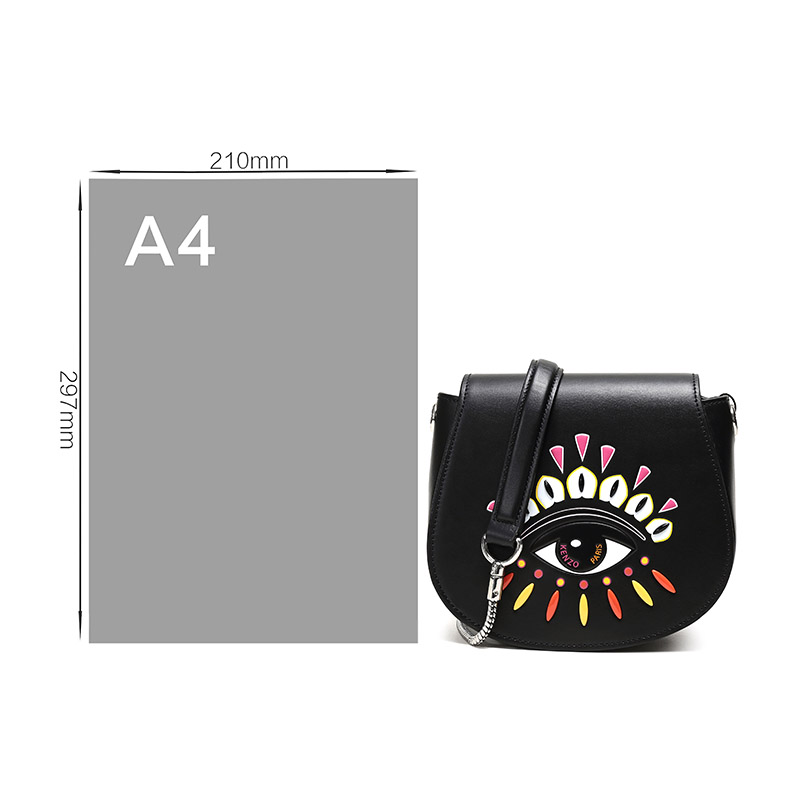 ![]() | 品牌:KENZO 高田贤三 产地:中国等国(批次不同,产地不同) 款式:女士 产品颜色:黑色眼睛图案 材质:牛皮 产品结构:吸扣翻盖开合,内置1个主袋,1个拉链贴袋,1个卡位 产品尺寸:宽约19cm,高约18cm,厚约9.5cm,可拆卸肩带长约117cm
