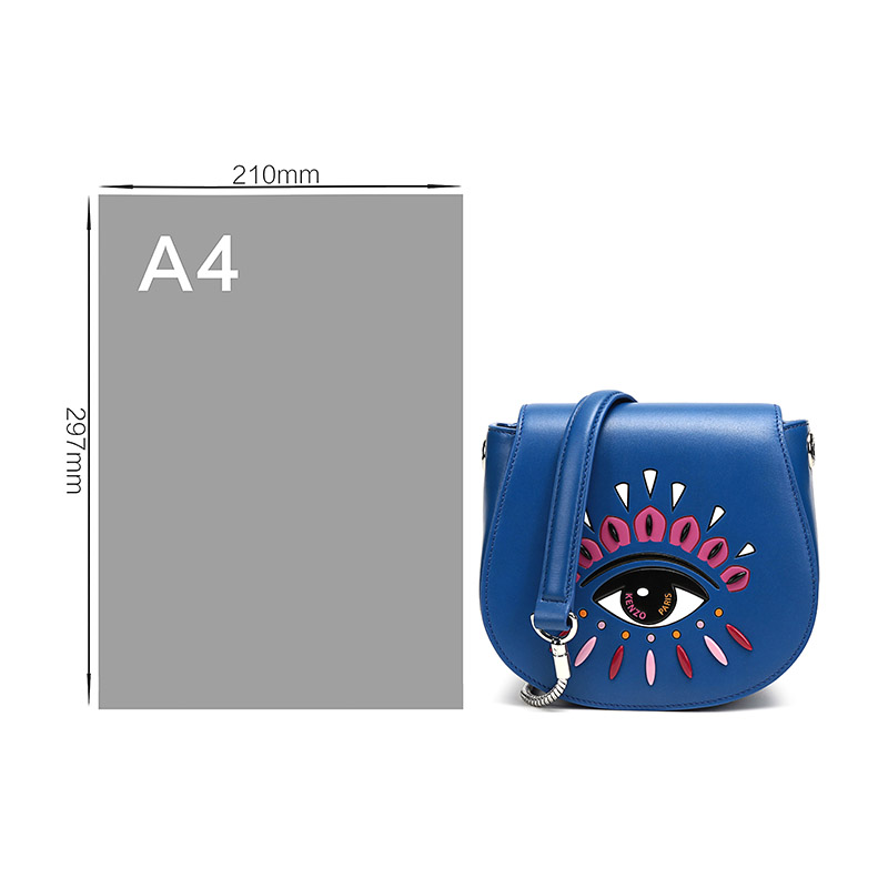 ![]() | 品牌:KENZO 高田贤三 产地:中国等国(批次不同,产地不同) 款式:女士 产品颜色:钴蓝色眼睛图案 材质:牛皮 产品结构:吸扣翻盖开合,内置1个主袋,1个拉链贴袋,1个卡位 产品尺寸:宽约19cm,高约18cm,厚约9.5cm,可拆卸肩带长约117cm