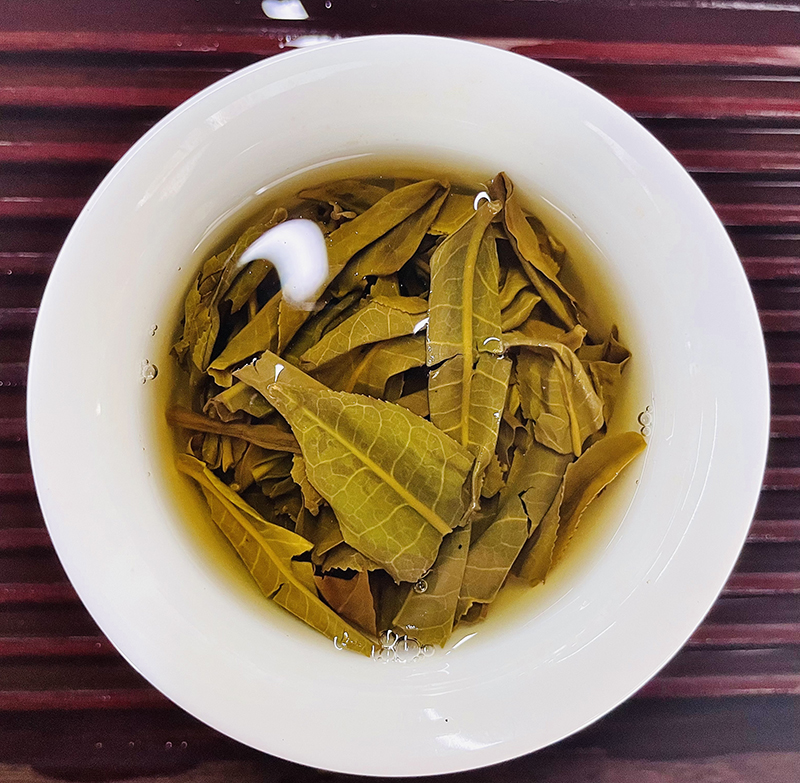 入口能隐约感到一股迷人的花香袭来,生津迅速,茶汤柔滑,柔中带刚,穿透力强,喉韵深,感觉口腔都被浓郁的果胶包裹,回甘与生津并存,茶气十足,整体滋味饱满香甜,落喉有韵。
