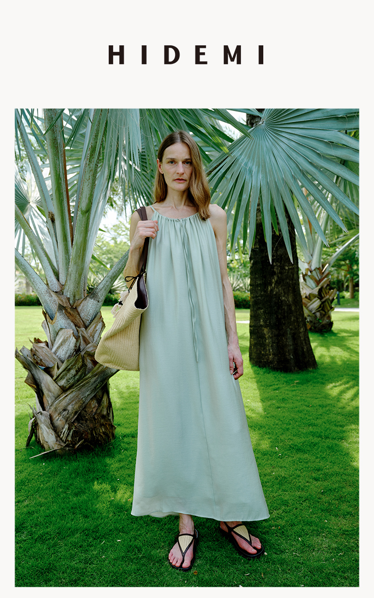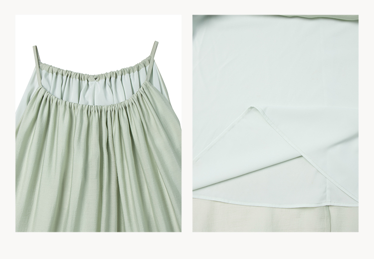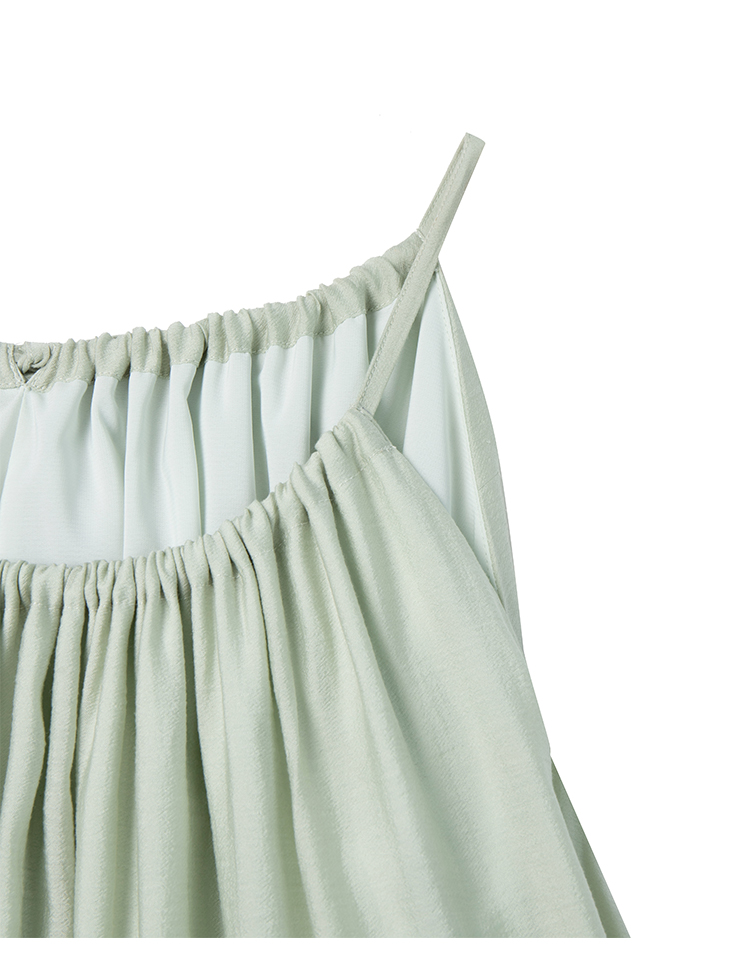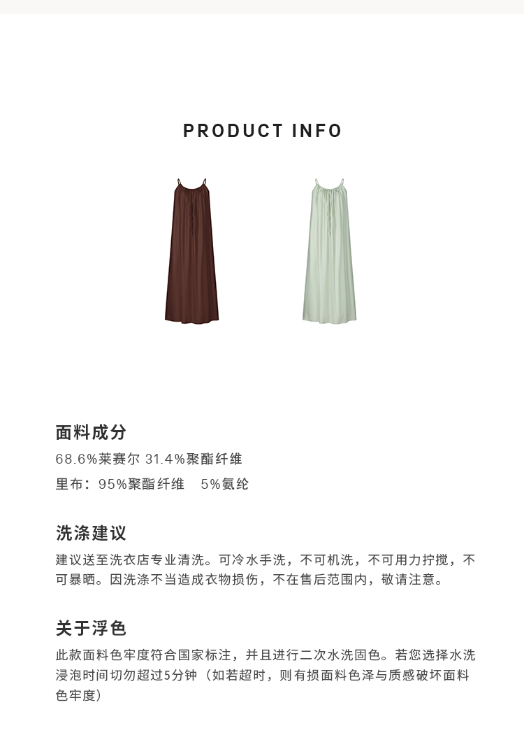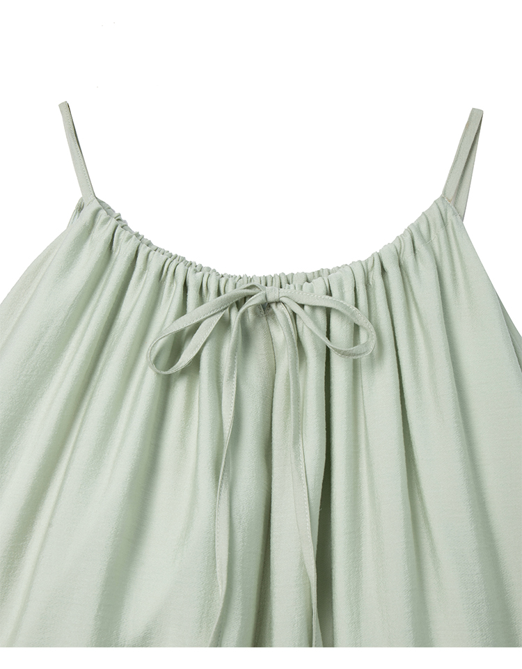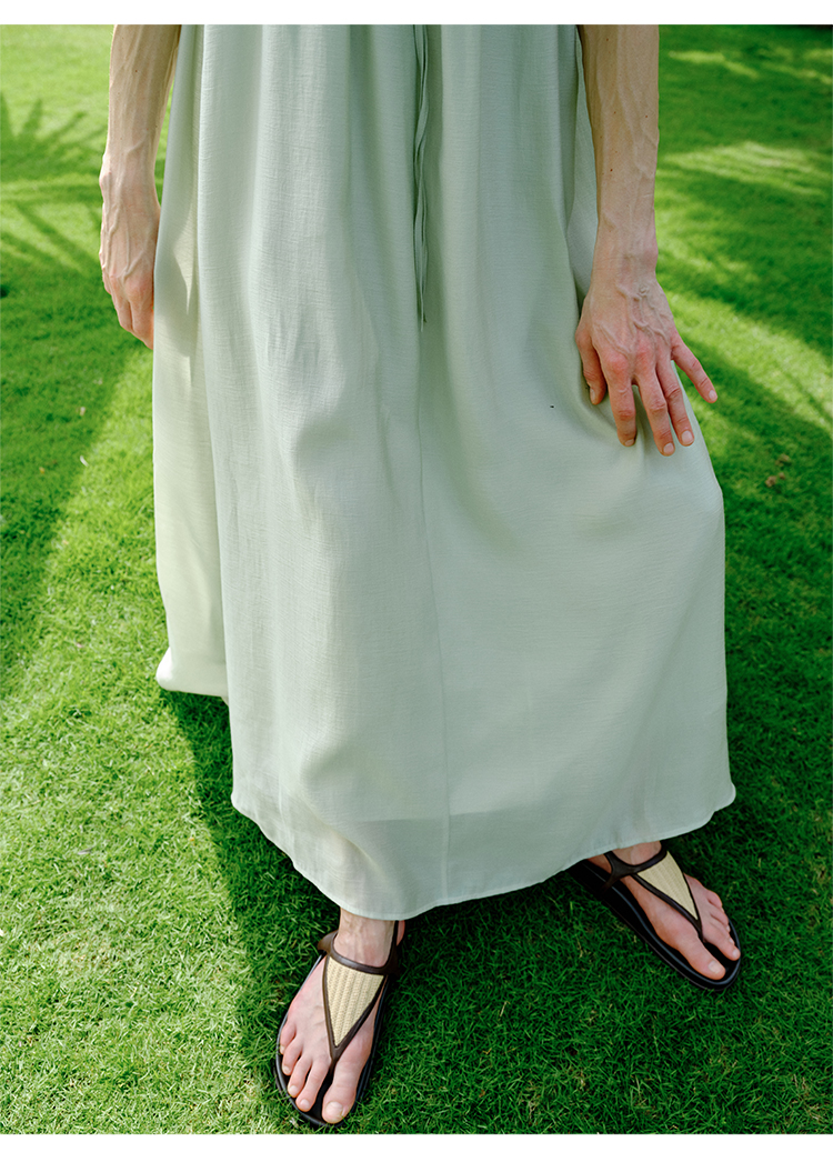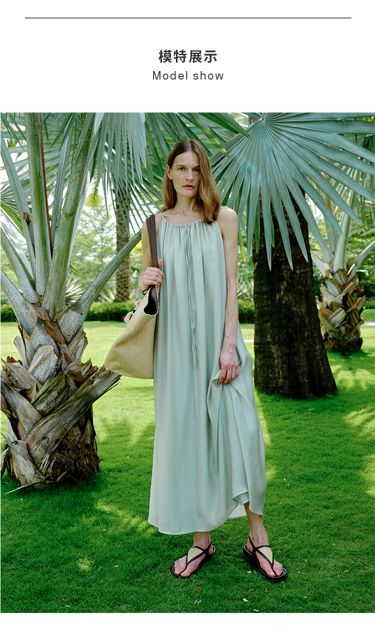 HIDEMI 度假系列抽绳设计感系带式褶皱大裙摆吊带连衣裙 薄荷曼波绿/深棕色