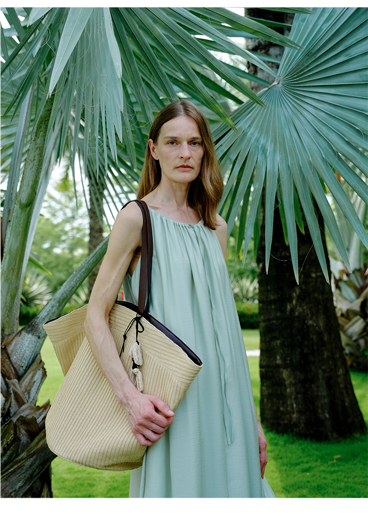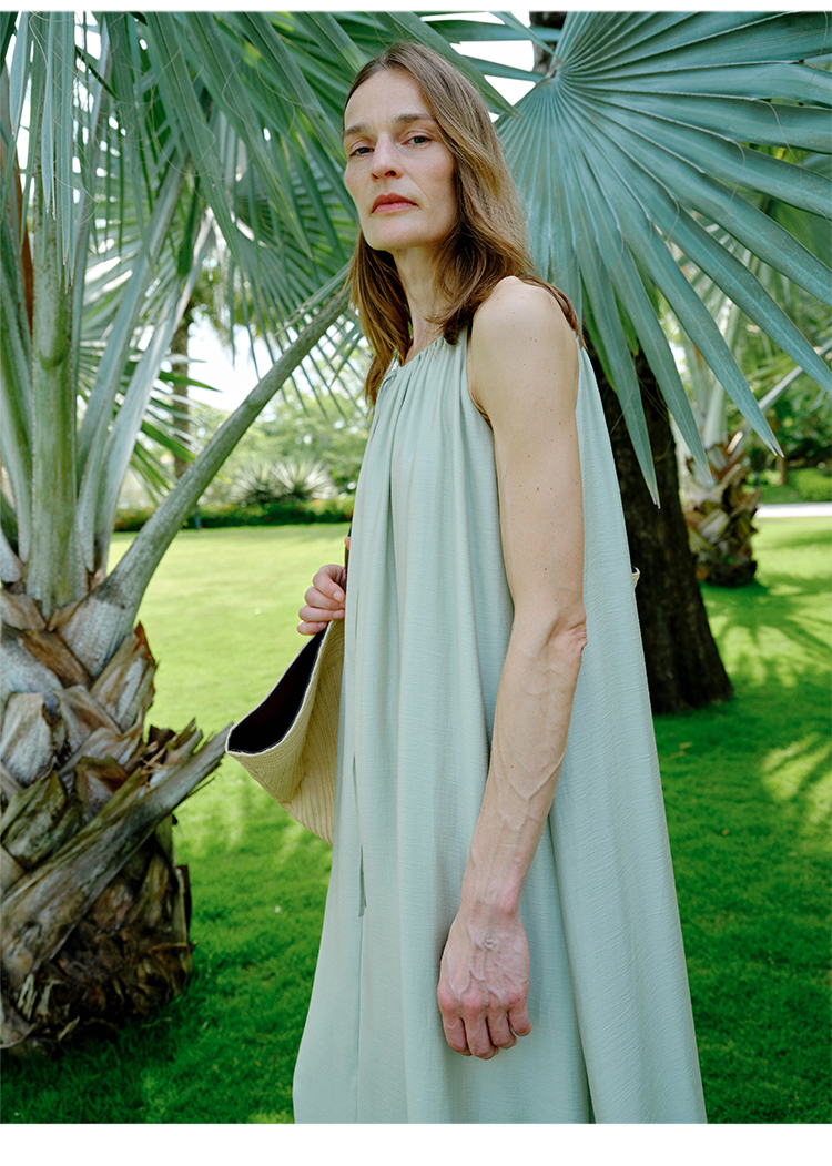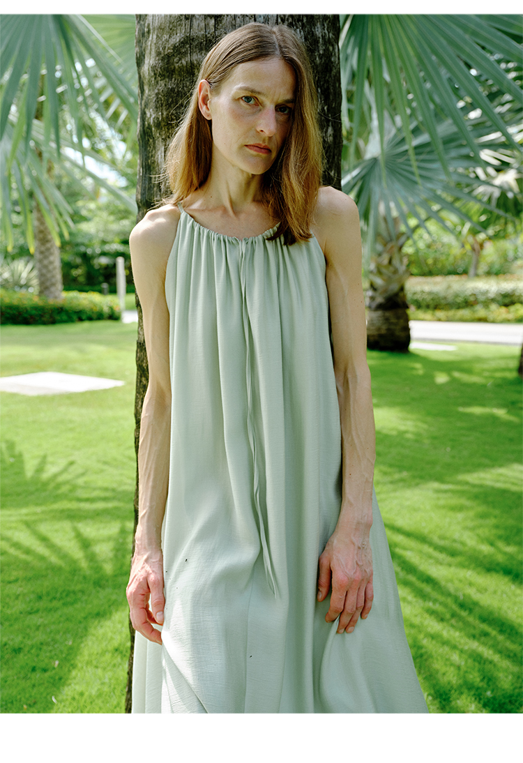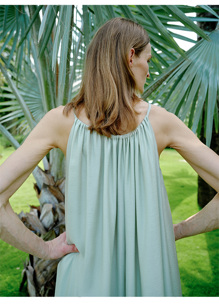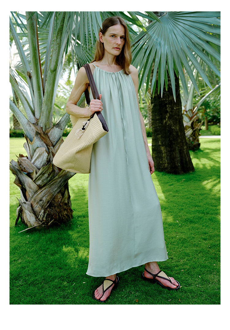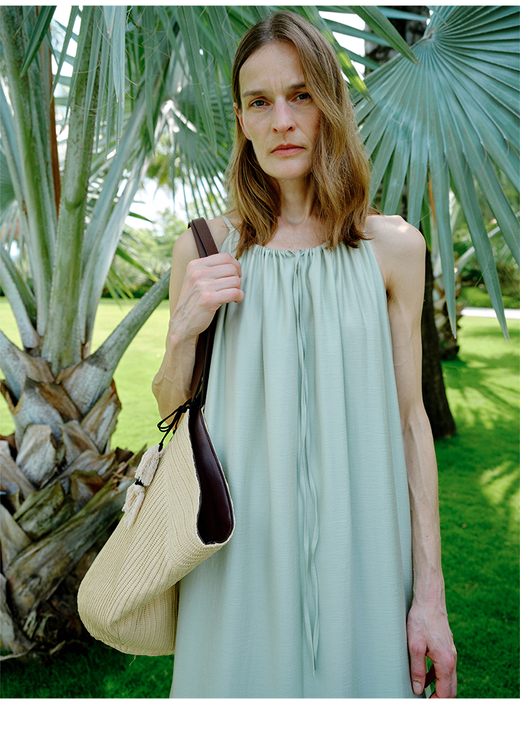 HIDEMI 度假系列抽绳设计感系带式褶皱大裙摆吊带连衣裙 薄荷曼波绿/深棕色