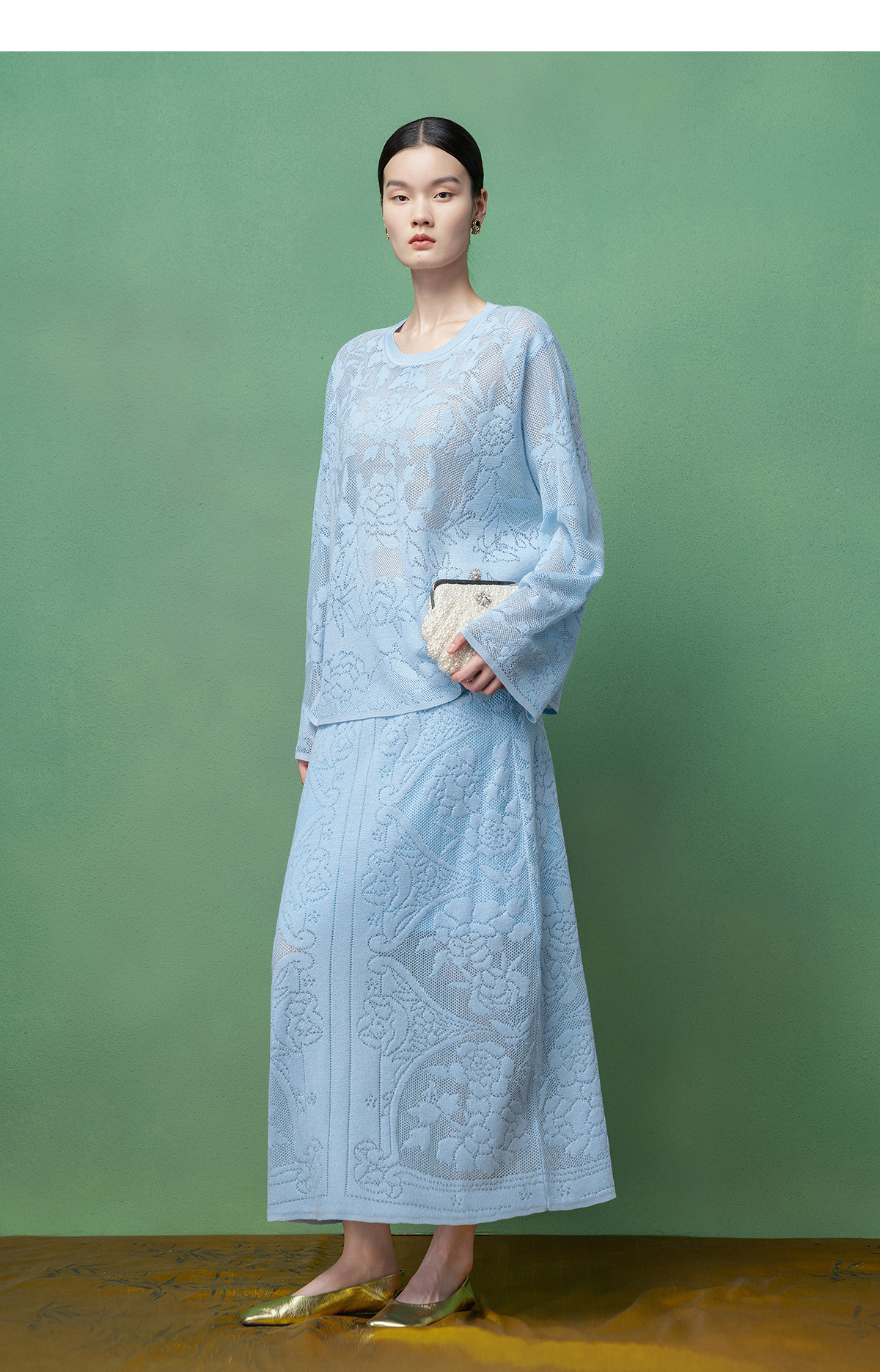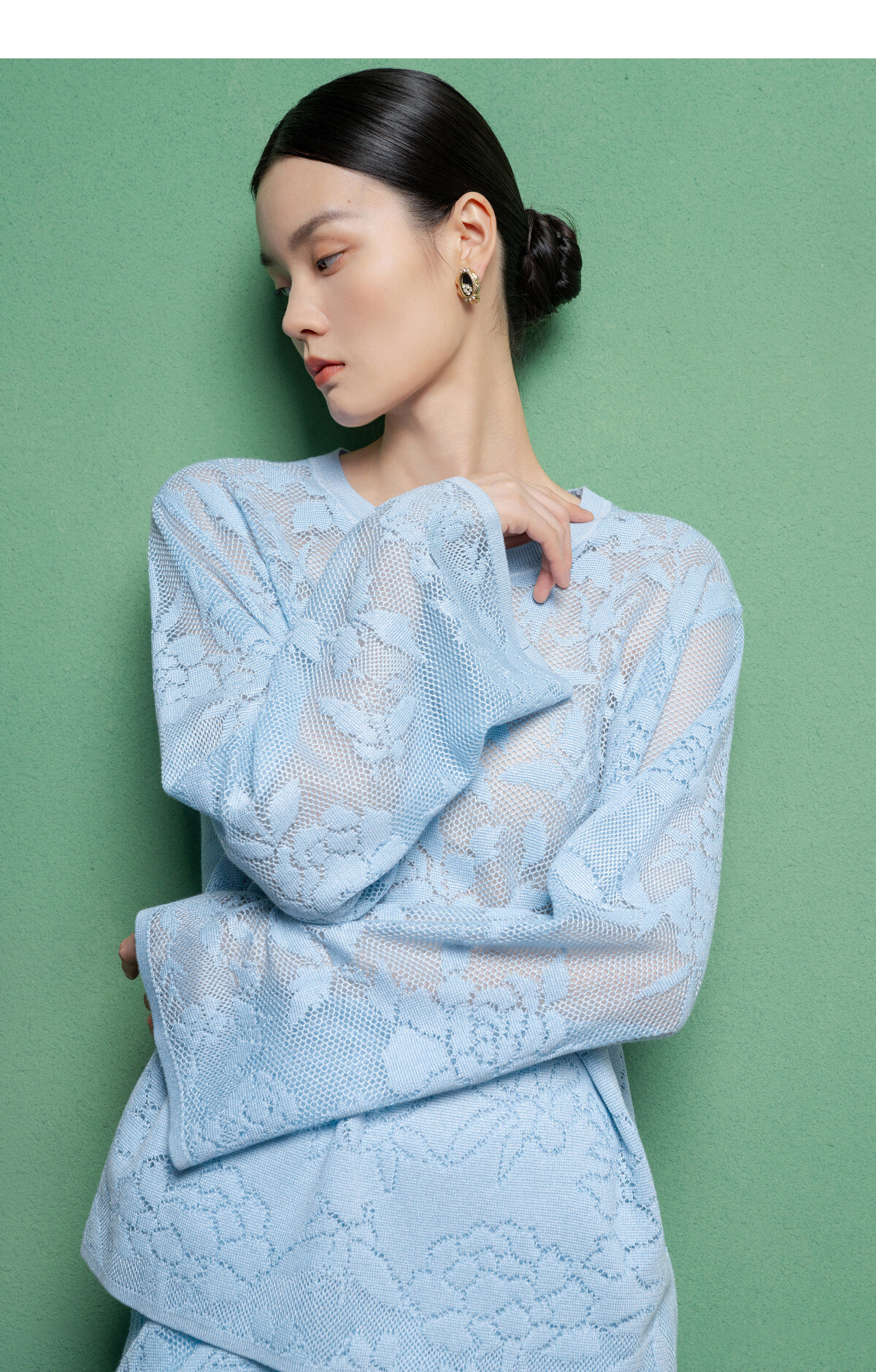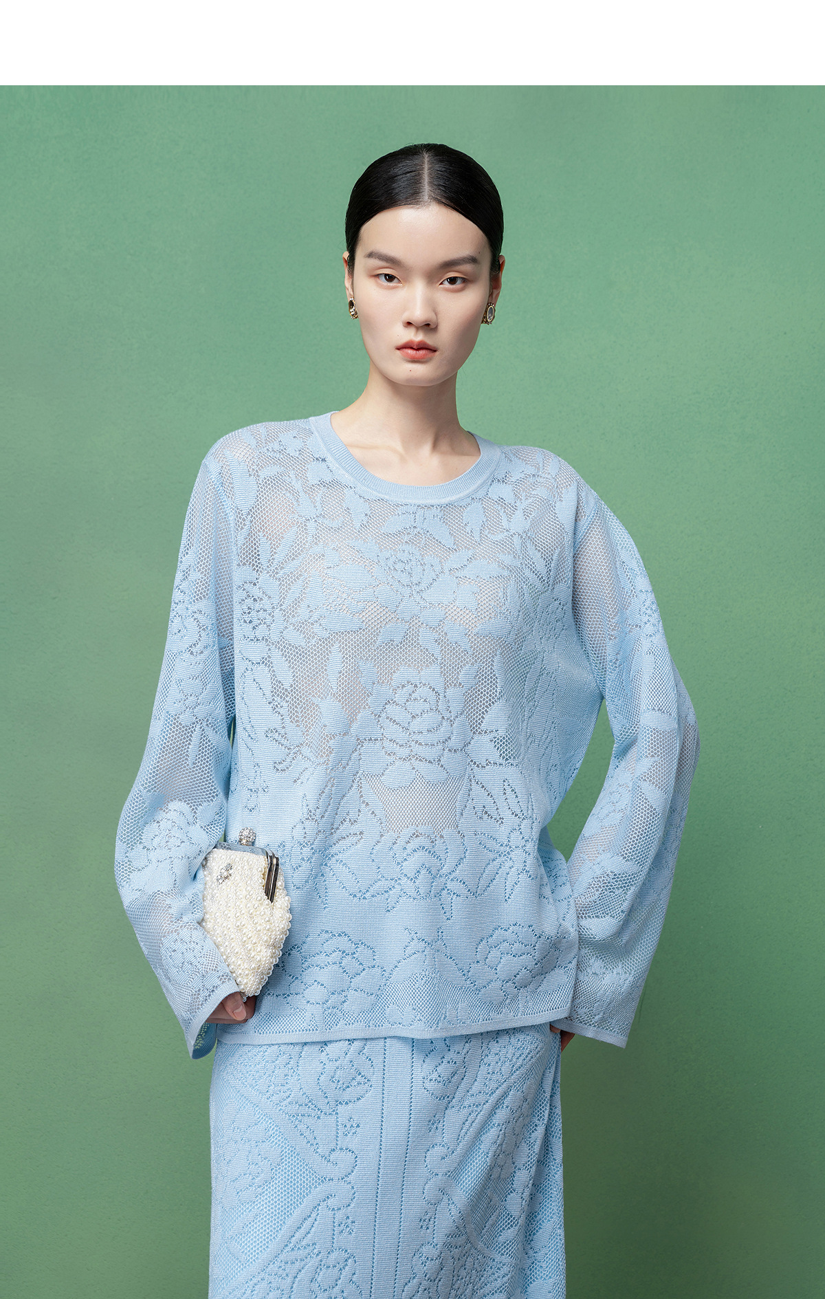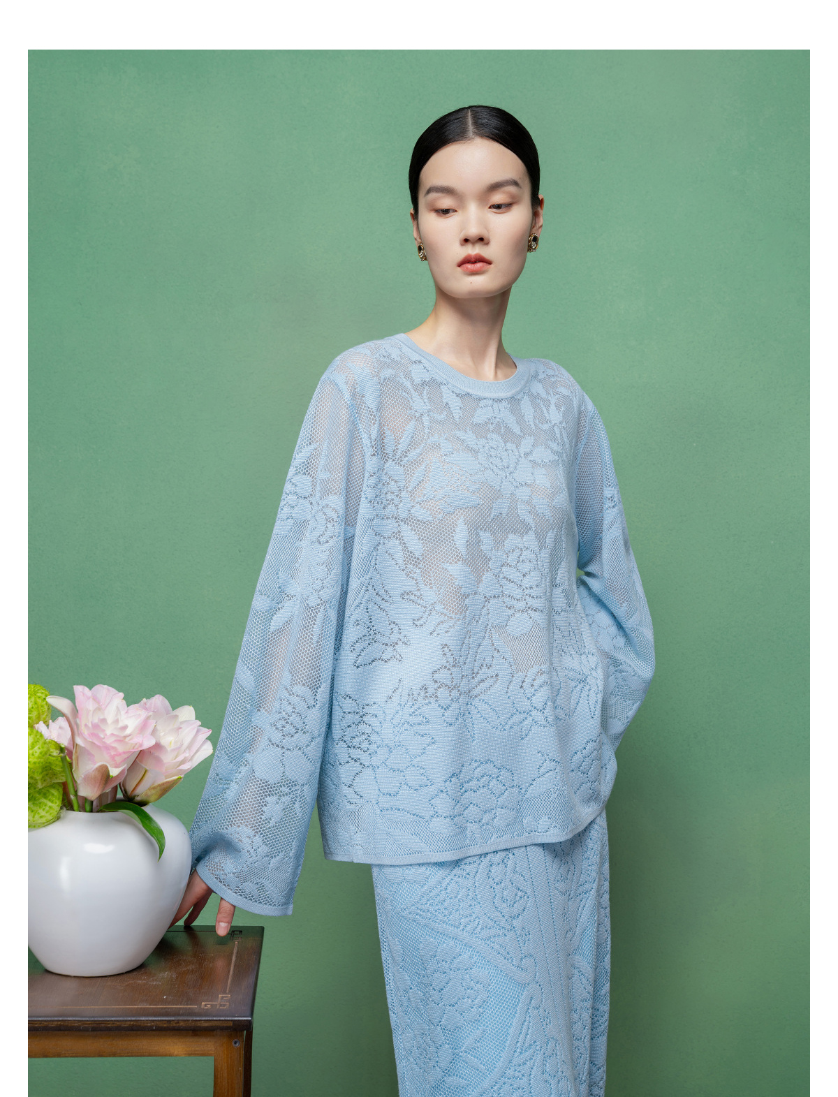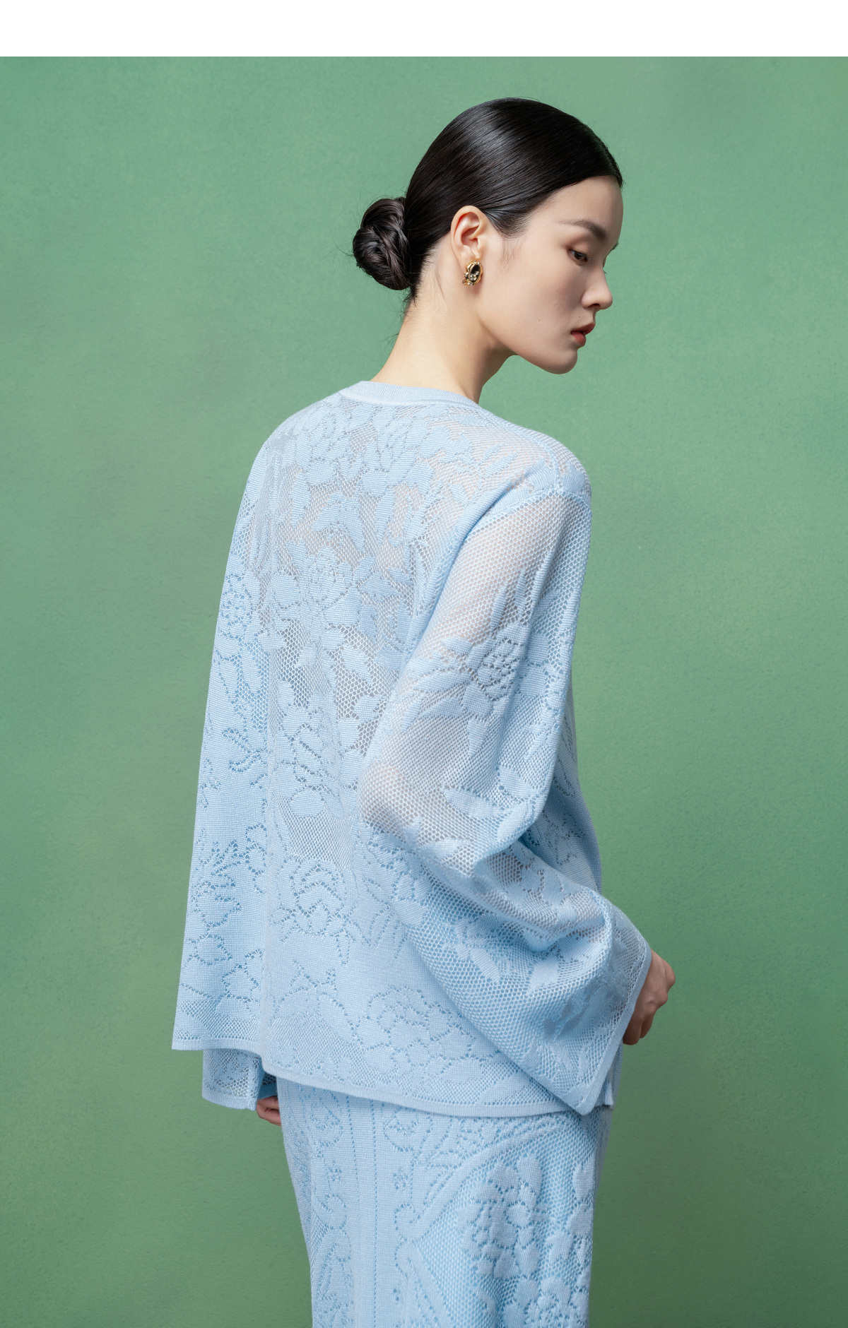 【林栖设计小店】绮花澄意|浅兰色提花肌理2026春新款宽松毛织上衣1961218