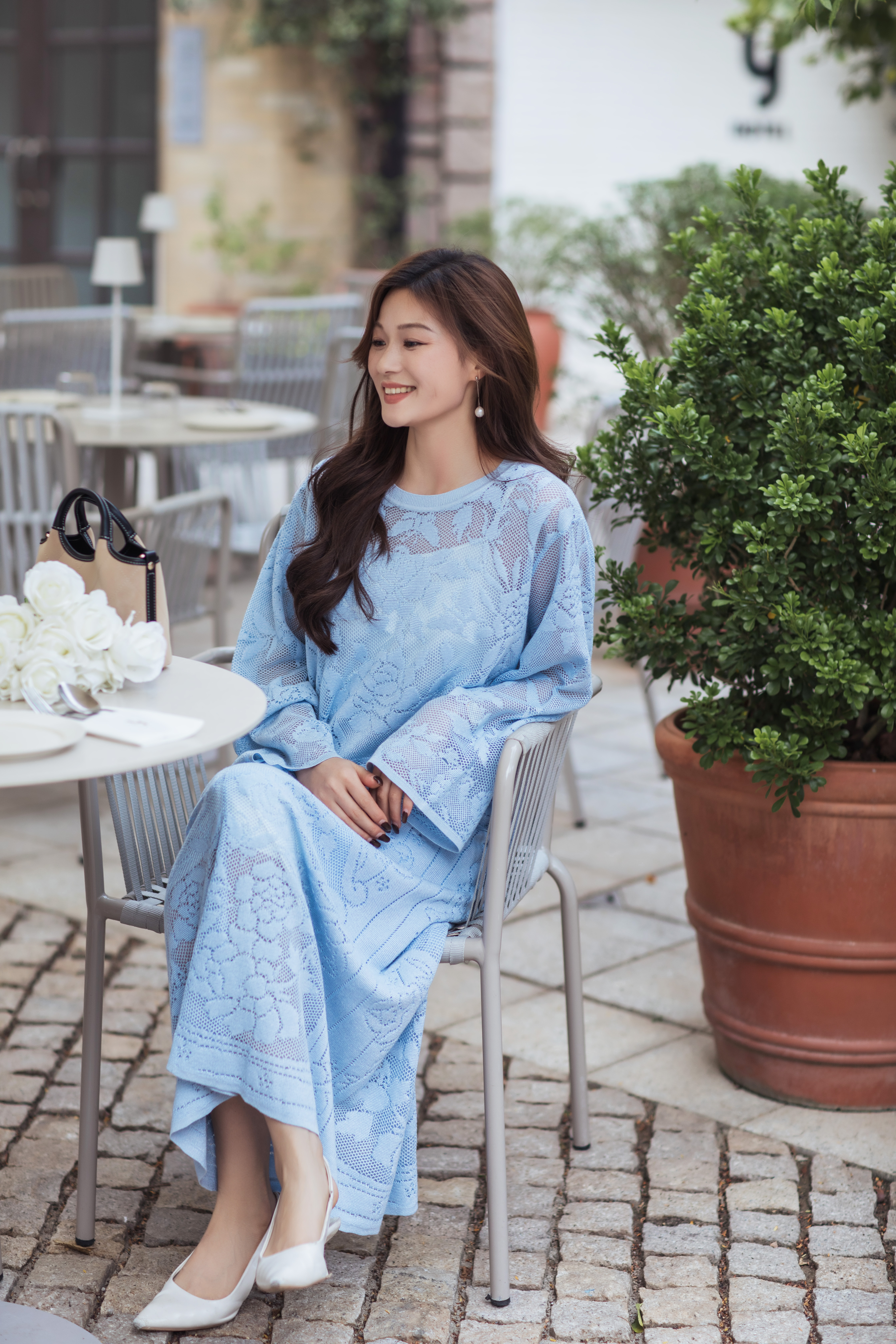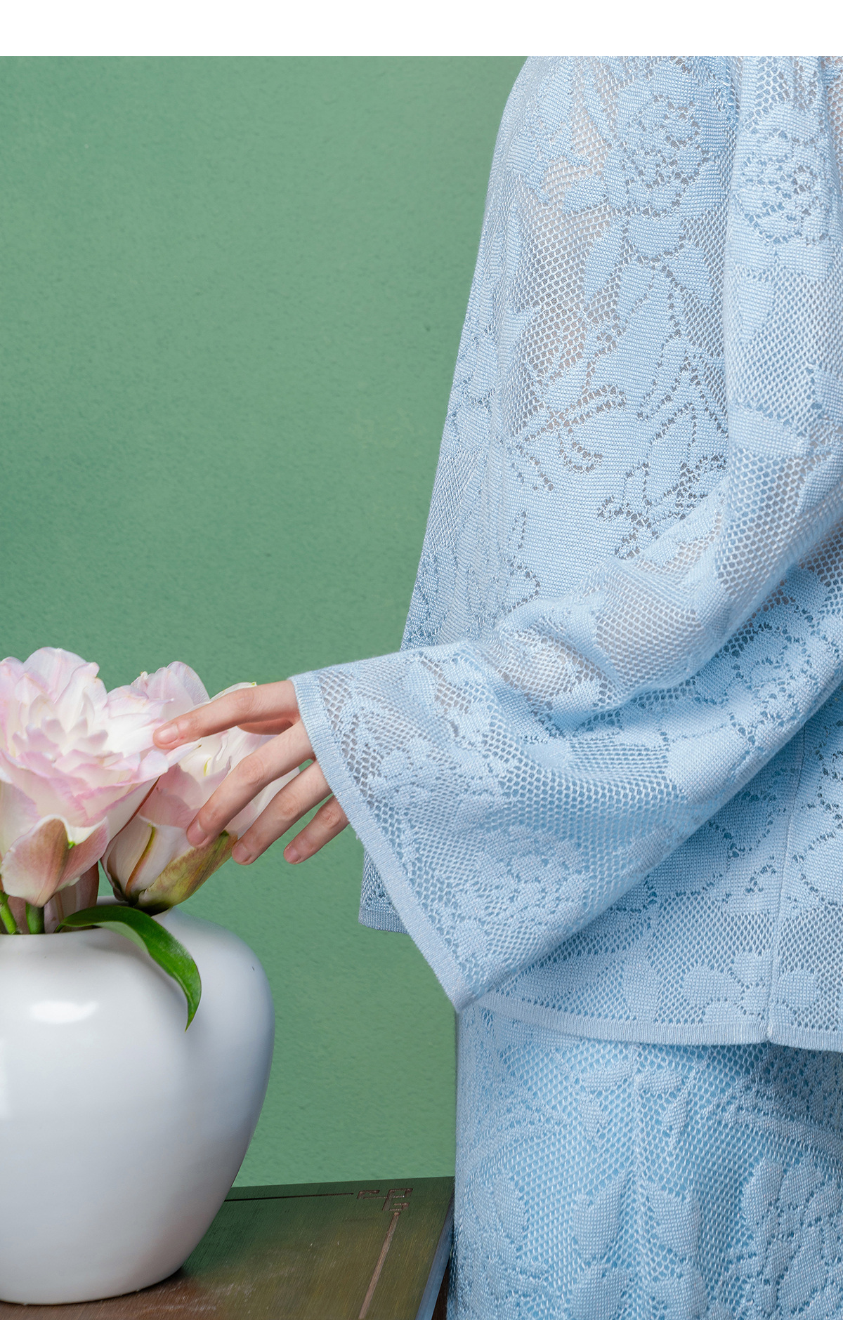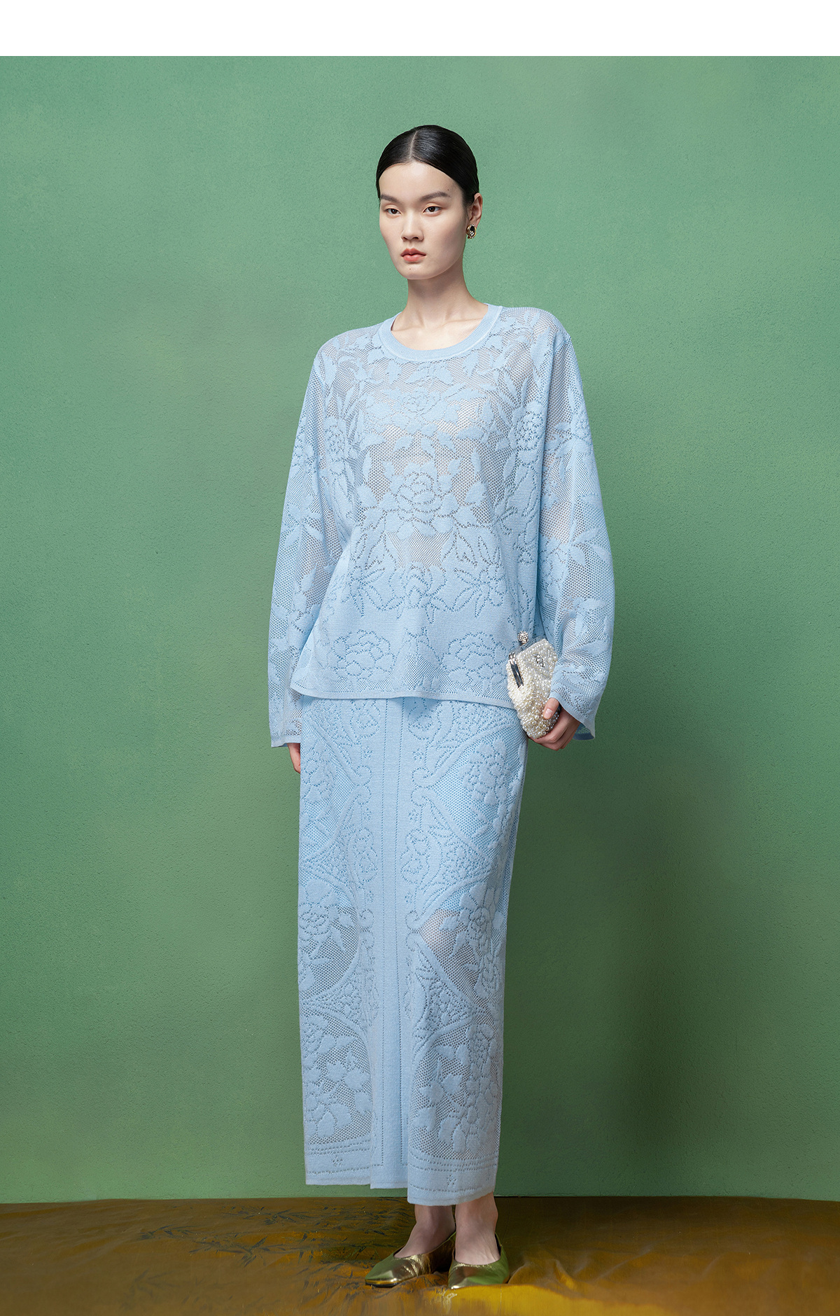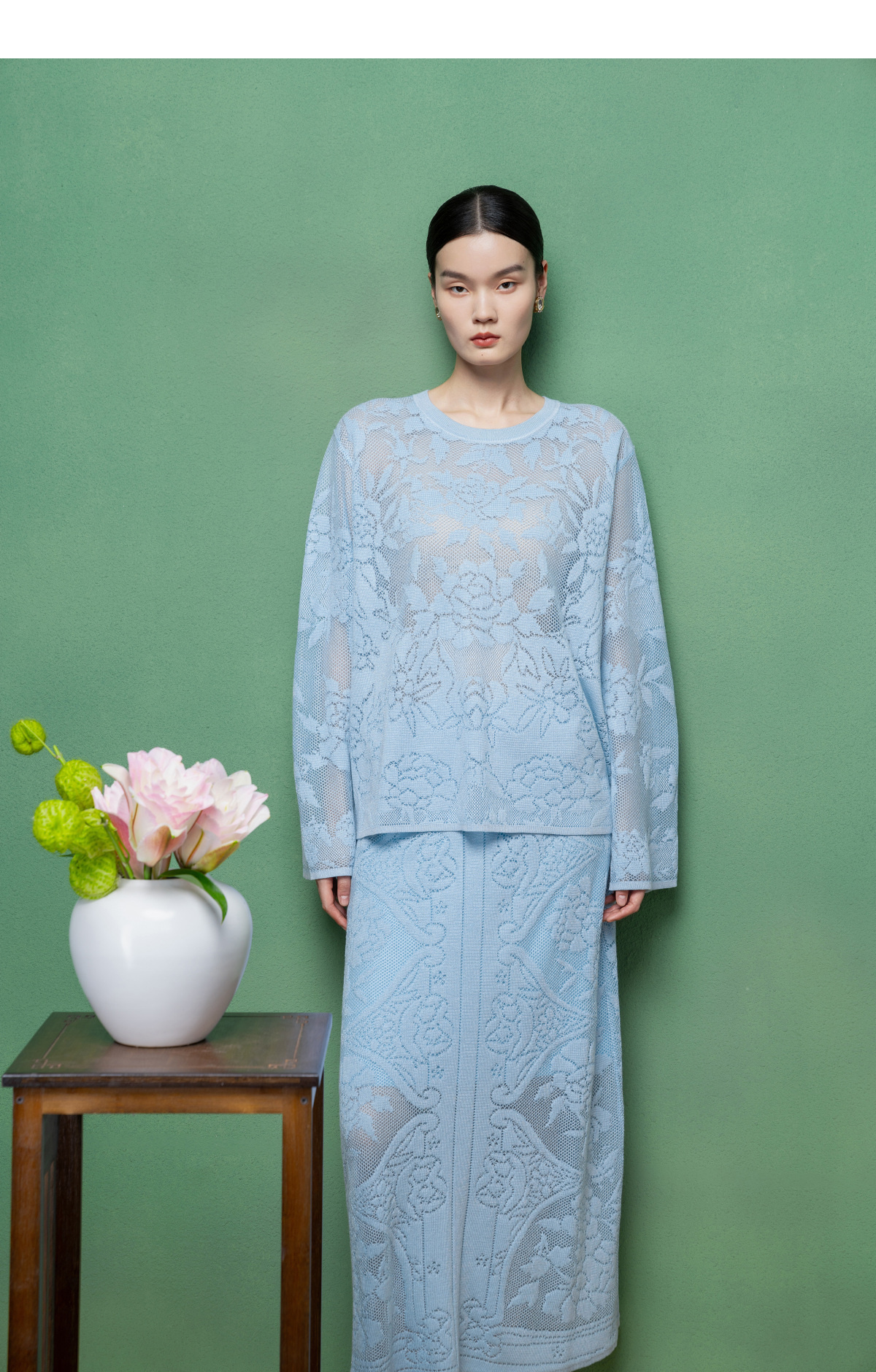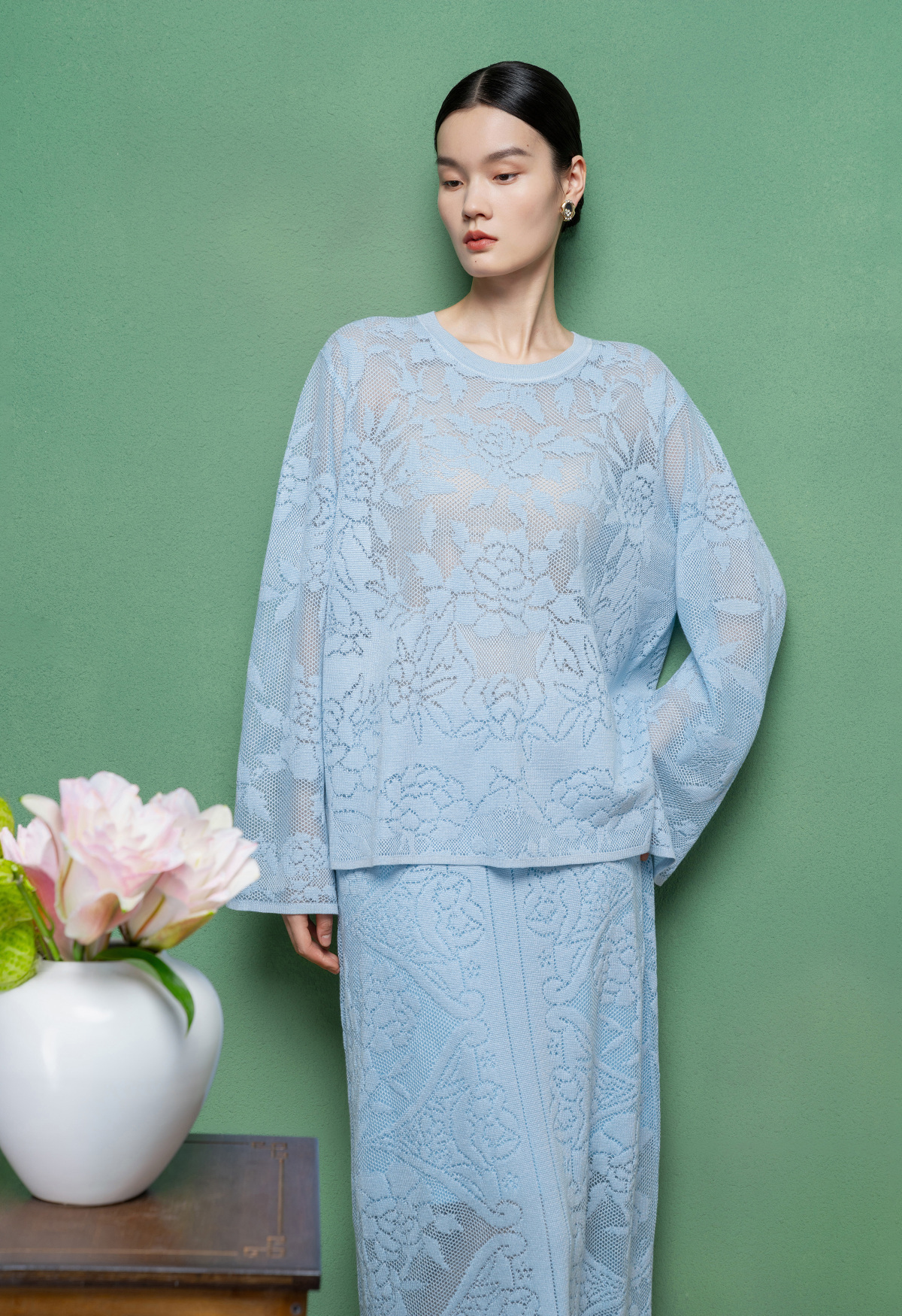 【林栖设计小店】绮花澄意|浅兰色提花肌理2026春新款宽松毛织上衣1961218