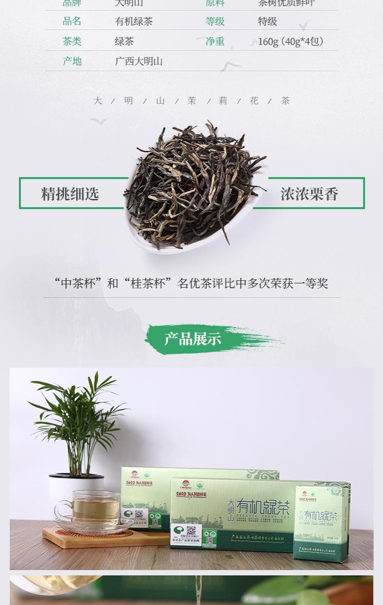大明山 广西农垦 产品质量可溯源 特级有机绿茶 160g(40gx4/盒)