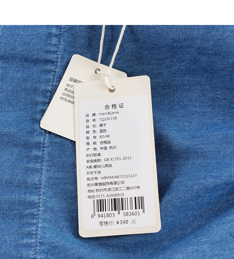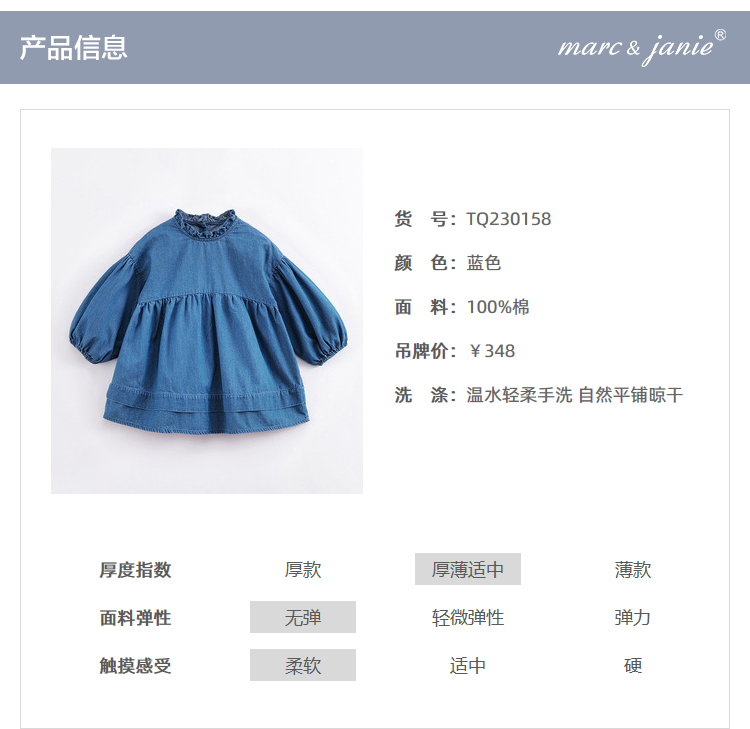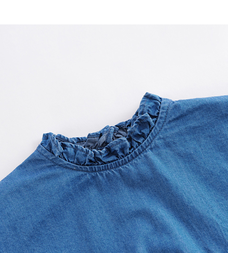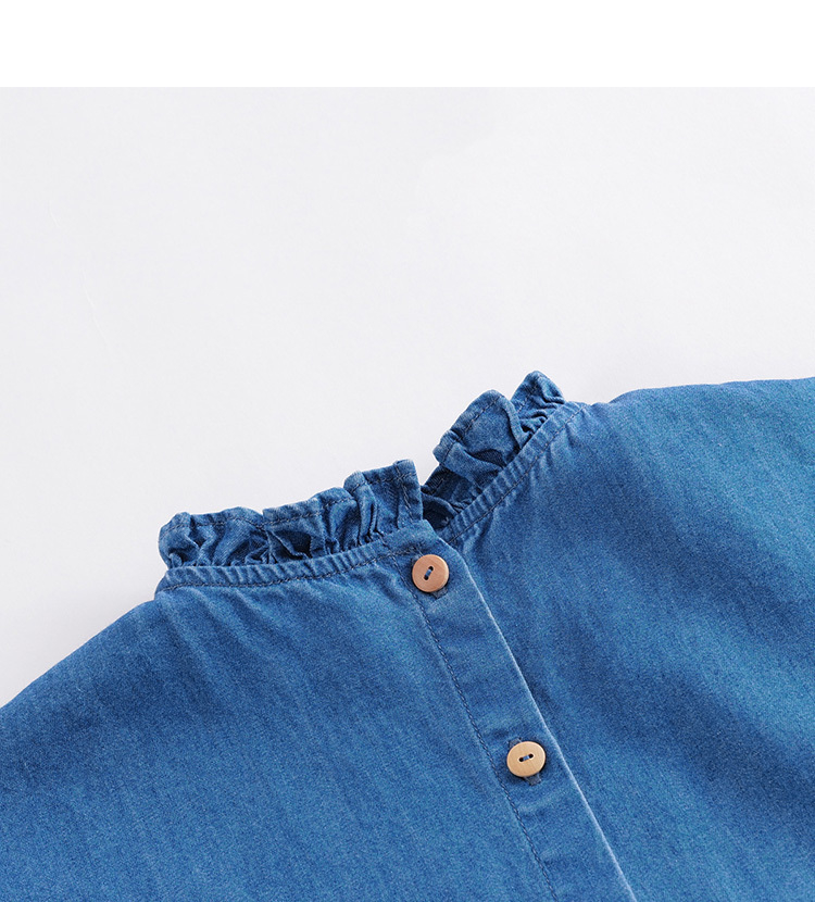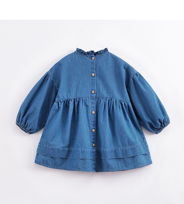 马克珍妮春装新款 女童田园风花边立领牛仔连衣裙230158