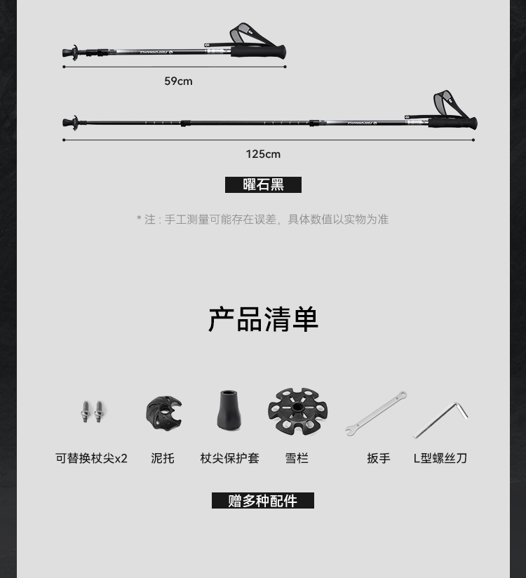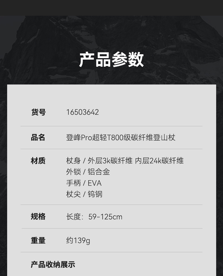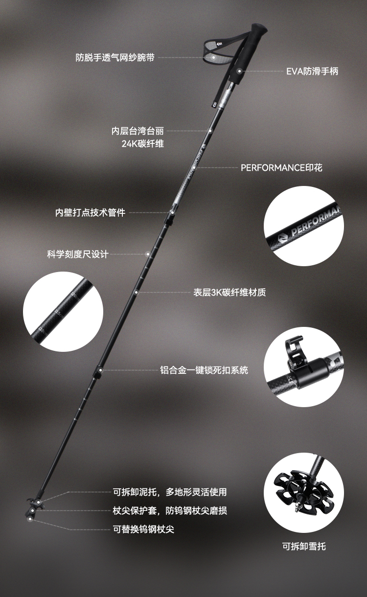 【登峰Pro】伯希和户外登山杖T800级碳纤维伸缩防滑爬山手杖装备16503642