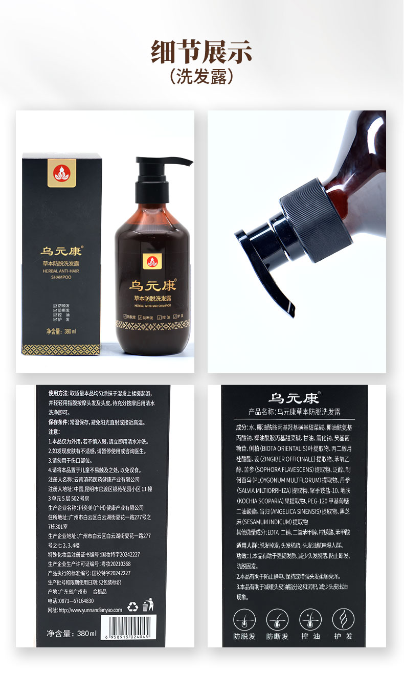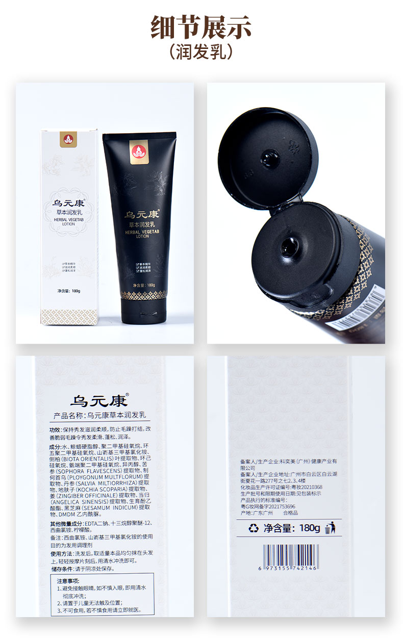 乌元康草本防脱洗发露&乌元康草本润发乳 侧柏叶、生姜、制何首乌、当归等8种草本精华 0香精无硅油洗发露 防脱发、防断发、控油、护发