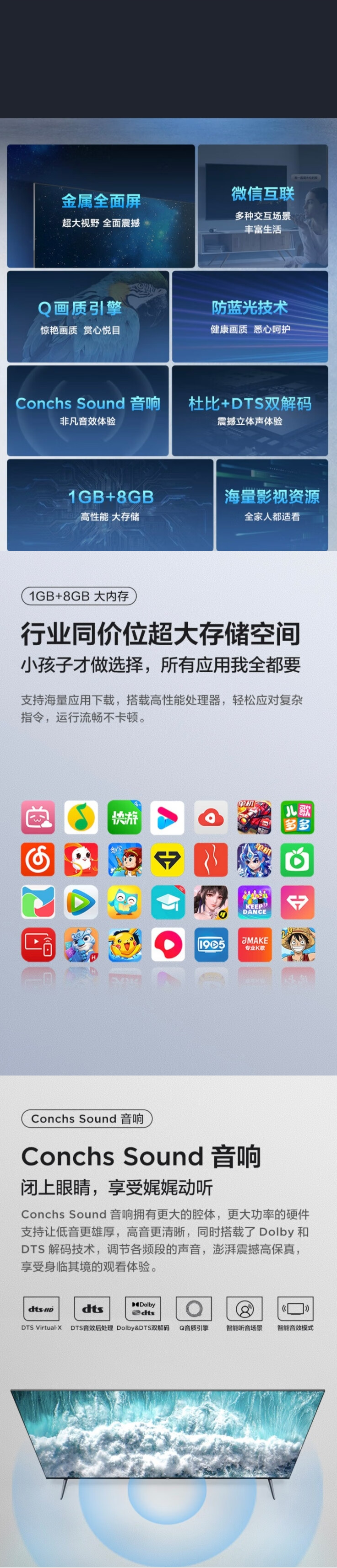 TCL(912578)电视32V6EA,支持投屏,全面屏金属机身,安卓智能机。 32英寸 TCL智慧屏