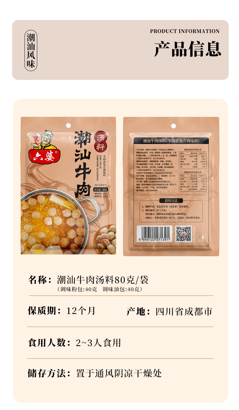 六婆 潮汕牛肉清汤底料 80g/袋