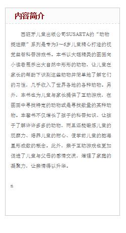 | 适读人群 :3-6岁 本丛书是专为3-6岁儿童精心打造的视觉益智科普游戏书。本书以大幅精美的图画向小读者展示出大自然中形形的动物,让儿童在家长的帮助下识别这些动物并简单地了解它们的习性,几乎收入了世界各地的各种动物。另外,本丛书也为儿童与家长提供了互动游戏,在图画中寻找特定的动物或是寻找数量的某种动物。本丛书不仅增长了孩子的科普知识、让孩子了解许许多多的动物,而且还能锻炼儿童的观察力、培养儿童的耐心、使学前儿童的脑海里形成数的概念。此外,亲子互动游戏也更加促进了儿童与父母的感情交流,,增加了家庭的凝聚力,让亲情得以升华。 |