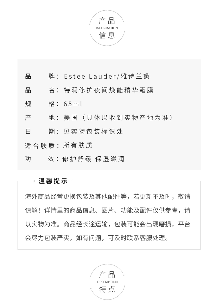 Estee Lauder/雅诗兰黛新品ANR特润大棕罐精华膜霜65ml修护面霜【CDF】