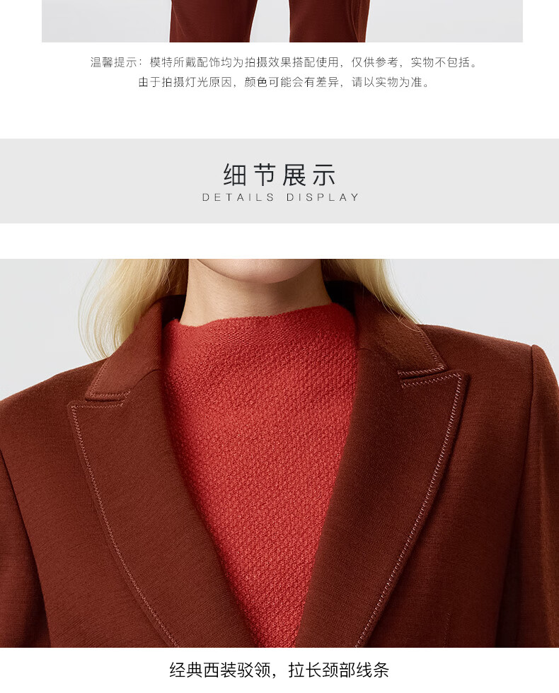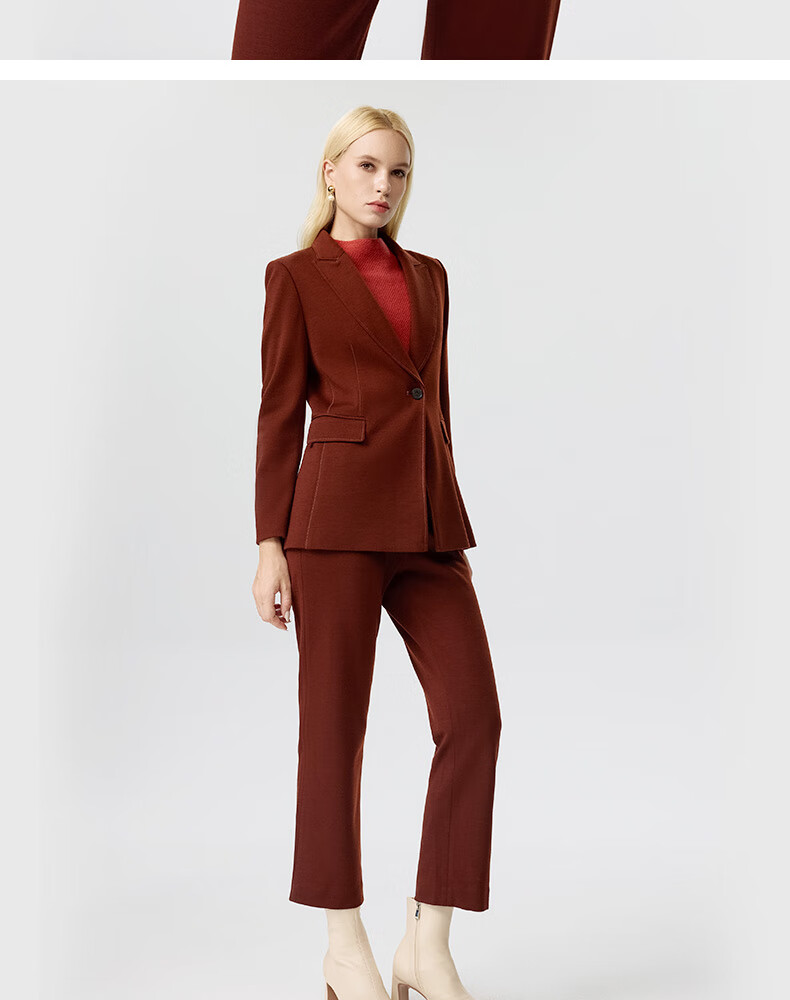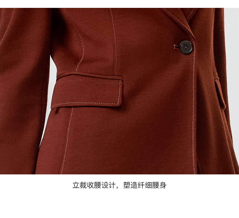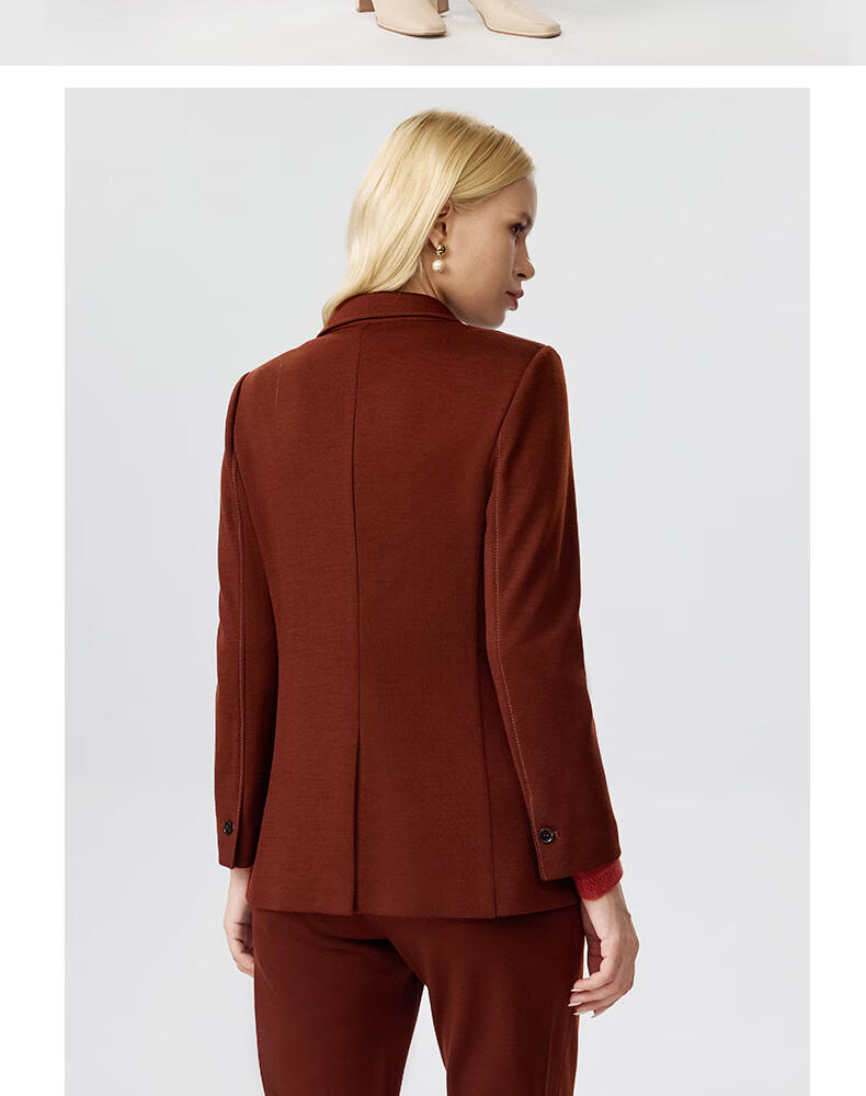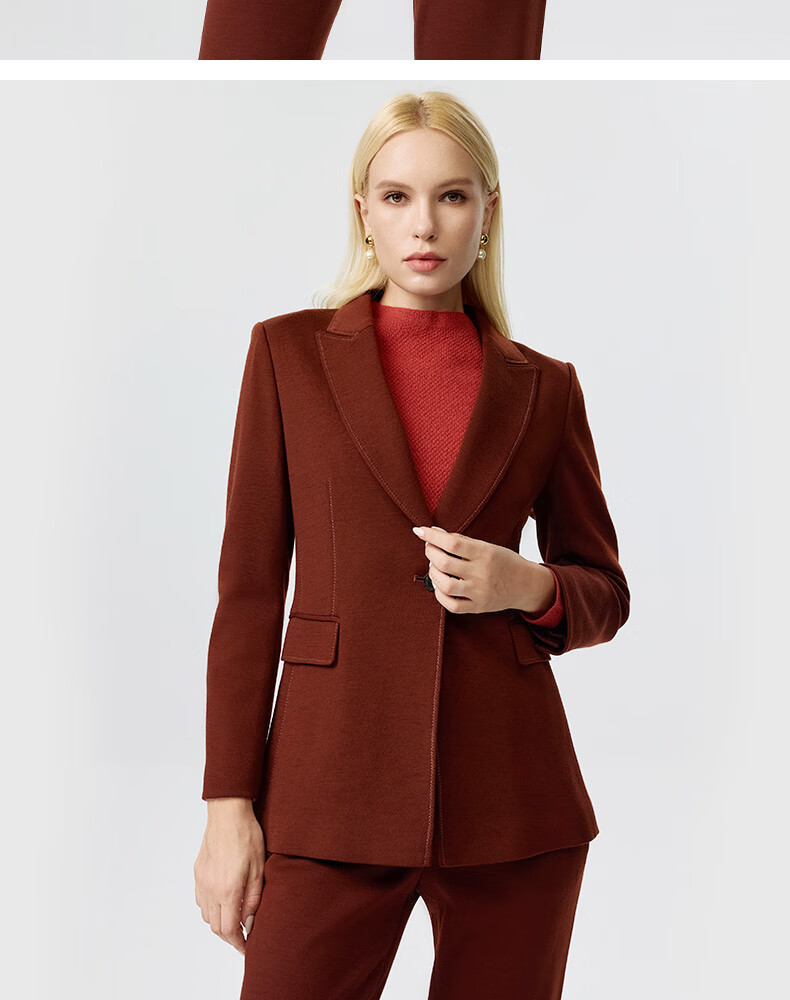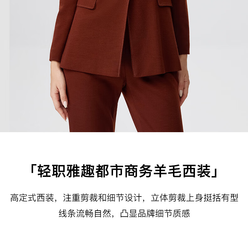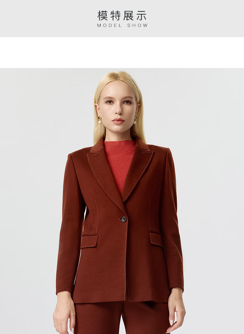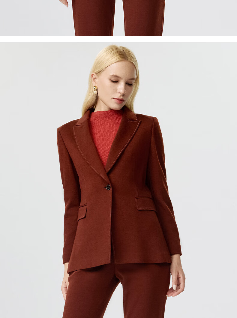 皮尔卡丹女装西装秋季简约焦糖色经典羊毛西服上衣P3356U3950C0