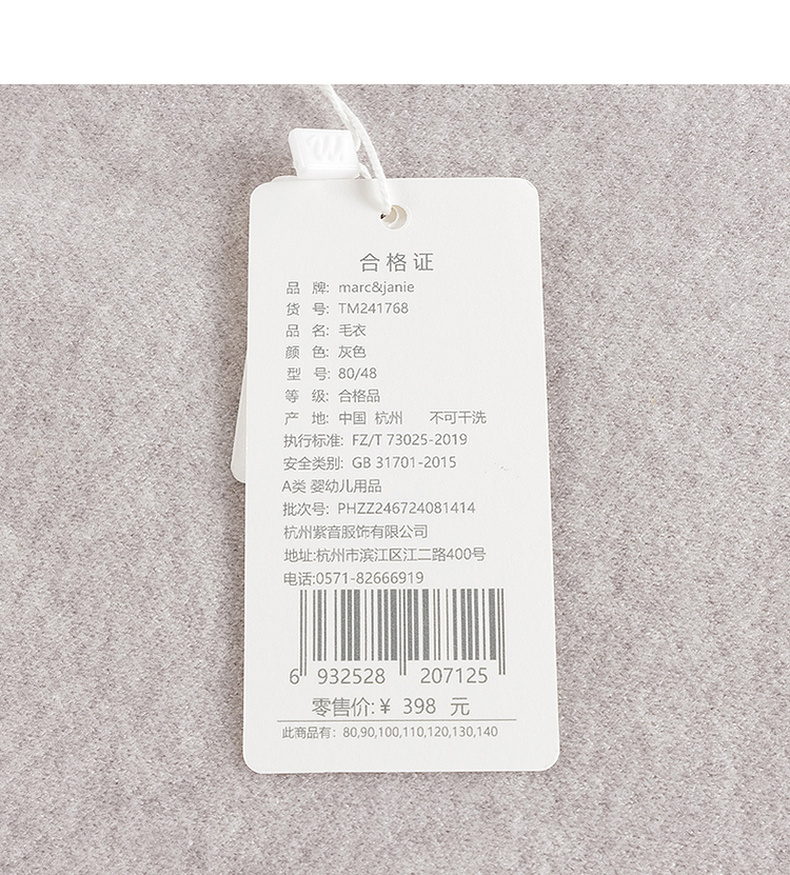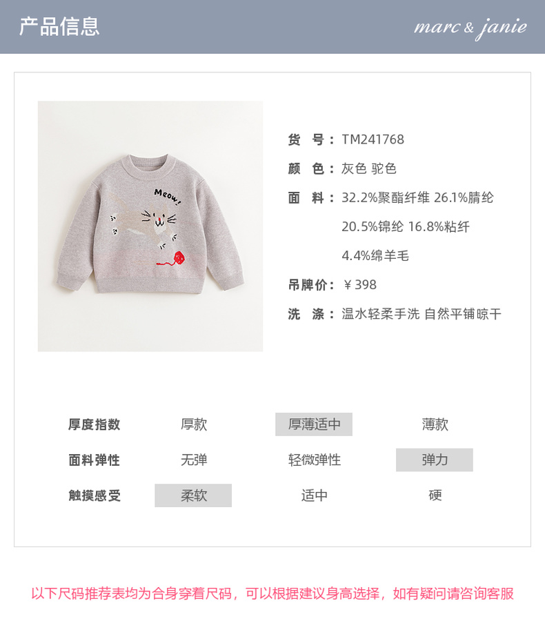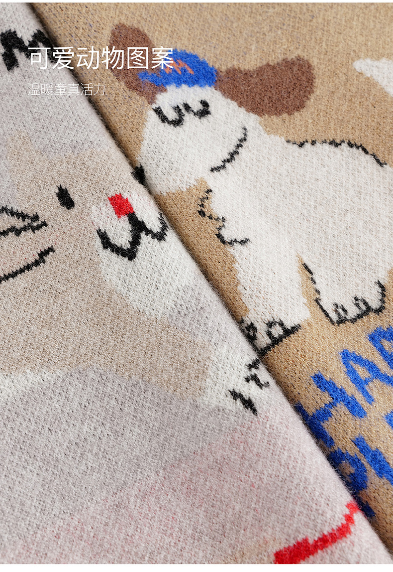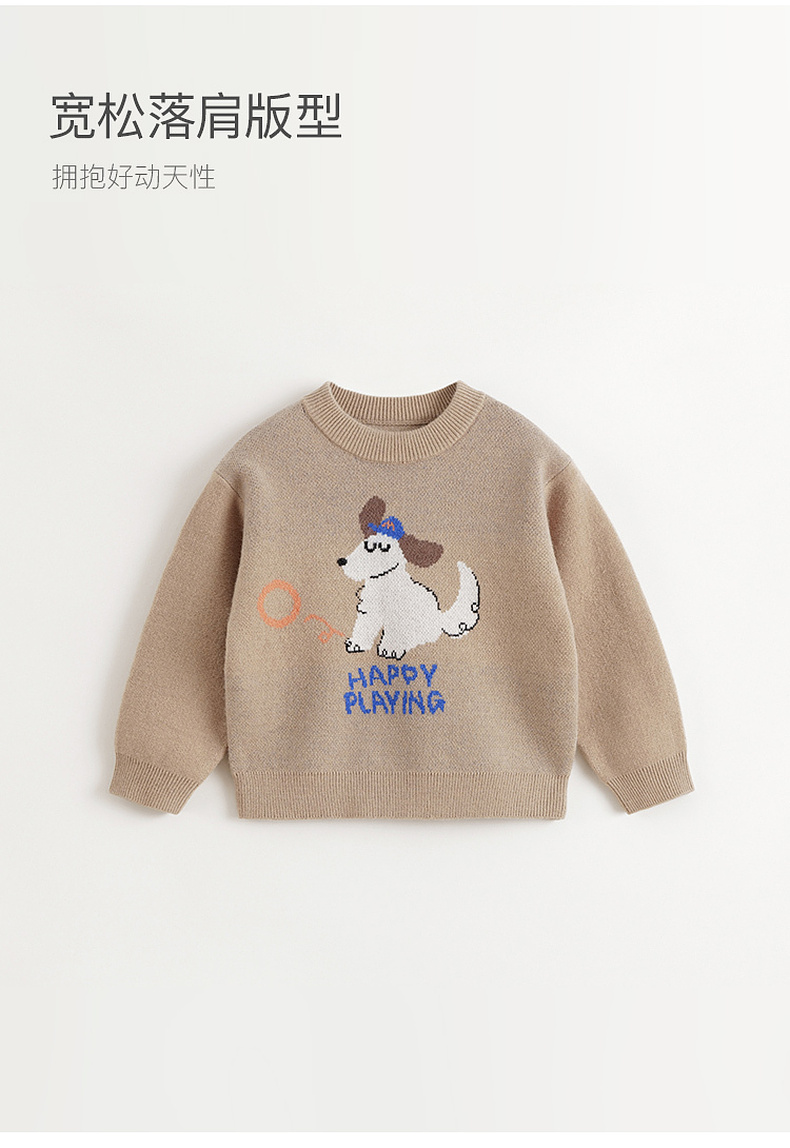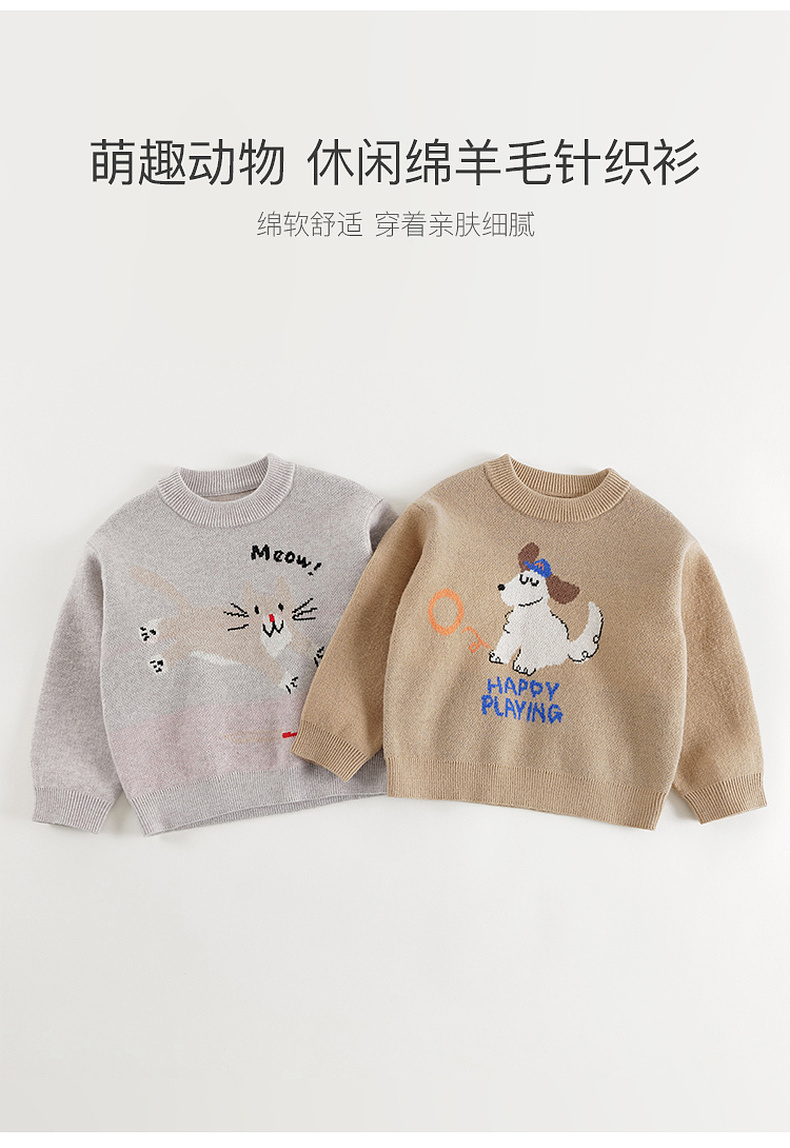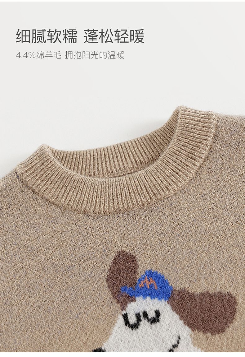 马克珍妮男童萌趣动物绵羊毛针织衫毛衣2024年秋冬新款241768