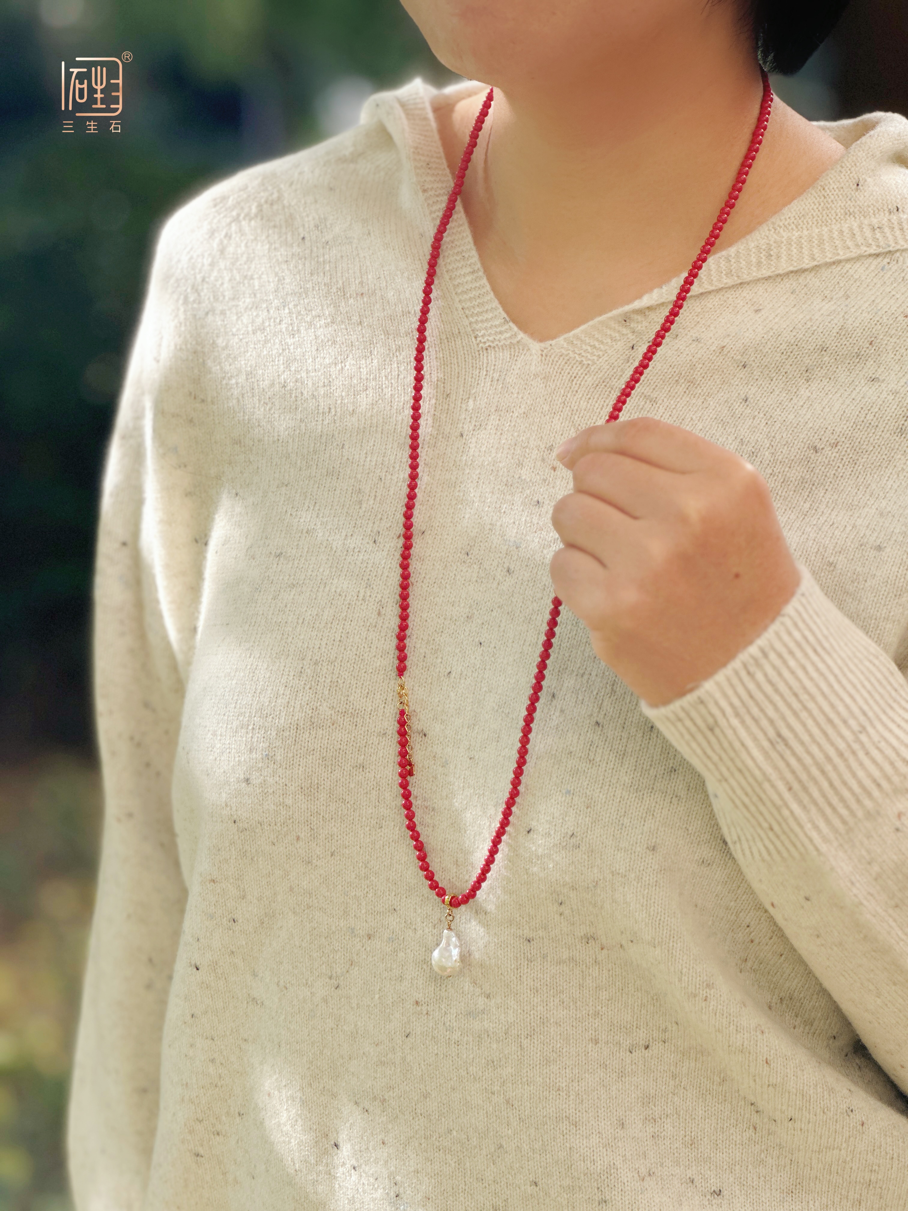 项链:朱砂小圆珠尺寸--约4mm