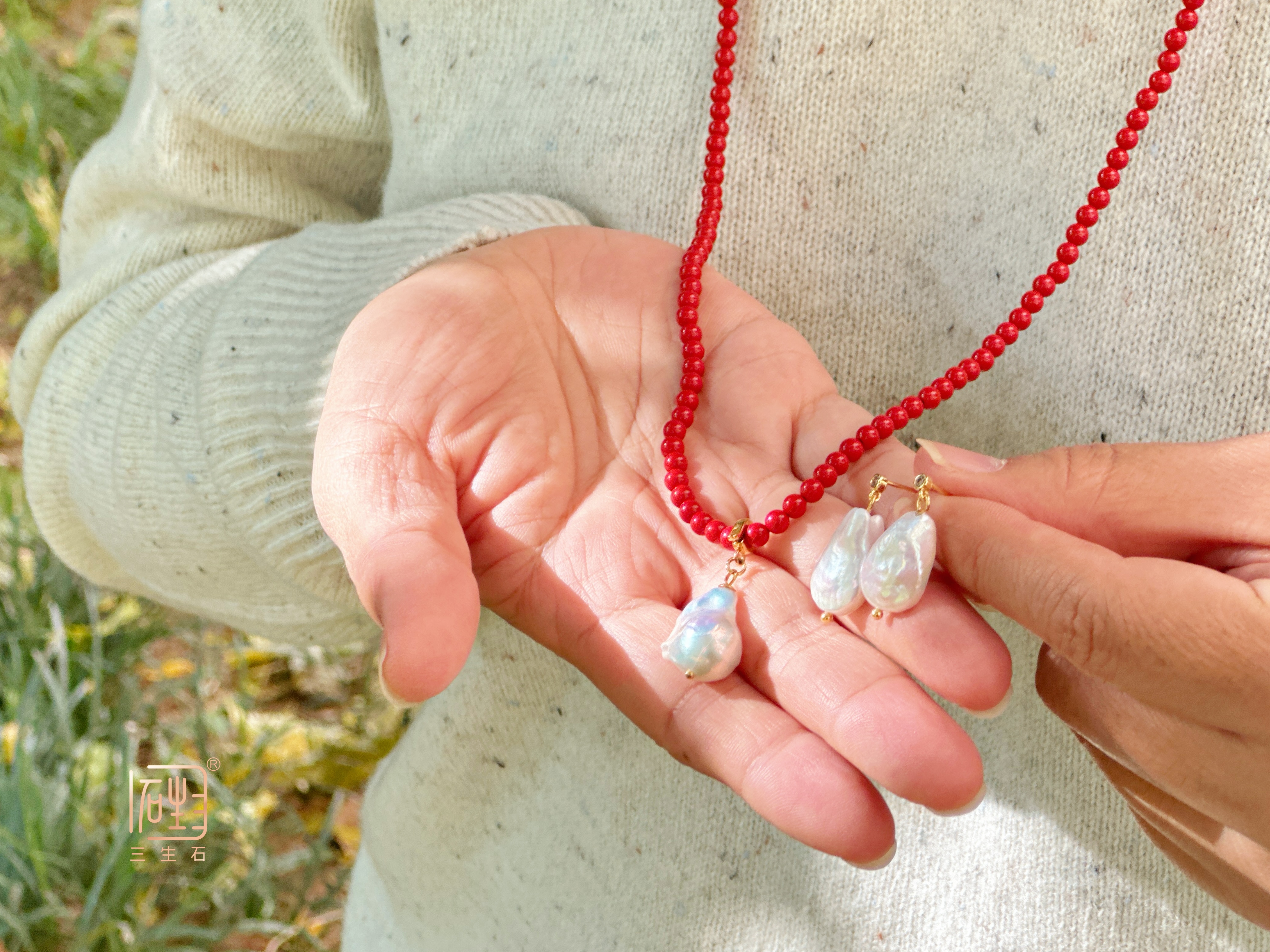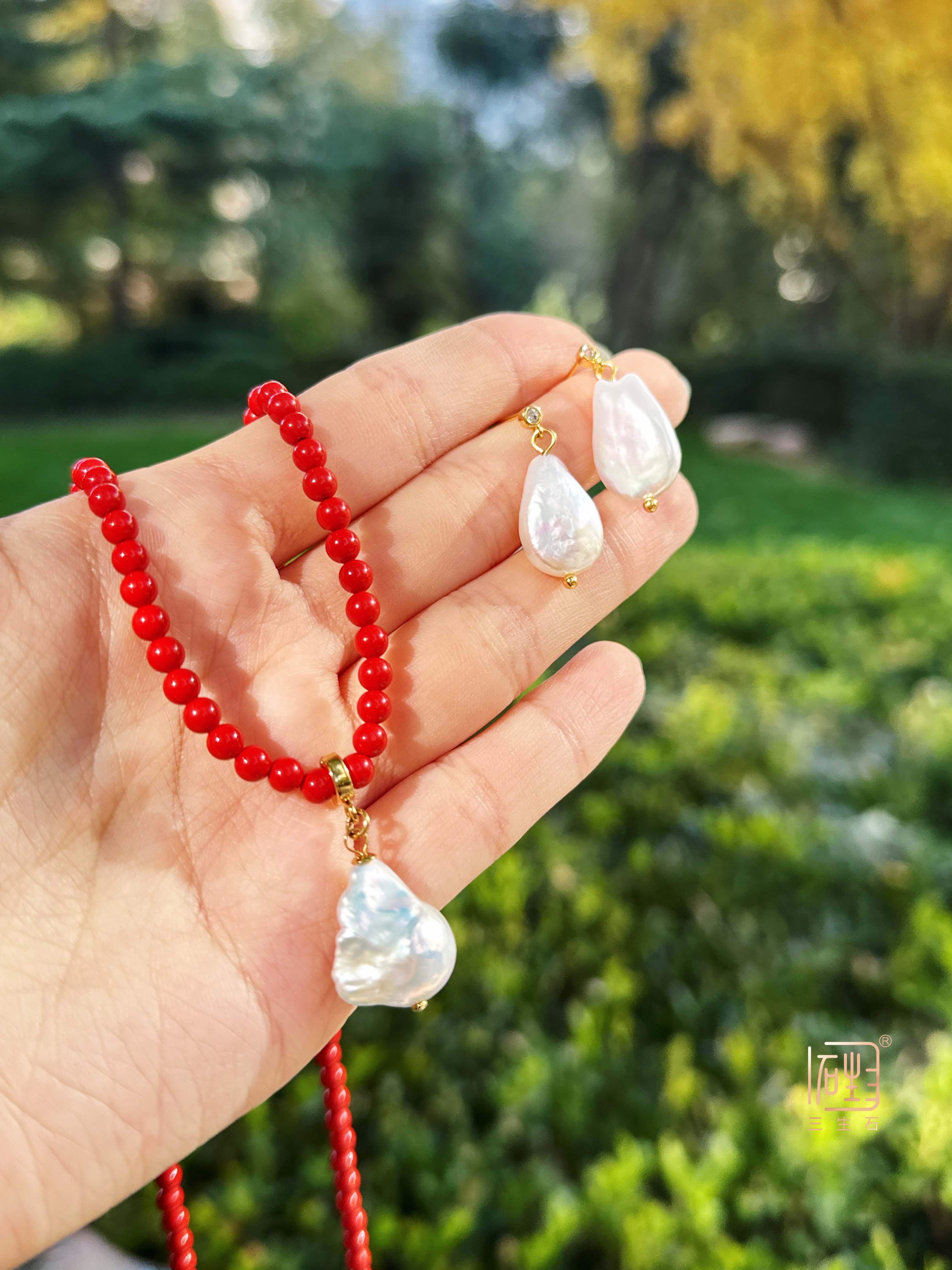 独一无二的炫彩小巴洛克坠在朱砂间