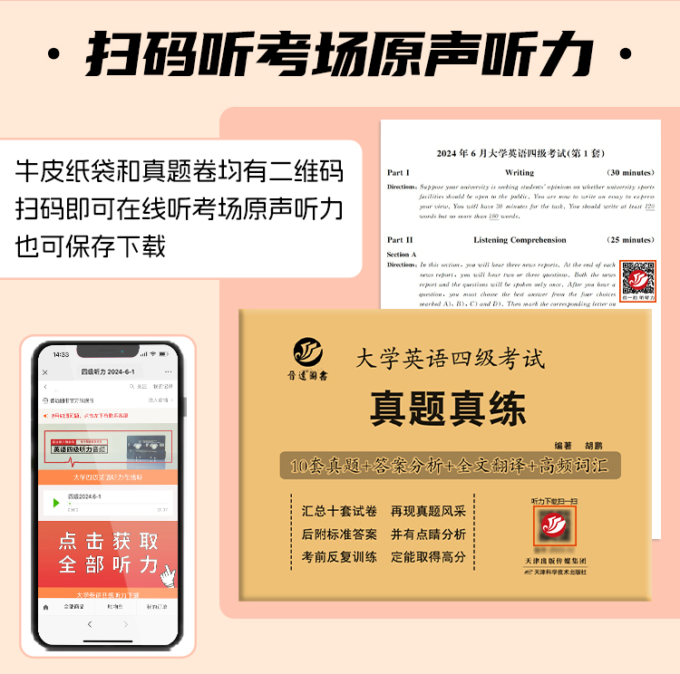 【砍价】四级历年真题 纸质版扫码听力