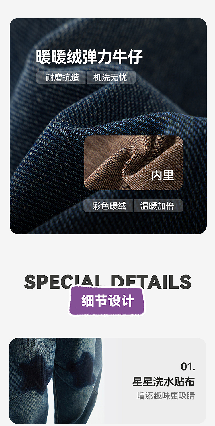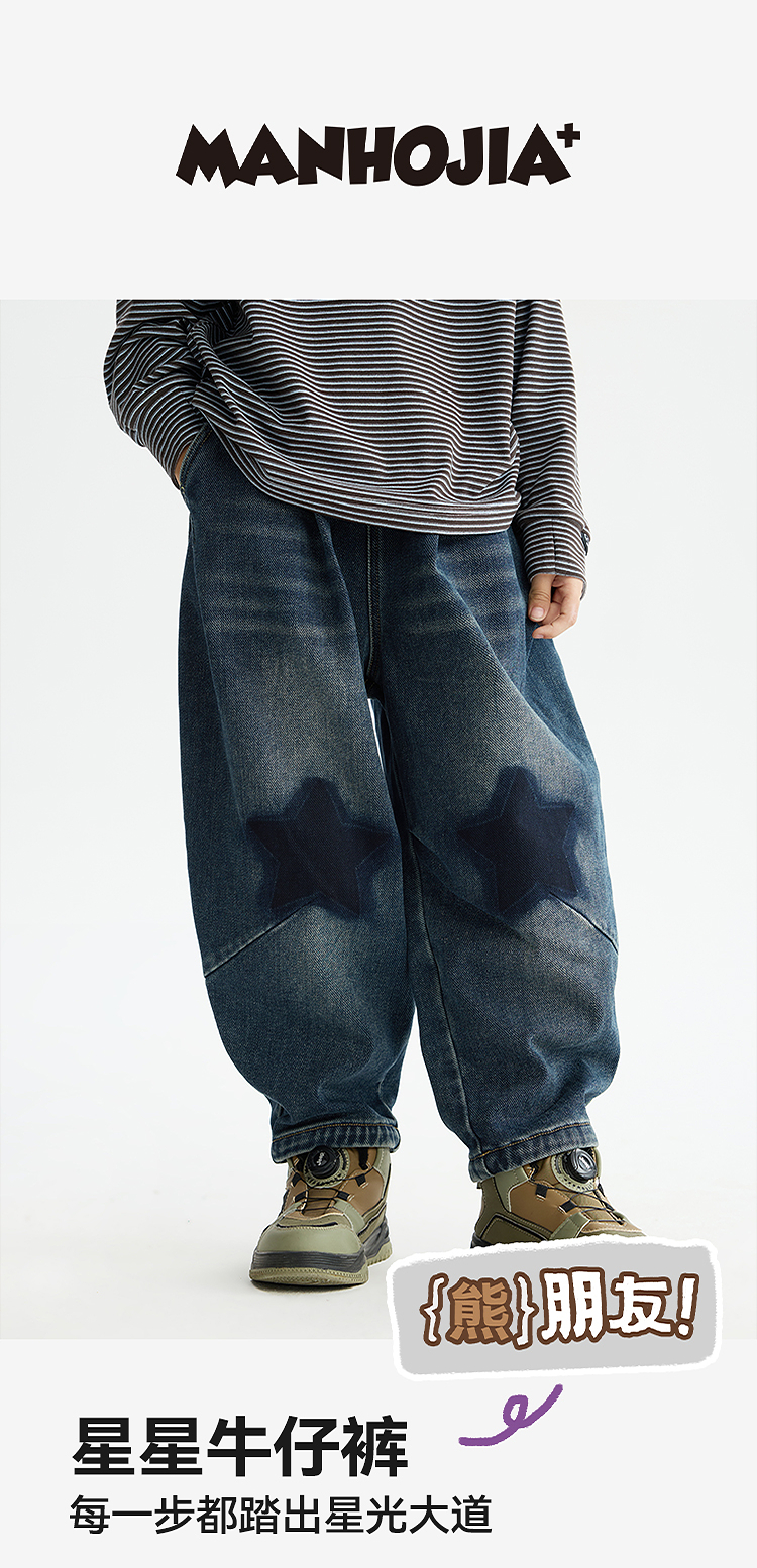 漫画家【星星牛仔裤】儿童牛仔裤25秋冬男女童弹力暖绒耐磨抗造机洗无忧软糯亲肤温暖牛仔裤