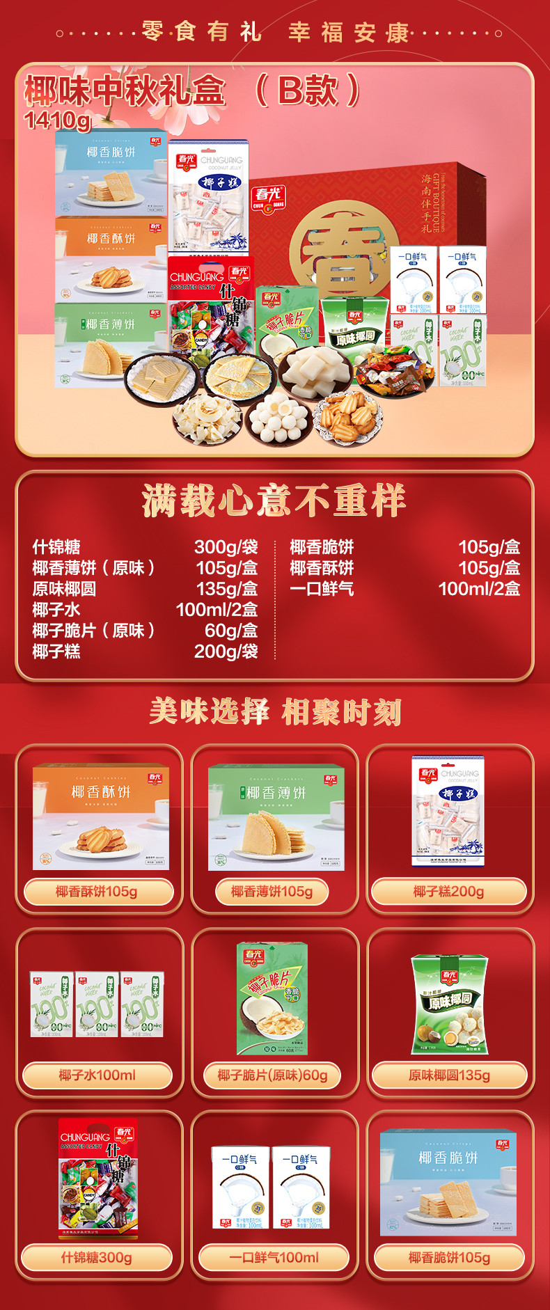 椰味中秋礼盒 (B款)1410g 休闲零食饼干糖果大礼盒