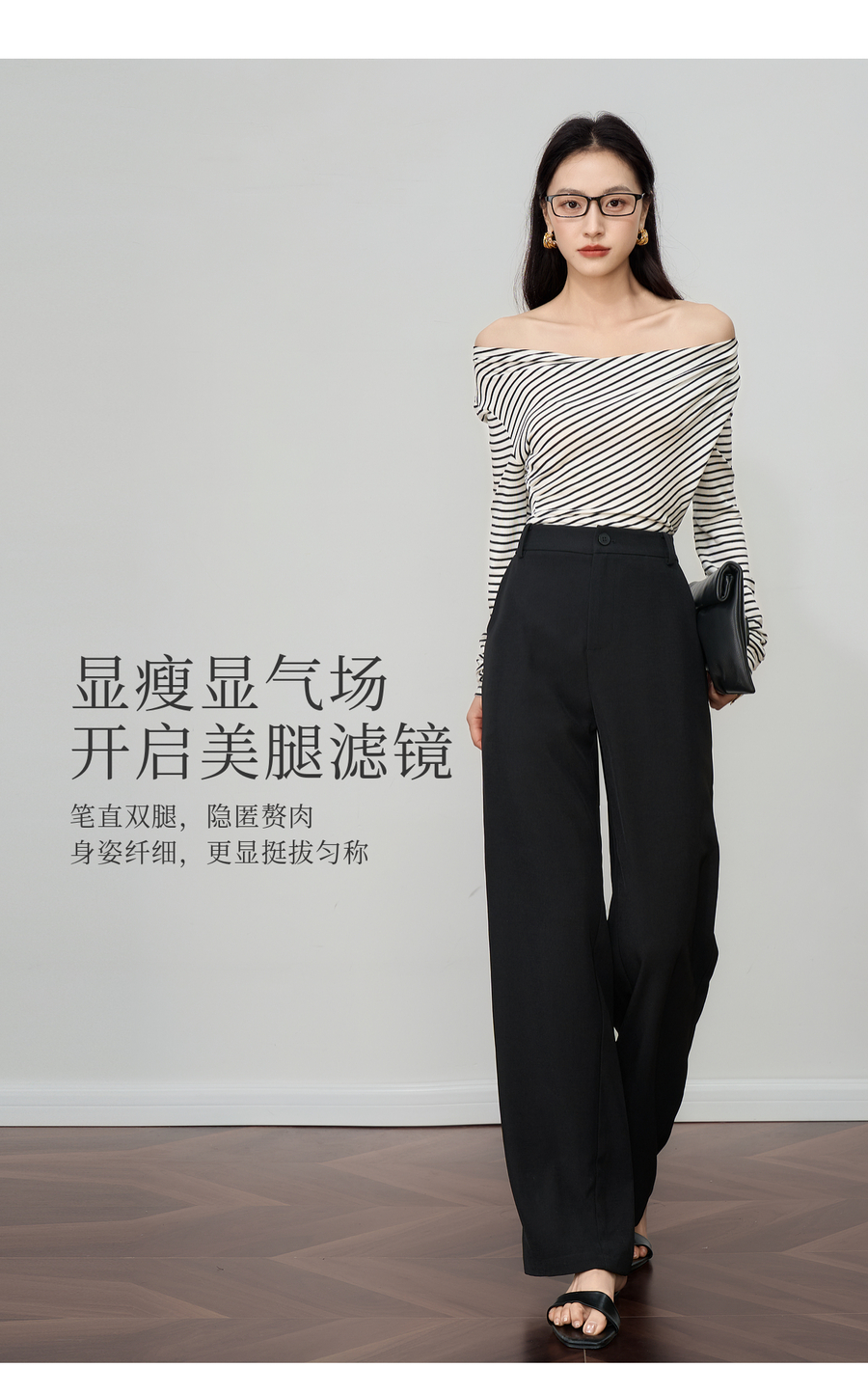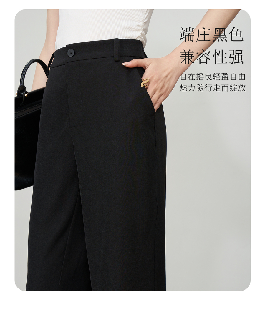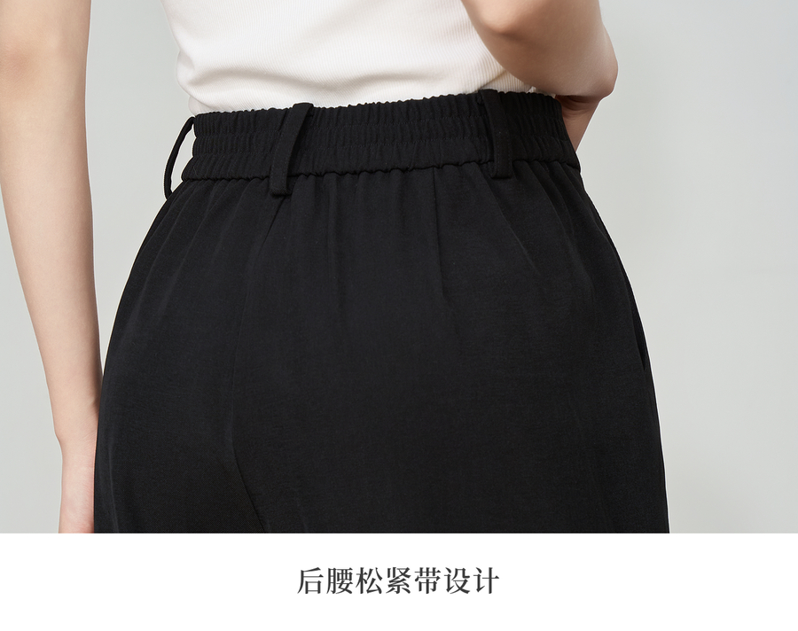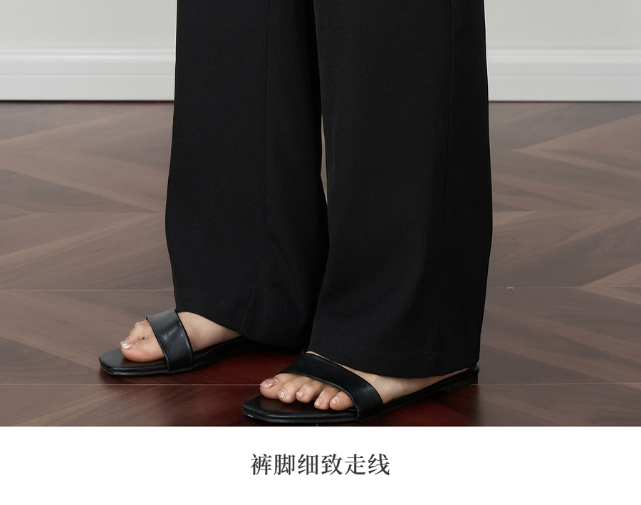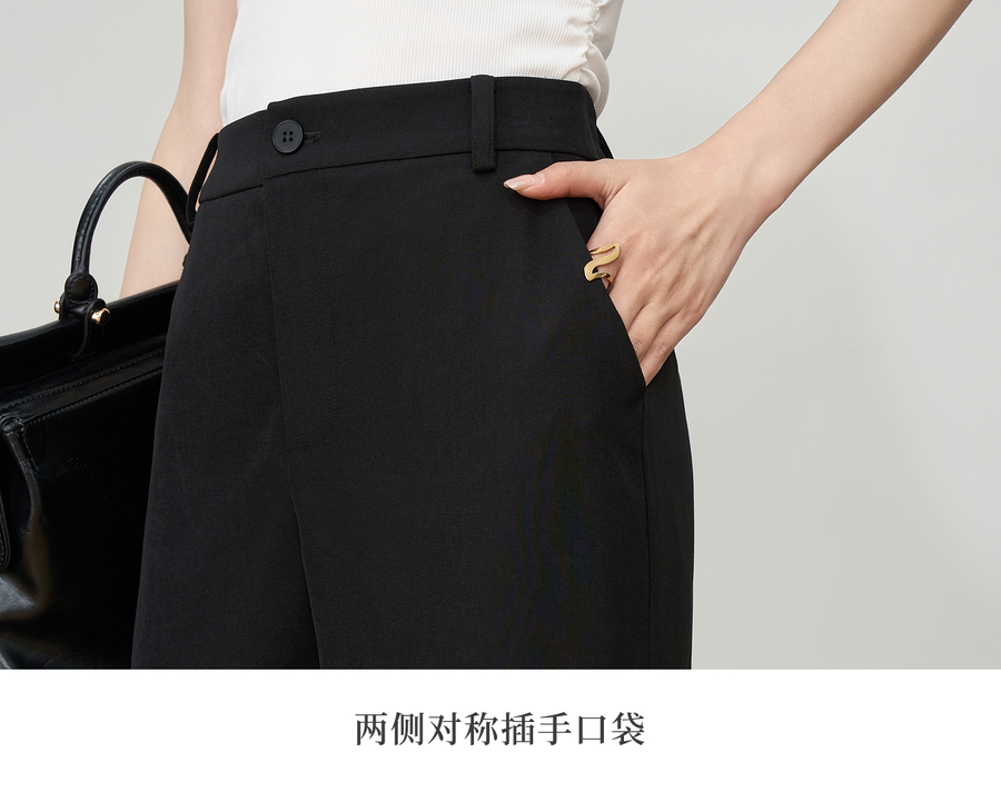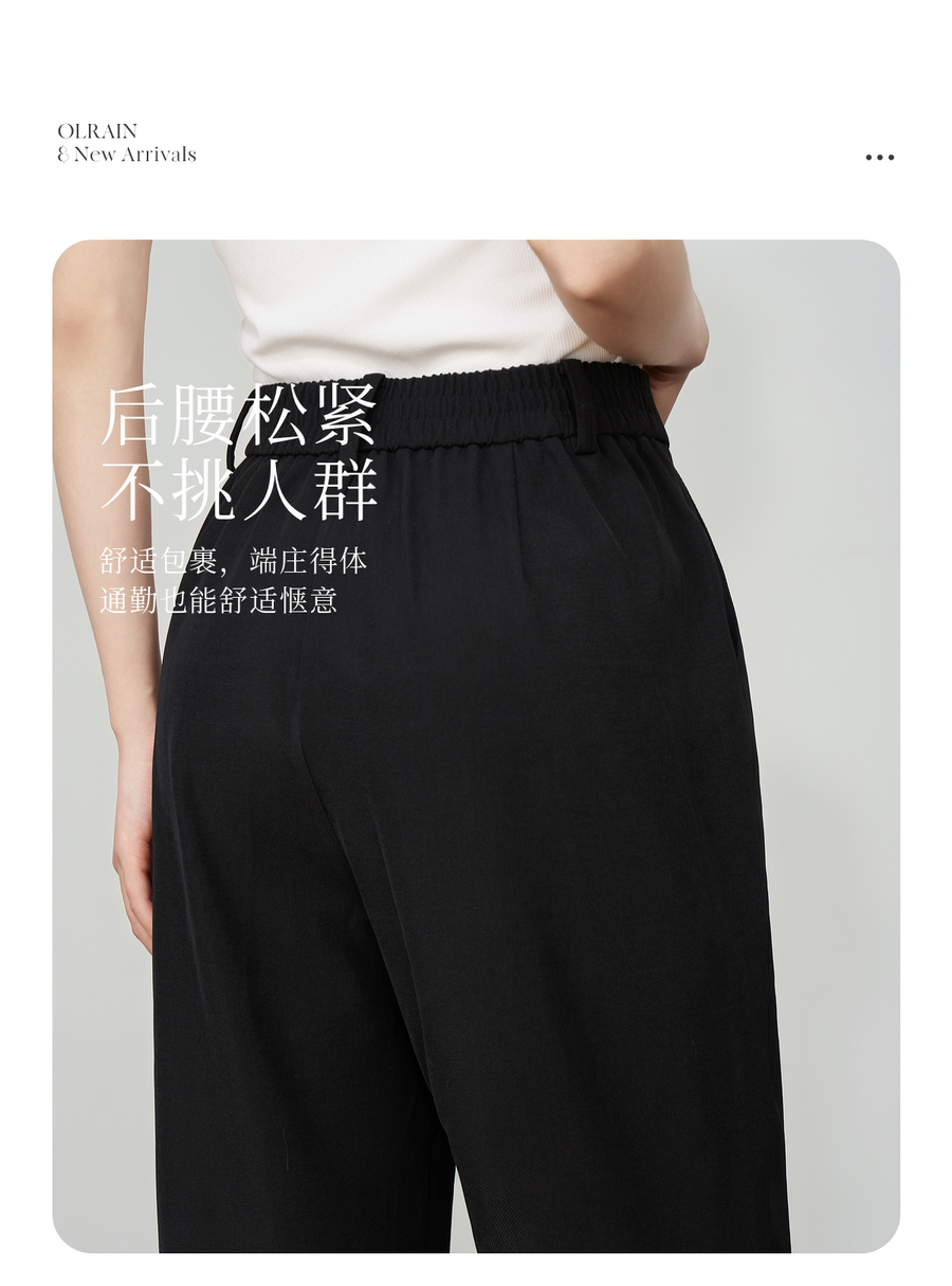 OLrain欧芮儿黑色窄版直筒阔腿裤女夏季2025新款休闲显瘦百搭长裤