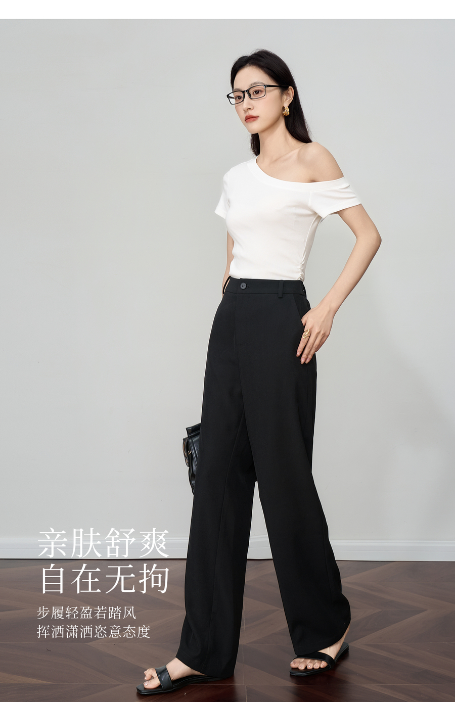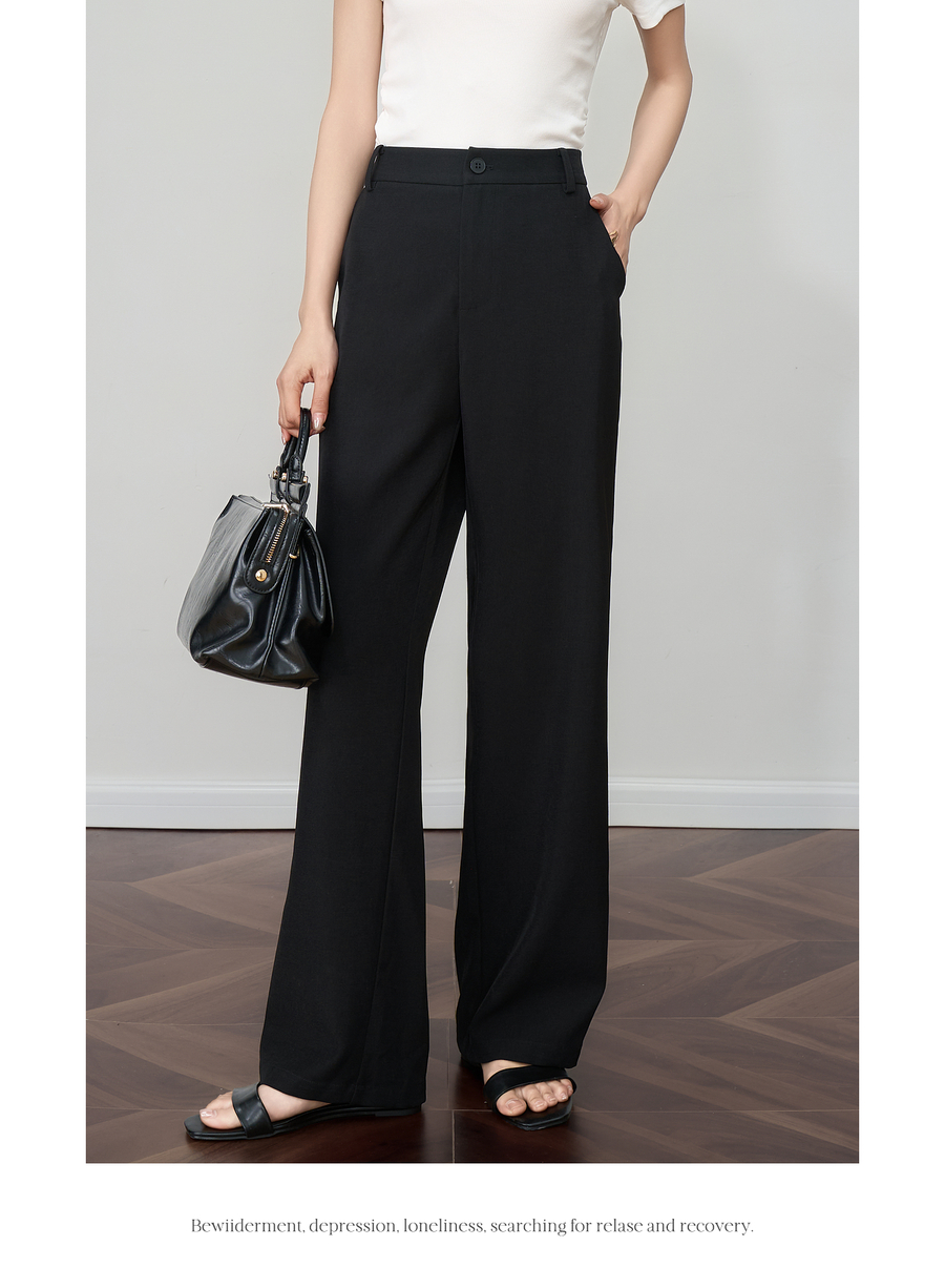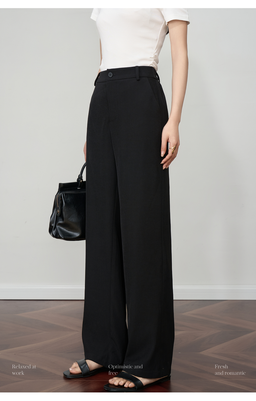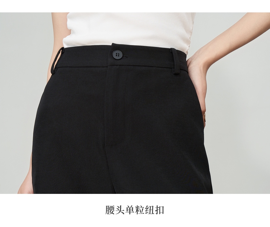 OLrain欧芮儿黑色窄版直筒阔腿裤女夏季2025新款休闲显瘦百搭长裤