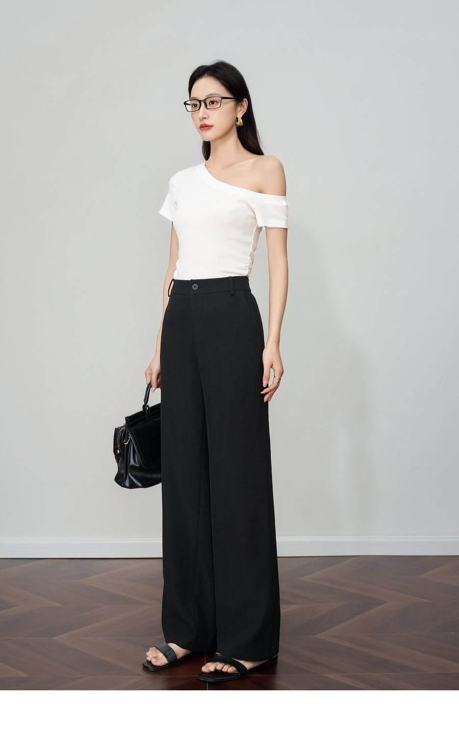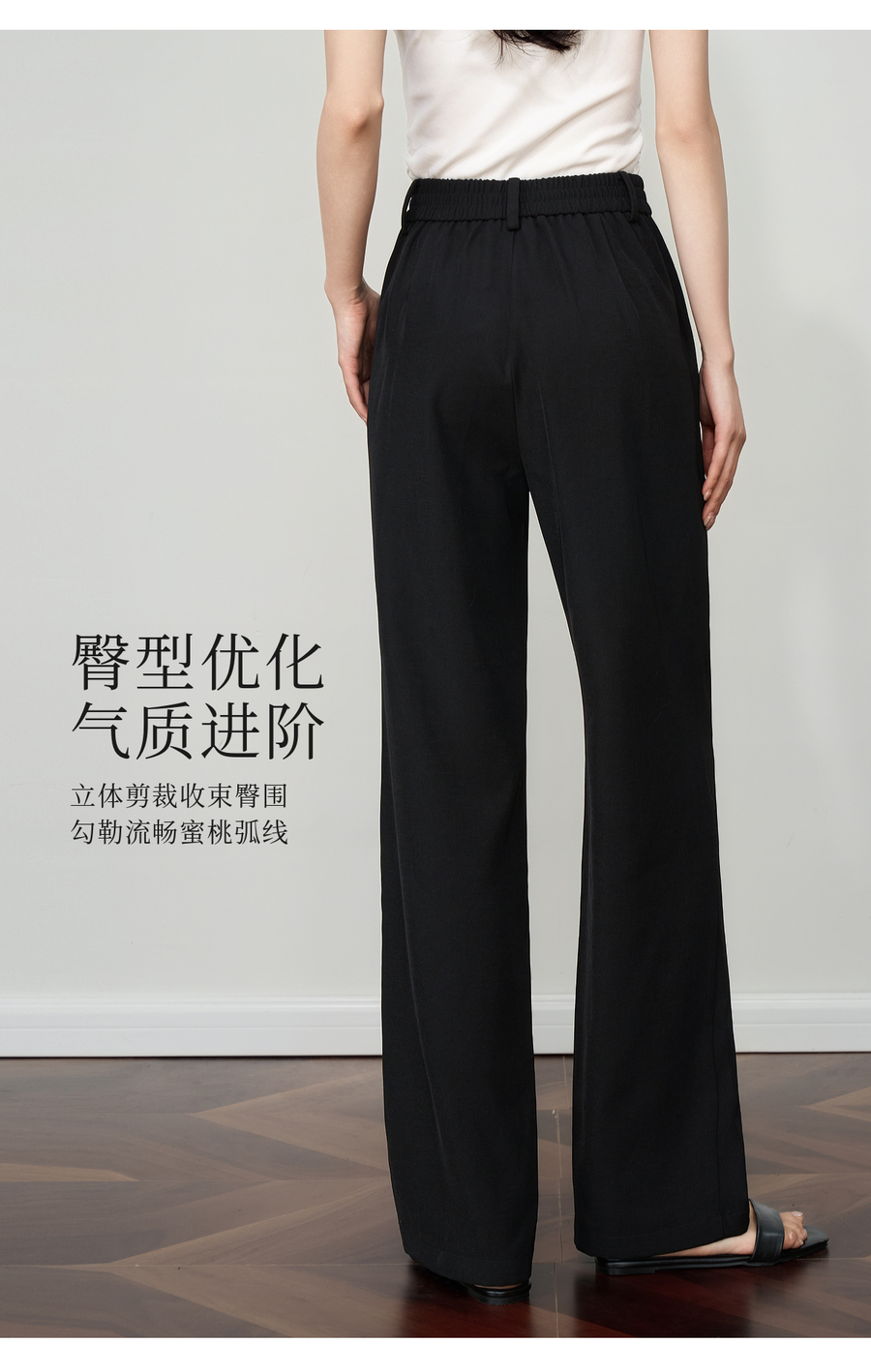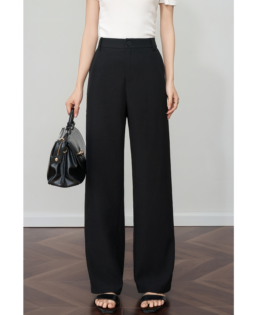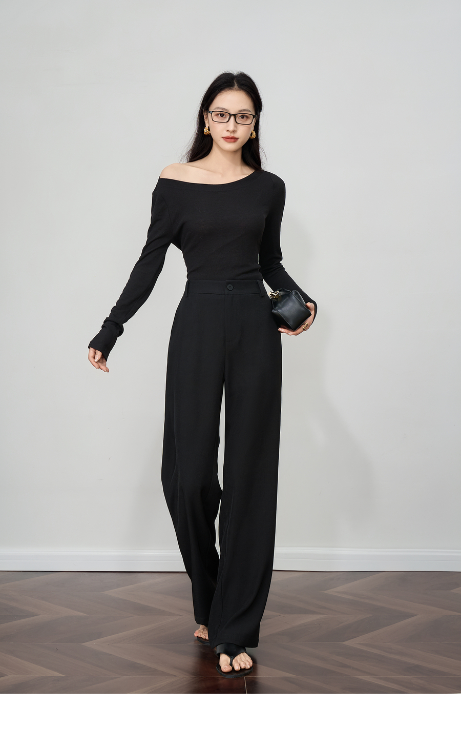 OLrain欧芮儿黑色窄版直筒阔腿裤女夏季2025新款休闲显瘦百搭长裤