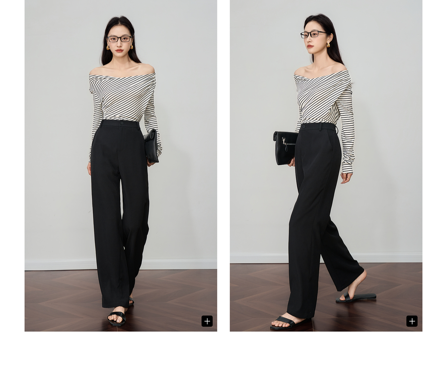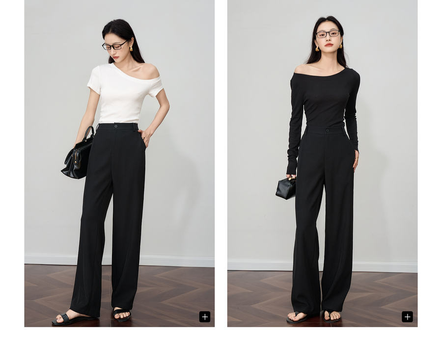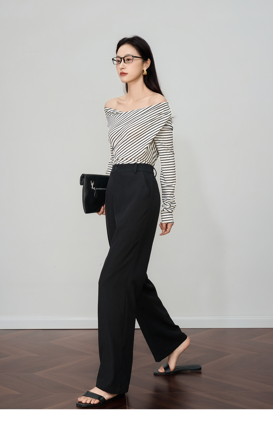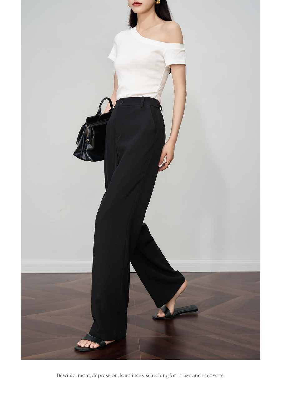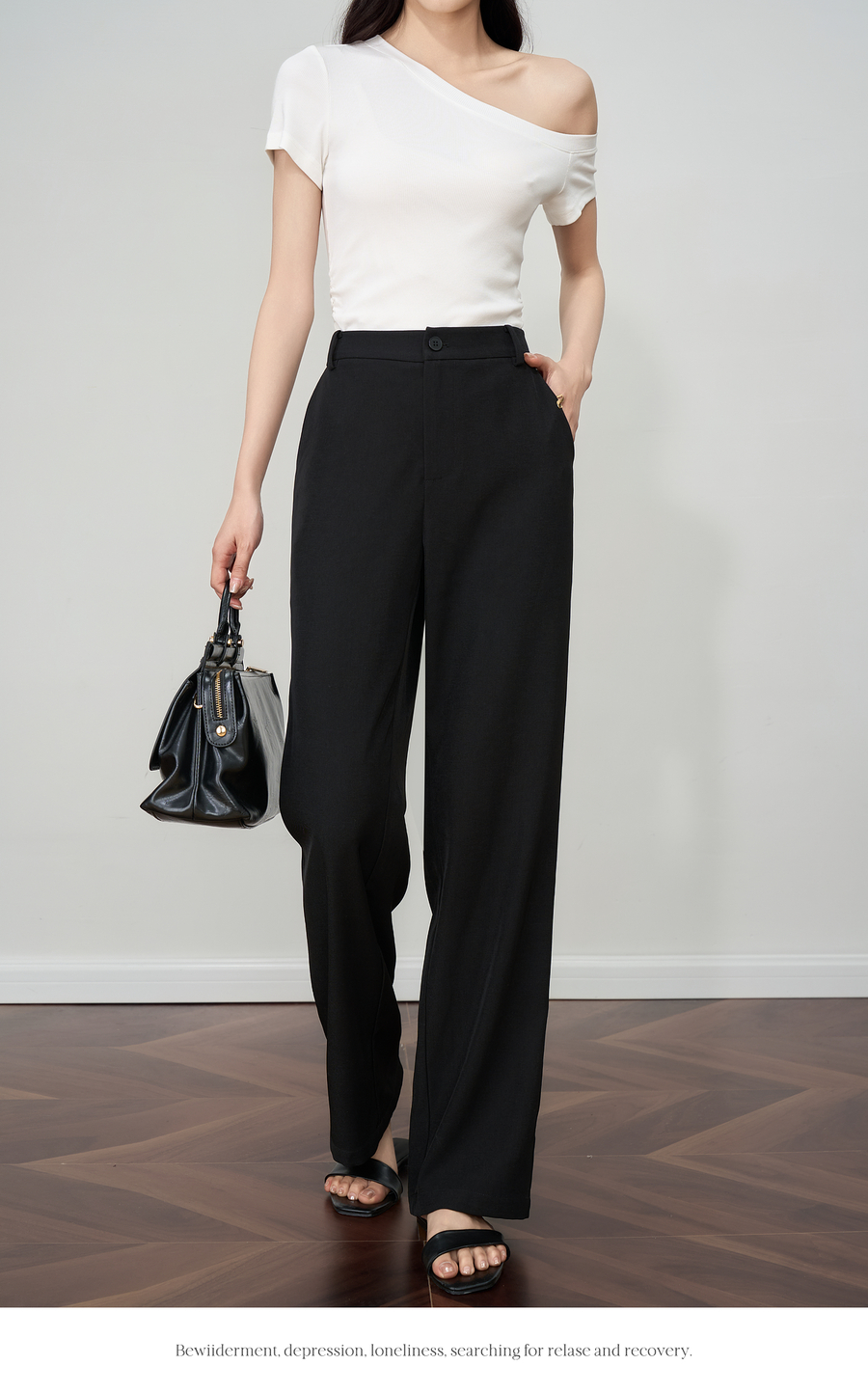 OLrain欧芮儿黑色窄版直筒阔腿裤女夏季2025新款休闲显瘦百搭长裤