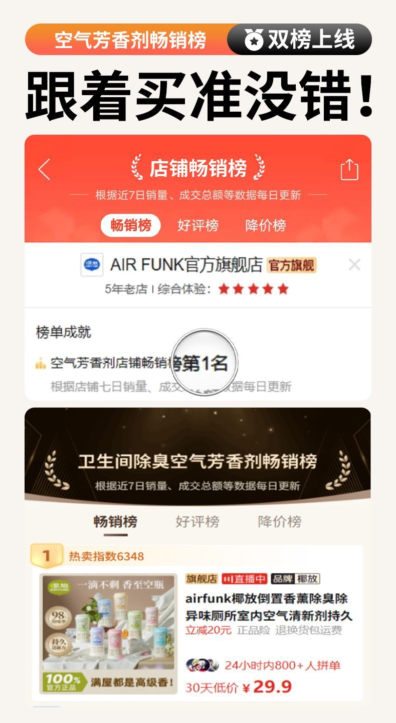 airfunk椰放倒置香薰 除臭除异味厕所室内空气清新剂持久留香氛3.289
