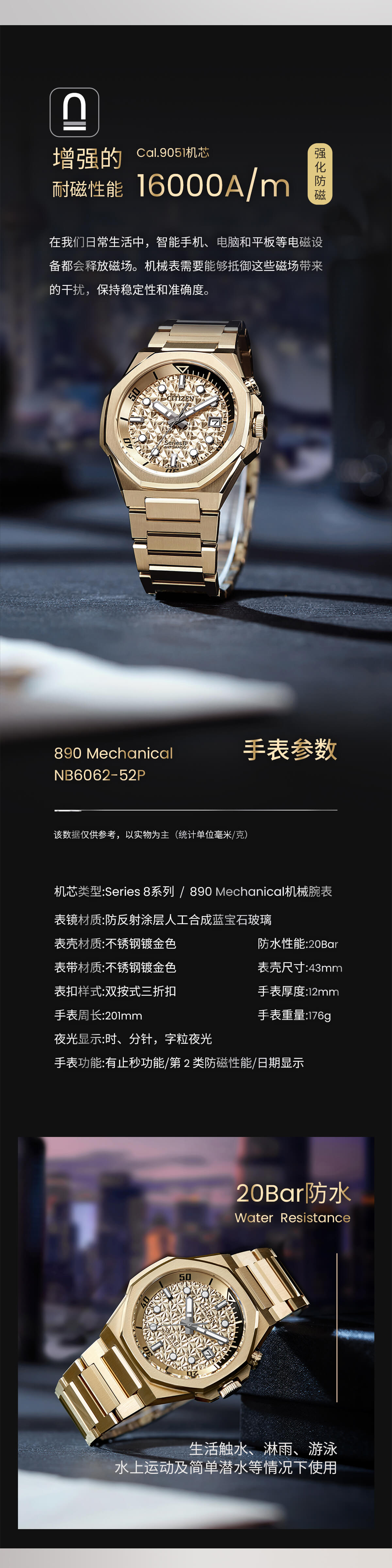 西铁城/CITIZEN Series 8系列高阶防磁机械男表NB6062-52P