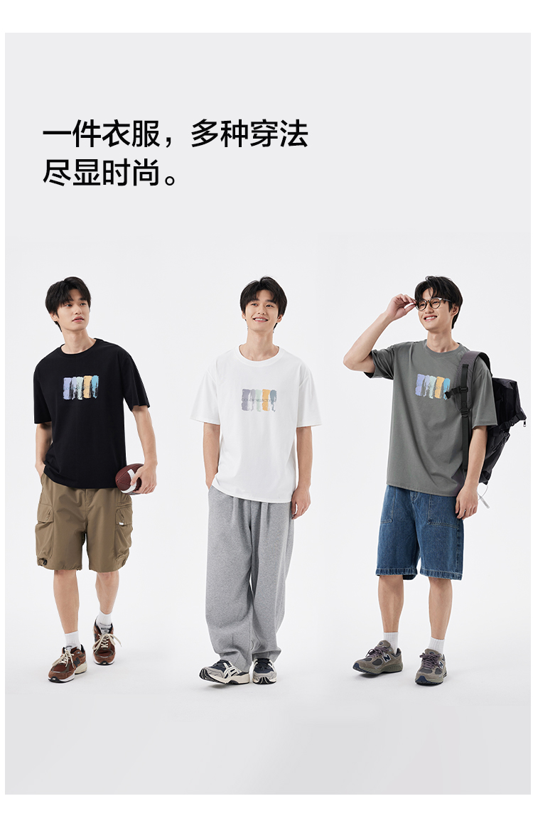 gxgjeans男装 【棉100%】舒适透气男士短袖25夏款简约百搭青少年T恤K&C