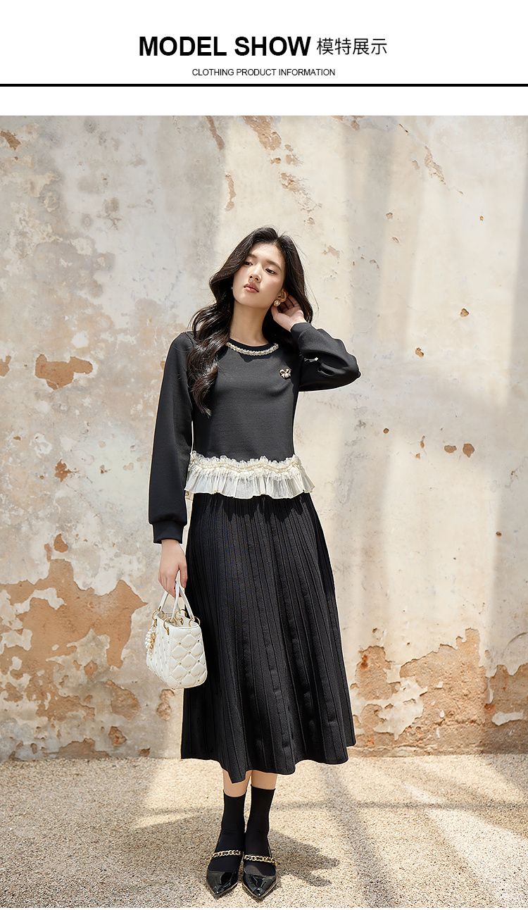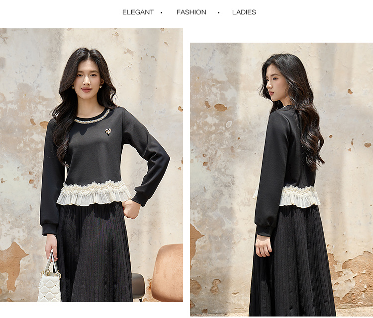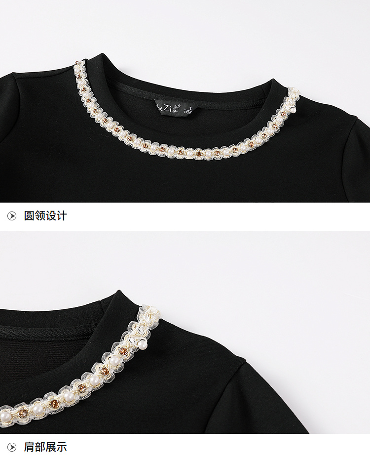 奢姿大码女装2025秋装新款胖妹妹珍珠饰边荷叶摆圆领长袖上衣9953170305