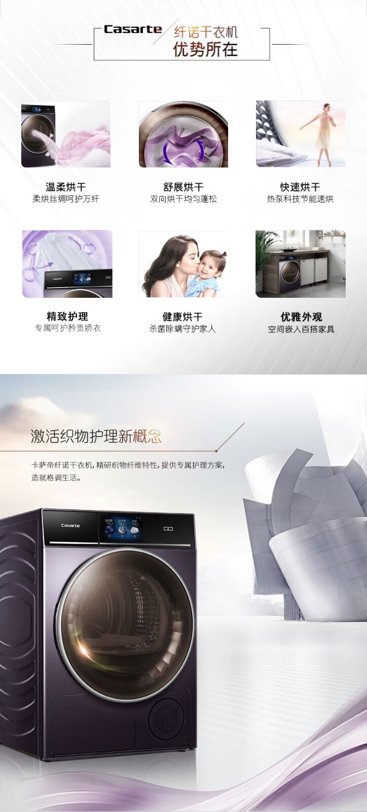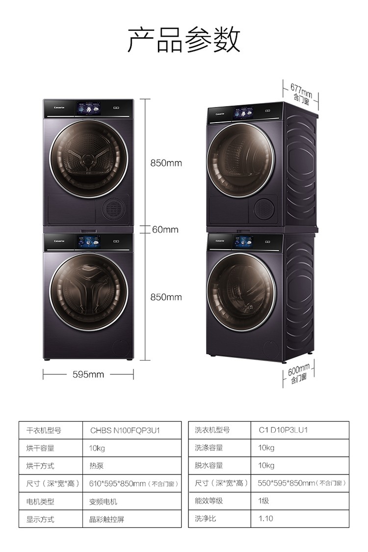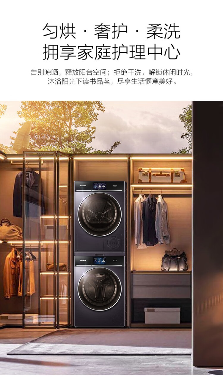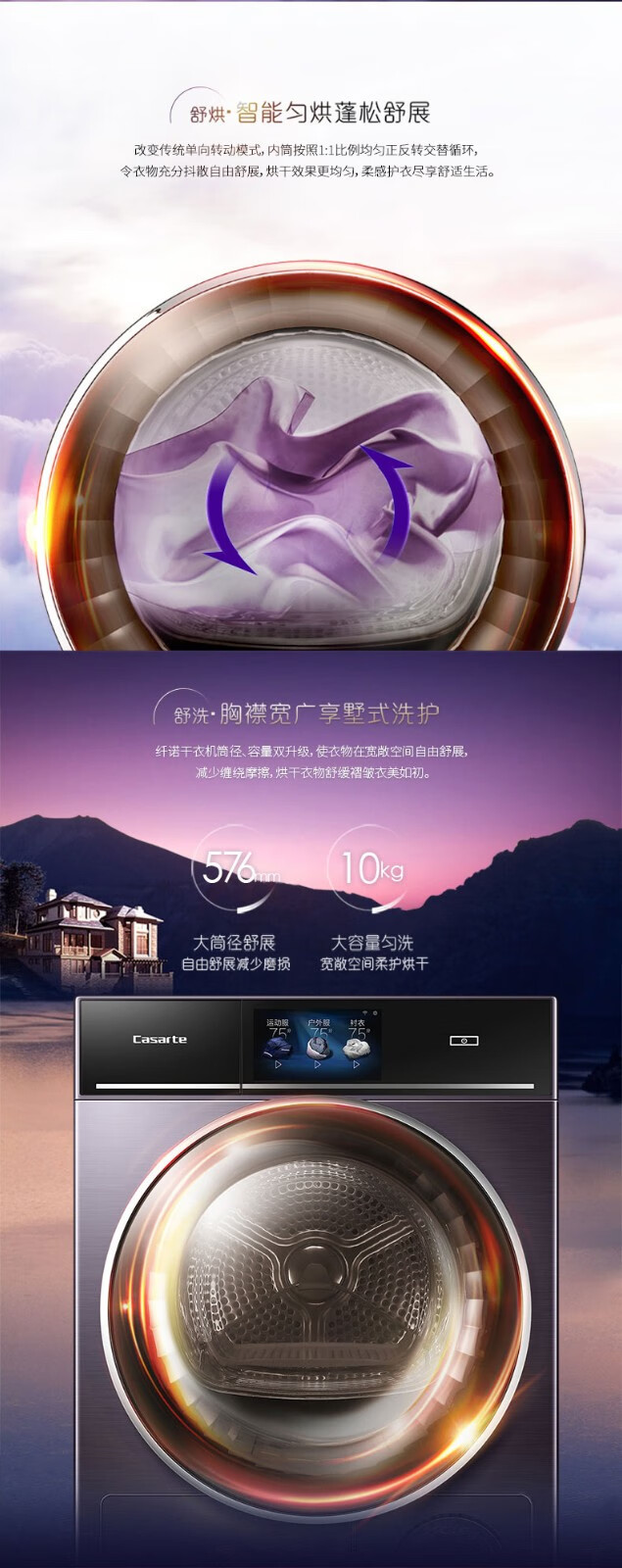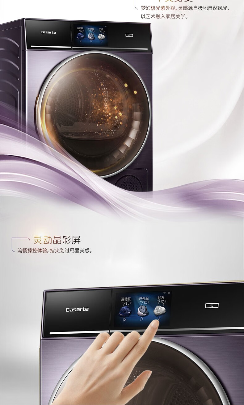 【彩屏干衣机】卡萨帝(Casarte)热泵烘干机10KG纤诺系列 家用干衣机全彩触控屏除菌净螨 【2件套-洗烘组合】D10P3LU1+SN100F