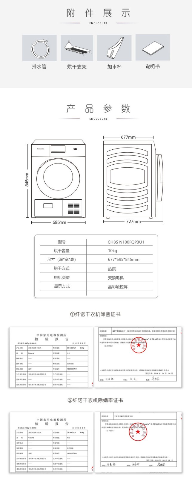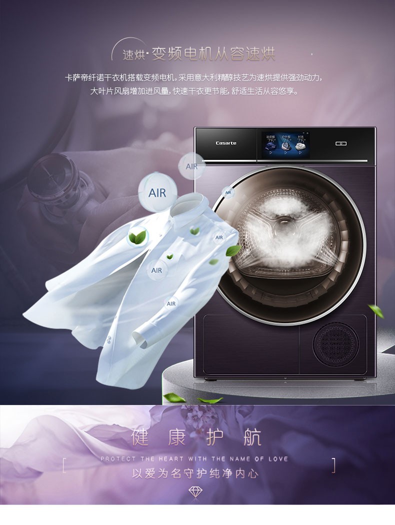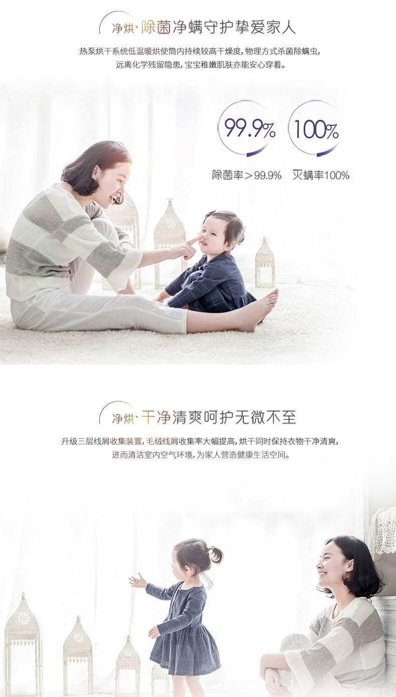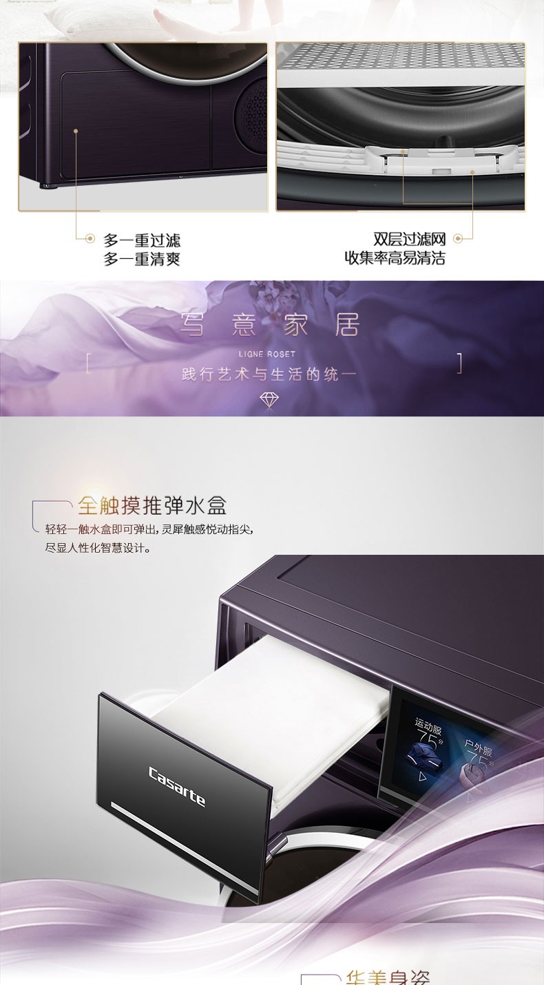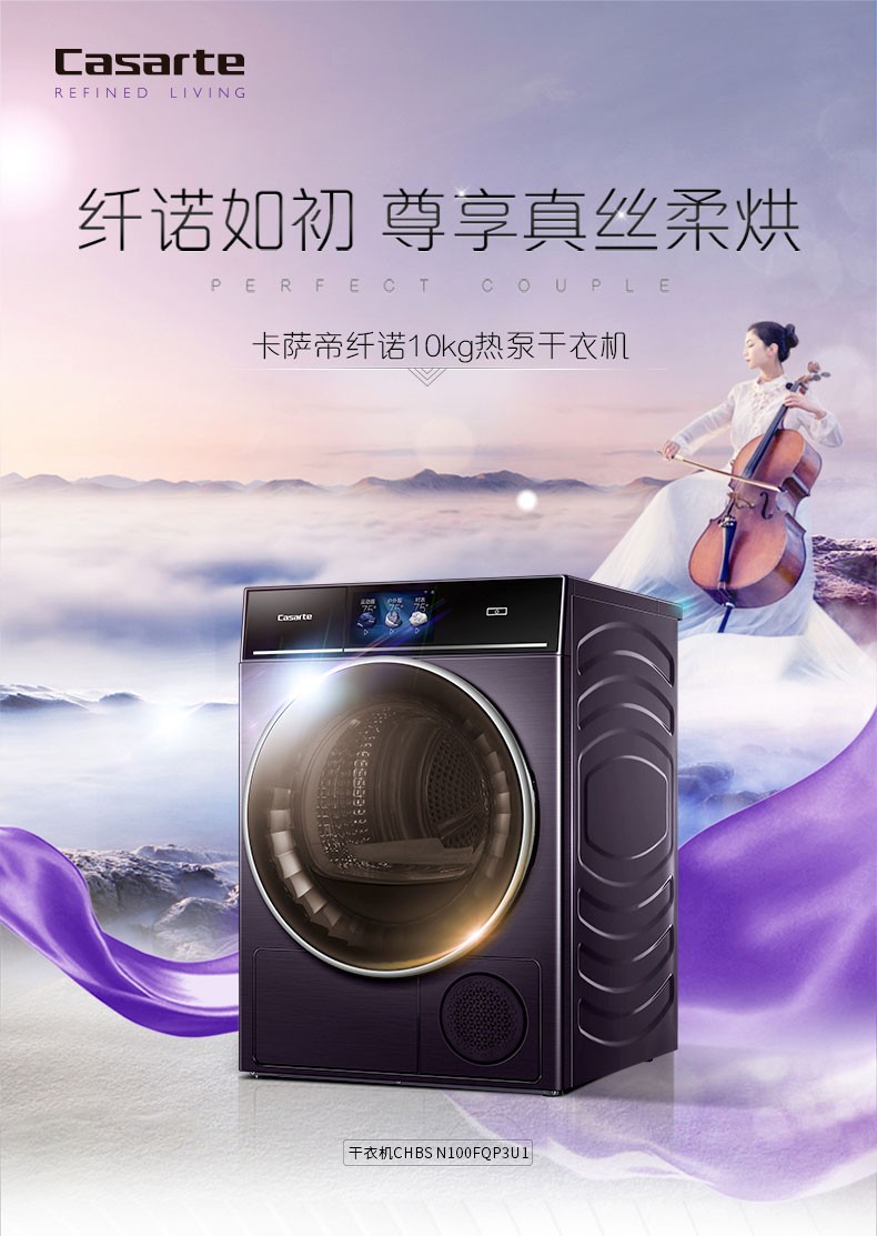 【彩屏干衣机】卡萨帝(Casarte)热泵烘干机10KG纤诺系列 家用干衣机全彩触控屏除菌净螨 【2件套-洗烘组合】D10P3LU1+SN100F