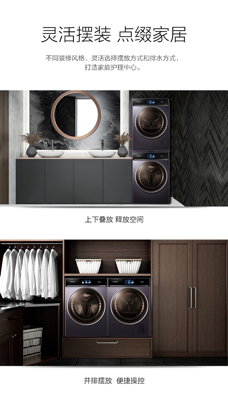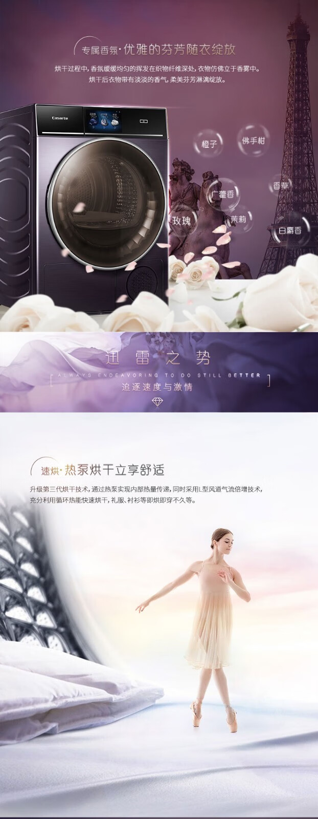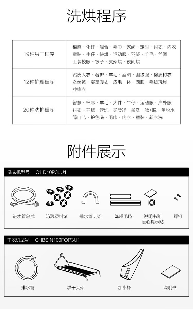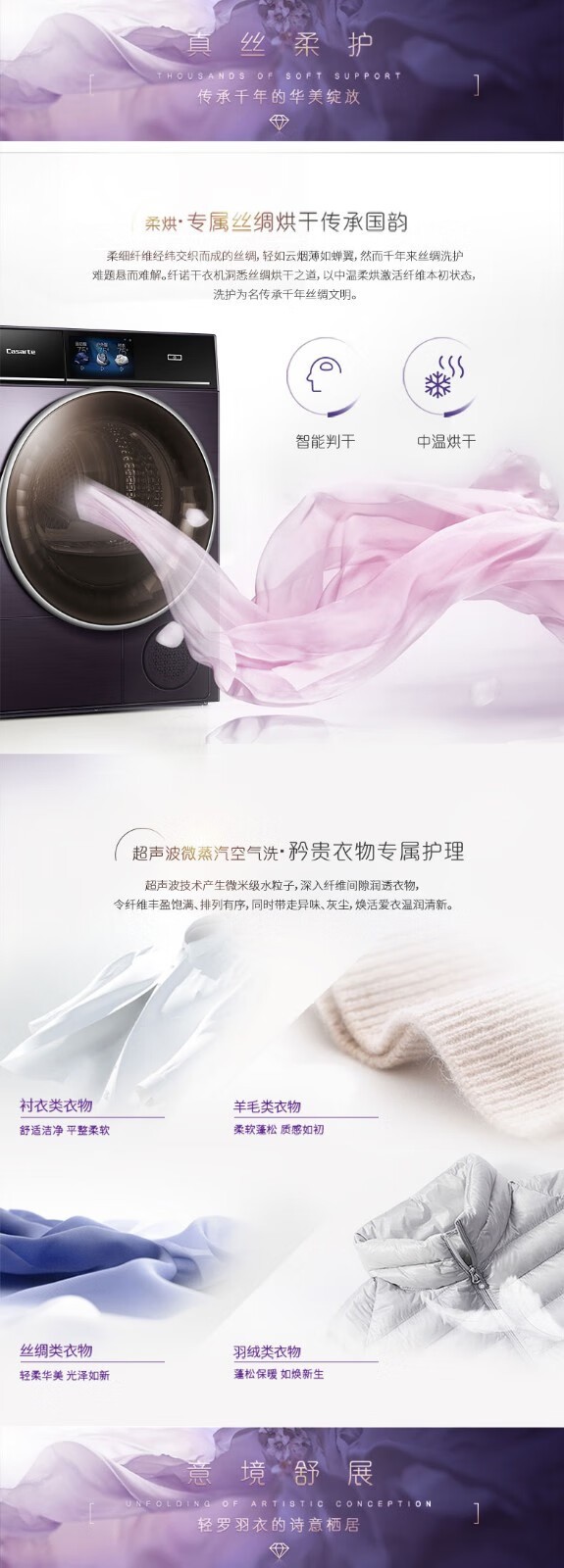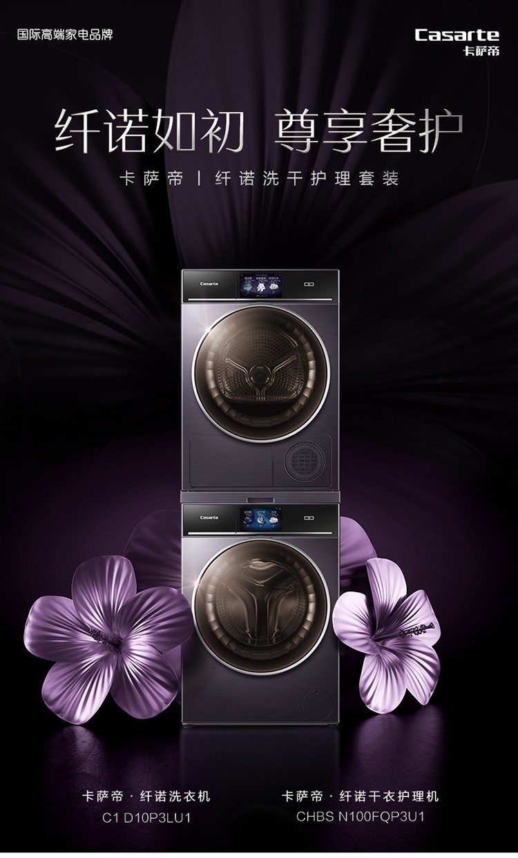 【彩屏干衣机】卡萨帝(Casarte)热泵烘干机10KG纤诺系列 家用干衣机全彩触控屏除菌净螨 【2件套-洗烘组合】D10P3LU1+SN100F