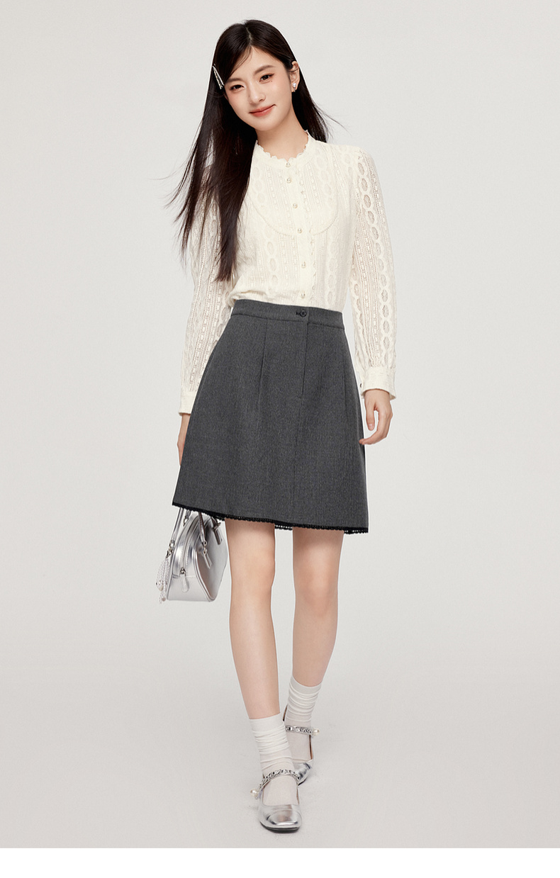 【严选】诗凡黎小香风半身裙2024秋新款时髦洋气小个子高腰A字显瘦短裙女SF8140921