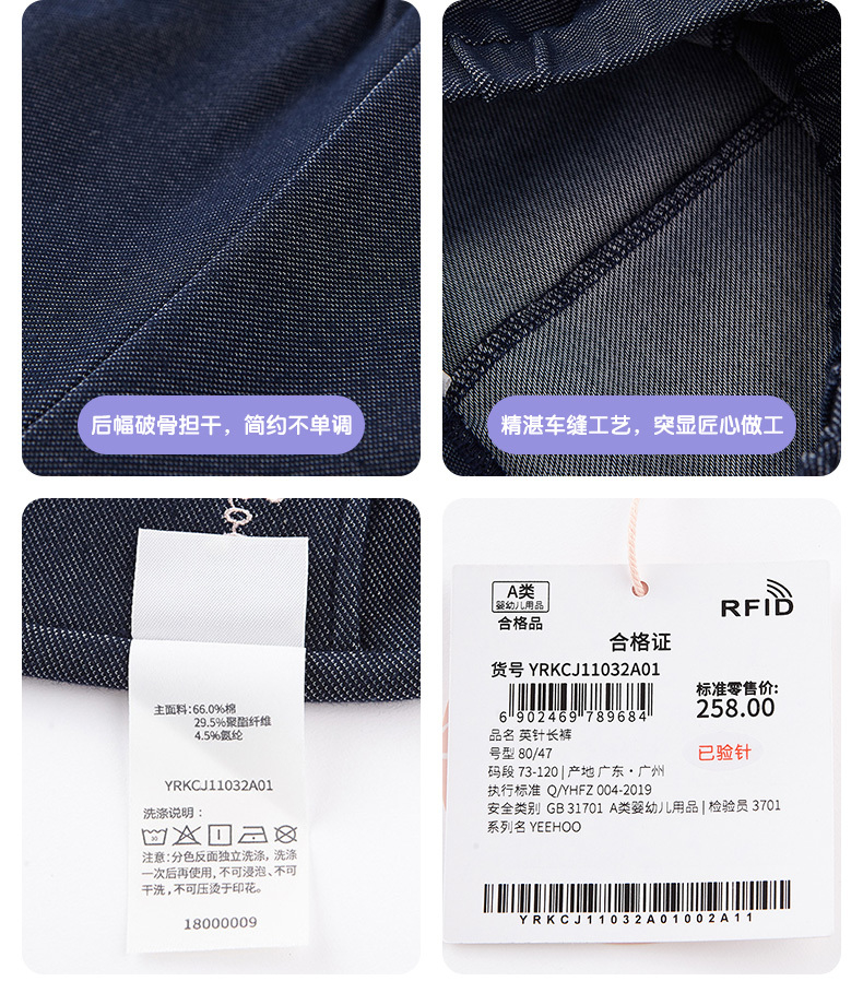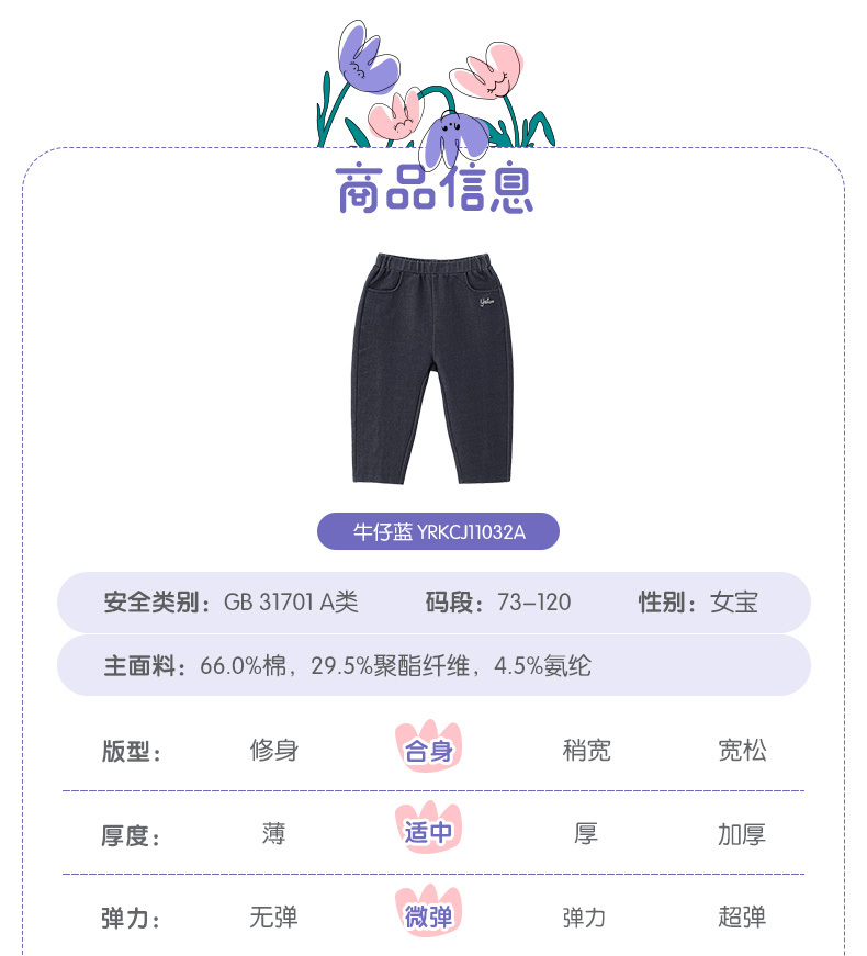 英氏-童衣类(春)E1英针长裤牛仔蓝100CM
