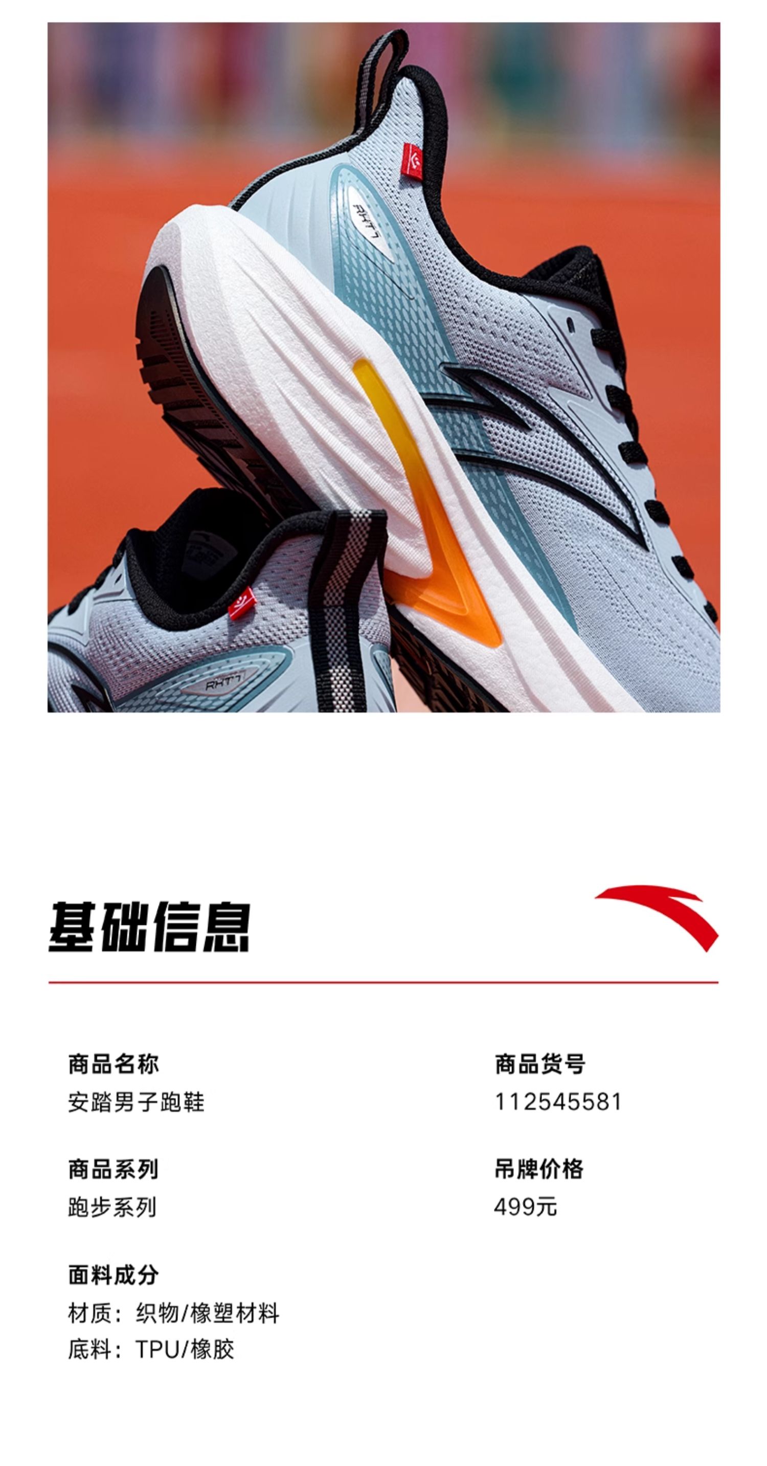 安踏火箭7代丨防泼水防滑抓地加绒跑鞋男耐磨运动鞋112545581-15