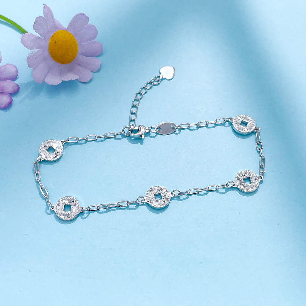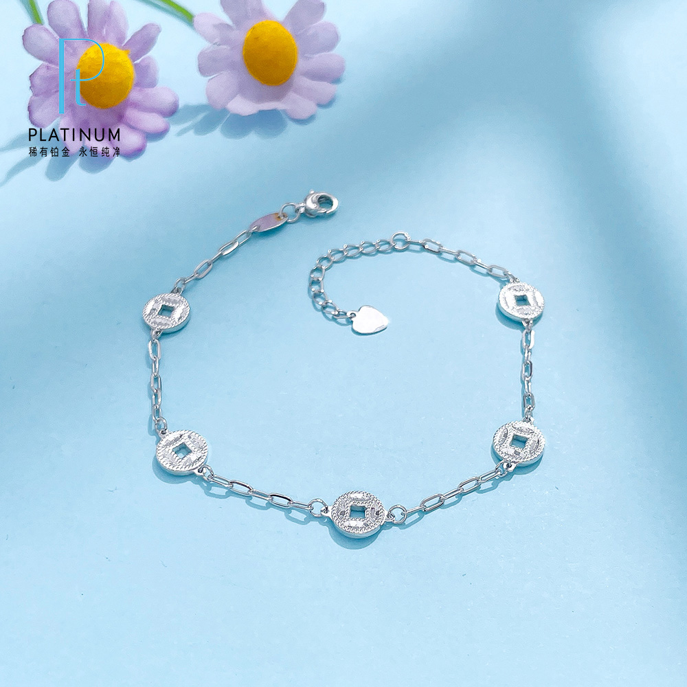 【限时8.8折】【线上铂金馆】PT950 #招财进宝 【国际铂金协会】铂金镂空CNC财源滚滚鱼鳞铜钱造型金币调节手链(BSL00217)预售产品下单后不退款不退货不换货不补差价)