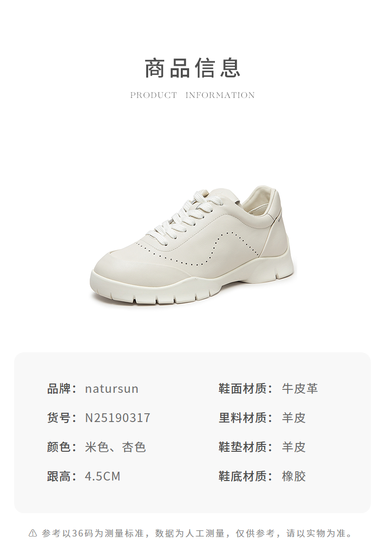natursun运动休闲鞋女圆头小白鞋软底不累脚运动鞋N25190317