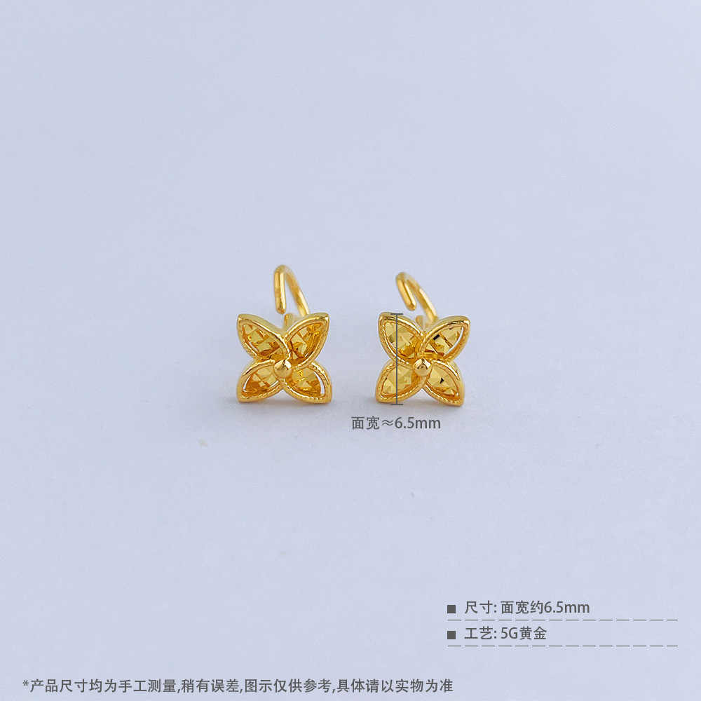【限时克减150元】足金999 5G黄金镂空车花四叶花耳饰耳钉(AG5GES00267)预售产品下单后不退款不退货不换货不补差价