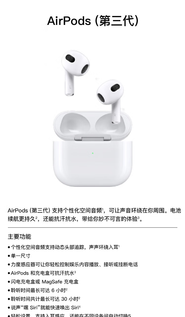 Apple/苹果 AirPods (第三代) 配闪电充电盒