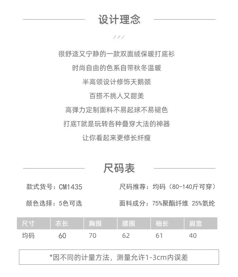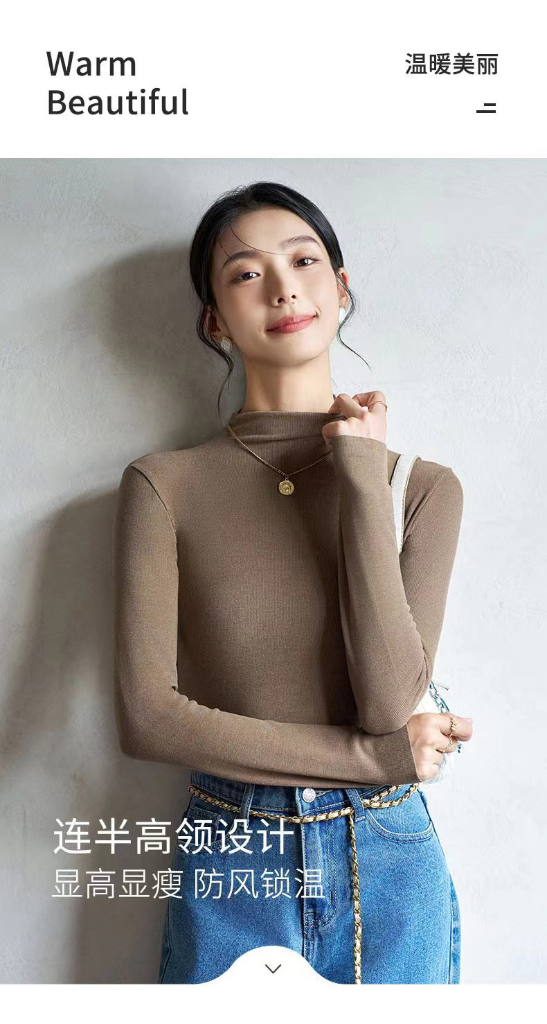 【39.9任选2件】连立领双面磨绒打底衫 一件打底保暖都搞定 均码80-140斤可穿