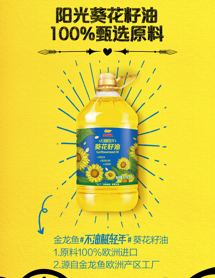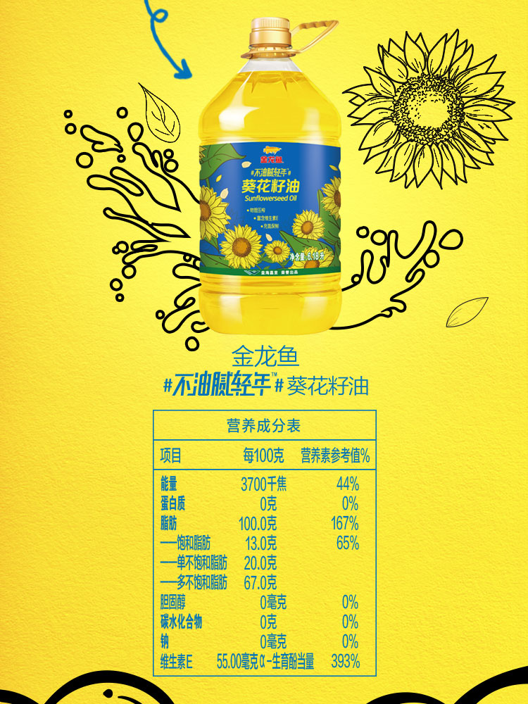 金龙鱼 食用油 物理压榨葵花籽油6.18L(原料欧洲进口)