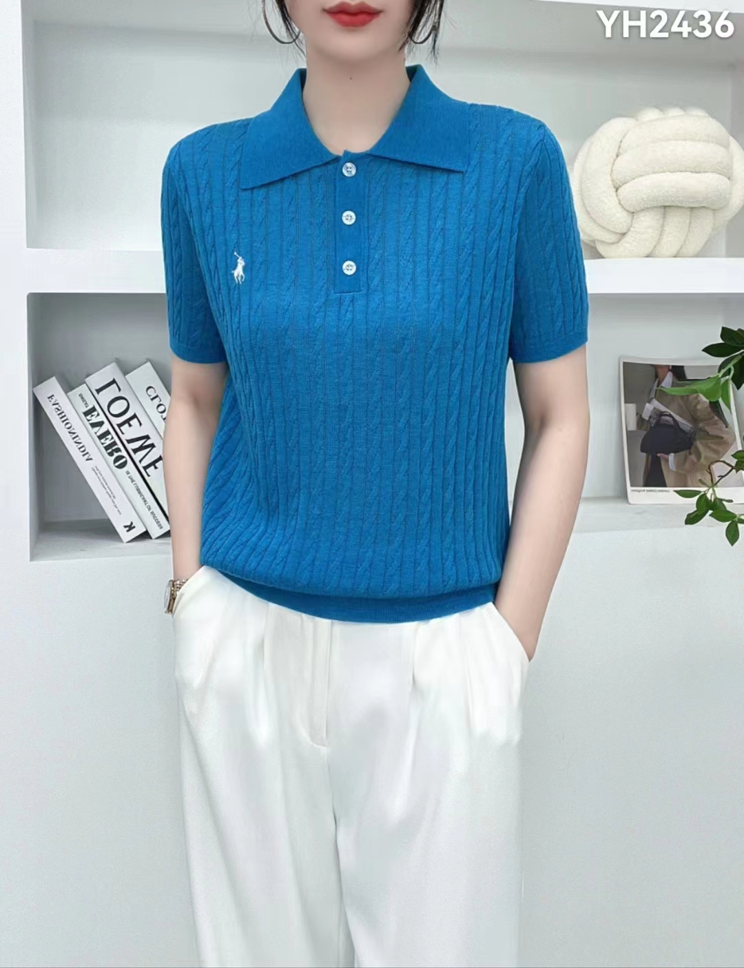 D4205 # 粉 蓝 黄 L-XL Polo领小马刺绣麻花针织短袖 韩系复古洋气气质百搭休闲,包容性特强的超感舒适面料,高品质摸得到,多个最适合夏天的马卡龙糖果色💝梗有2个适合你👉