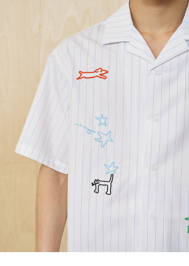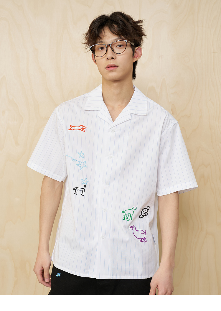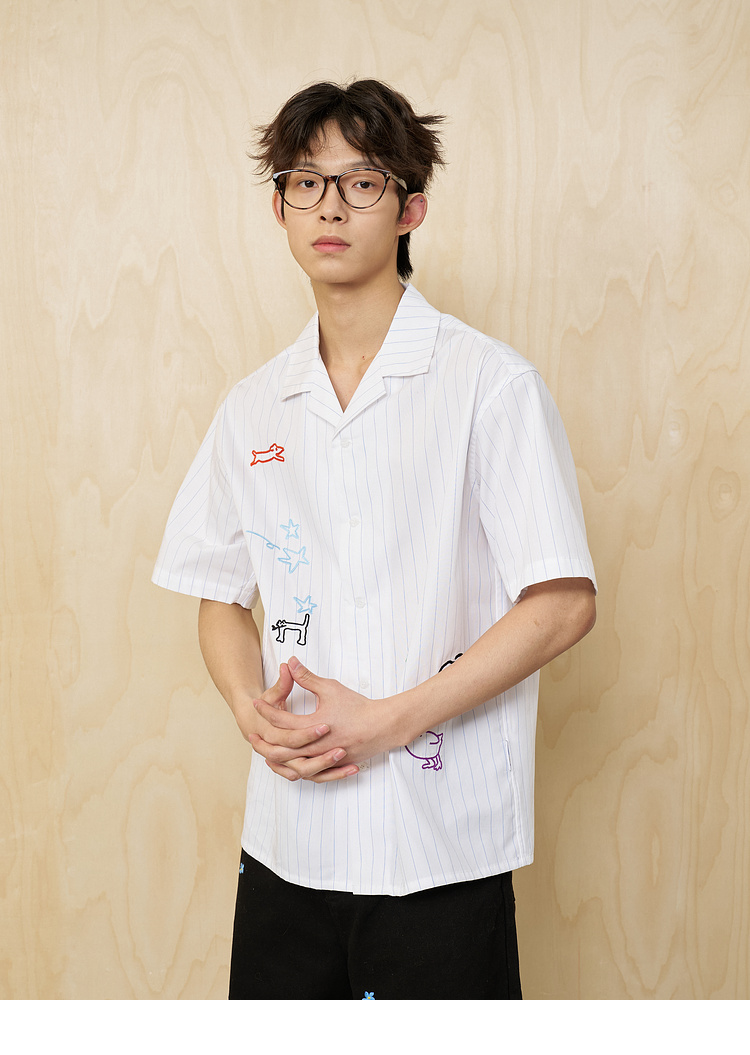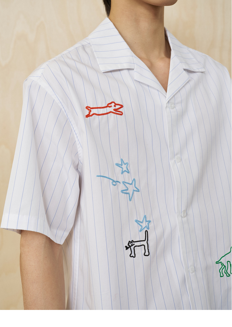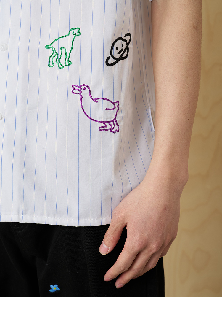 MoodLikeMe/MCS2505/手绘线条涂鸦链条绣条纹衬衫
