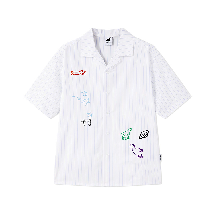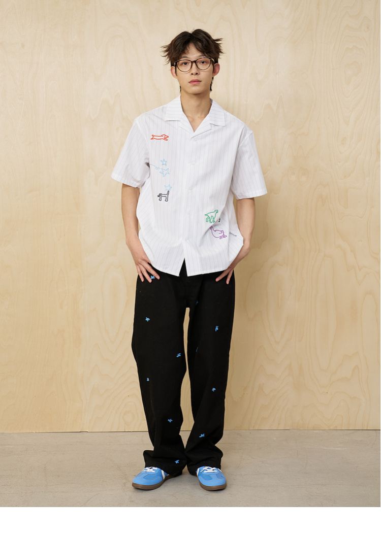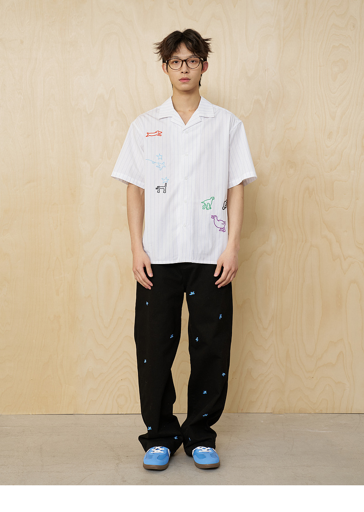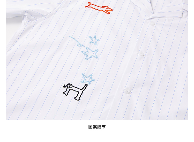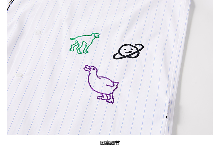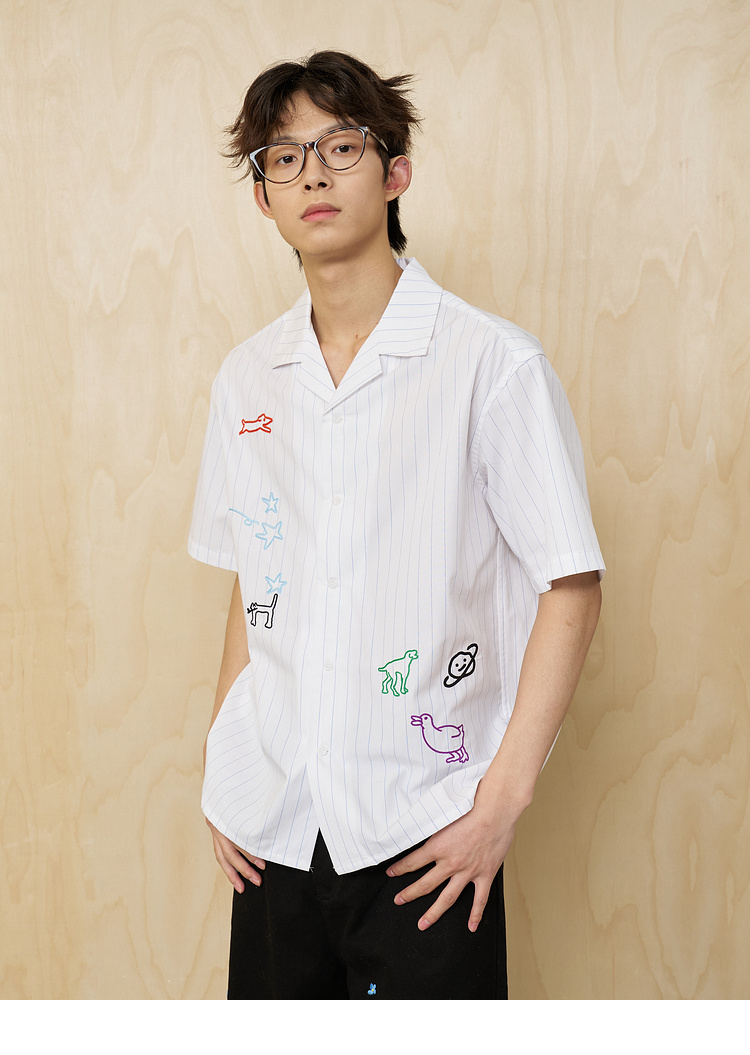 MoodLikeMe/MCS2505/手绘线条涂鸦链条绣条纹衬衫