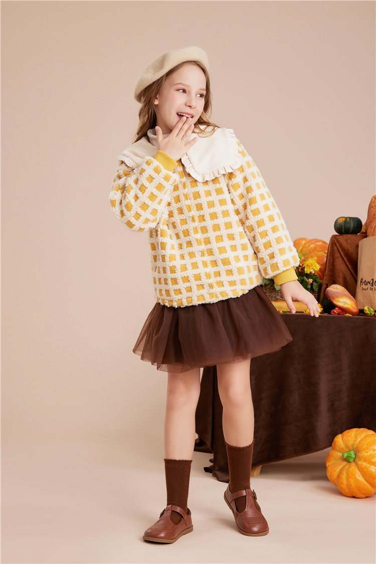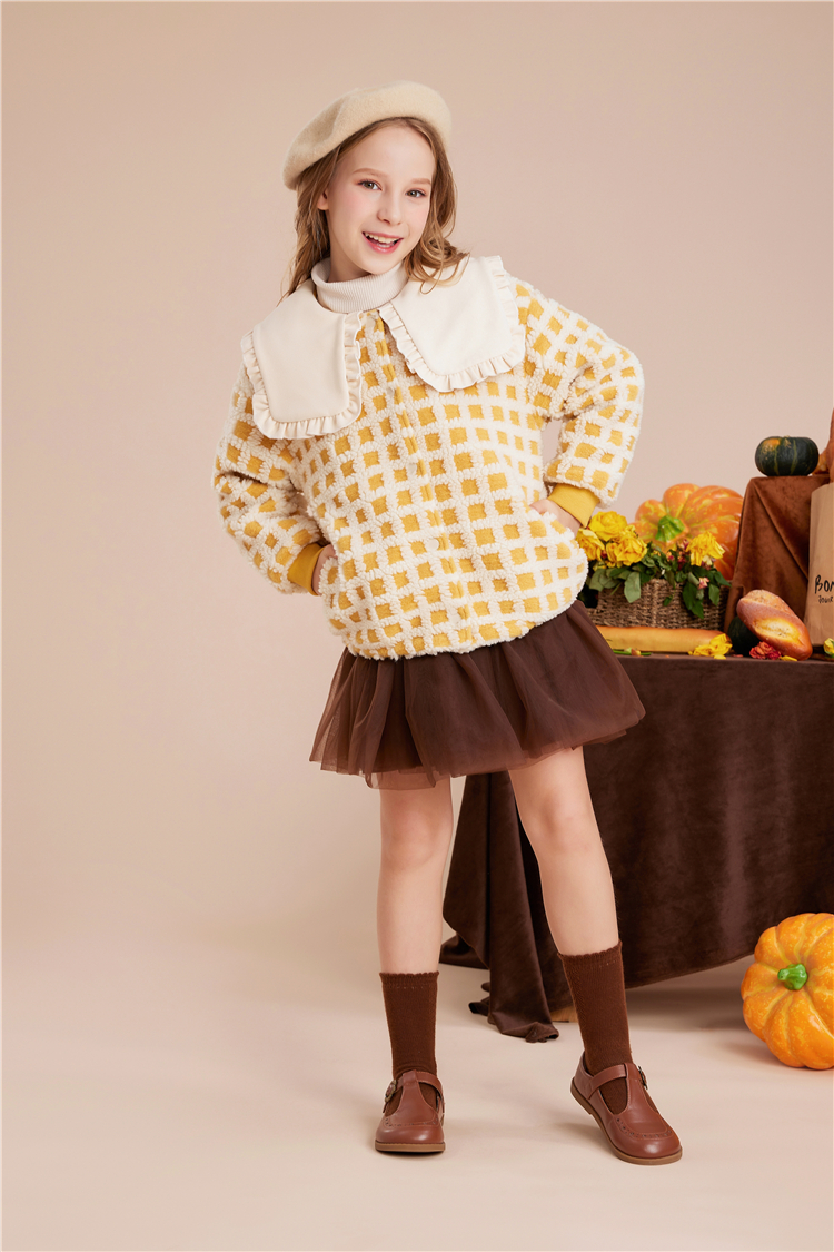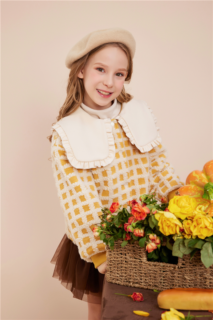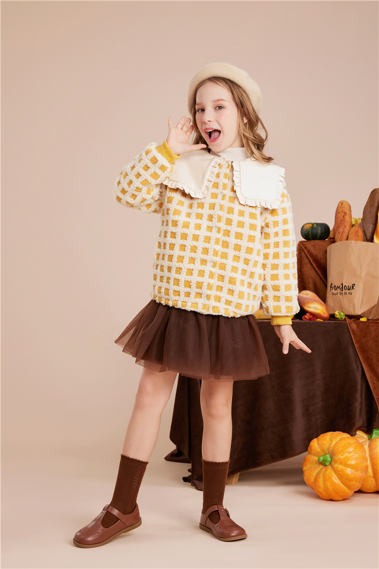 littletime女童呢子外套秋冬装2022冬季新款法式大翻领格子儿童呢子大衣
