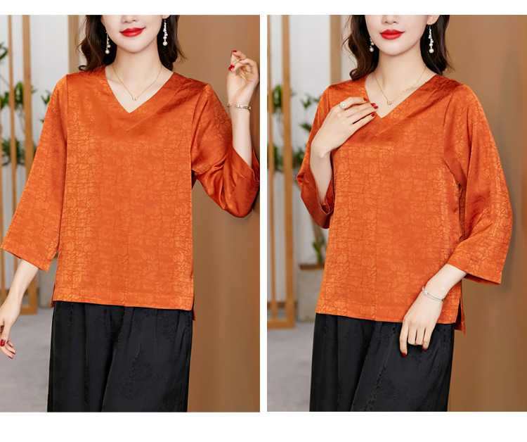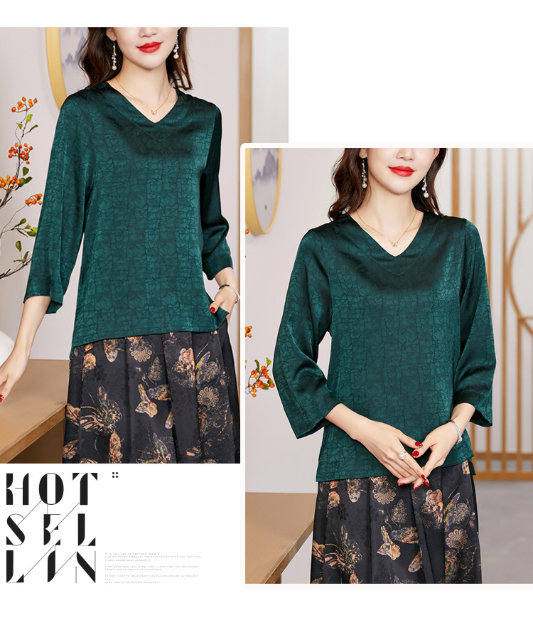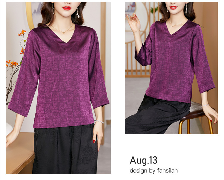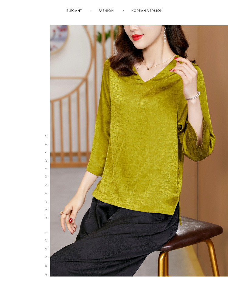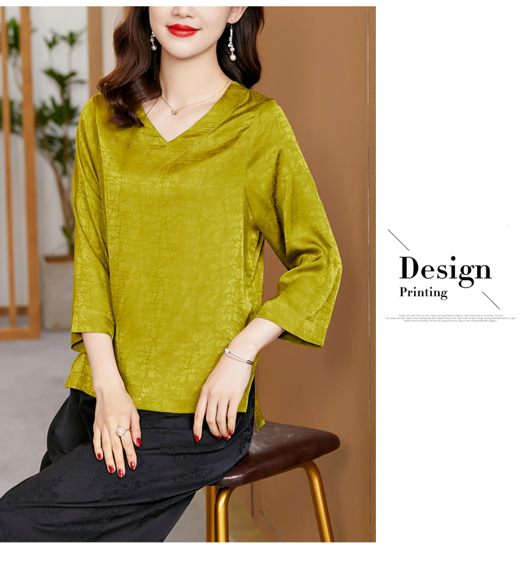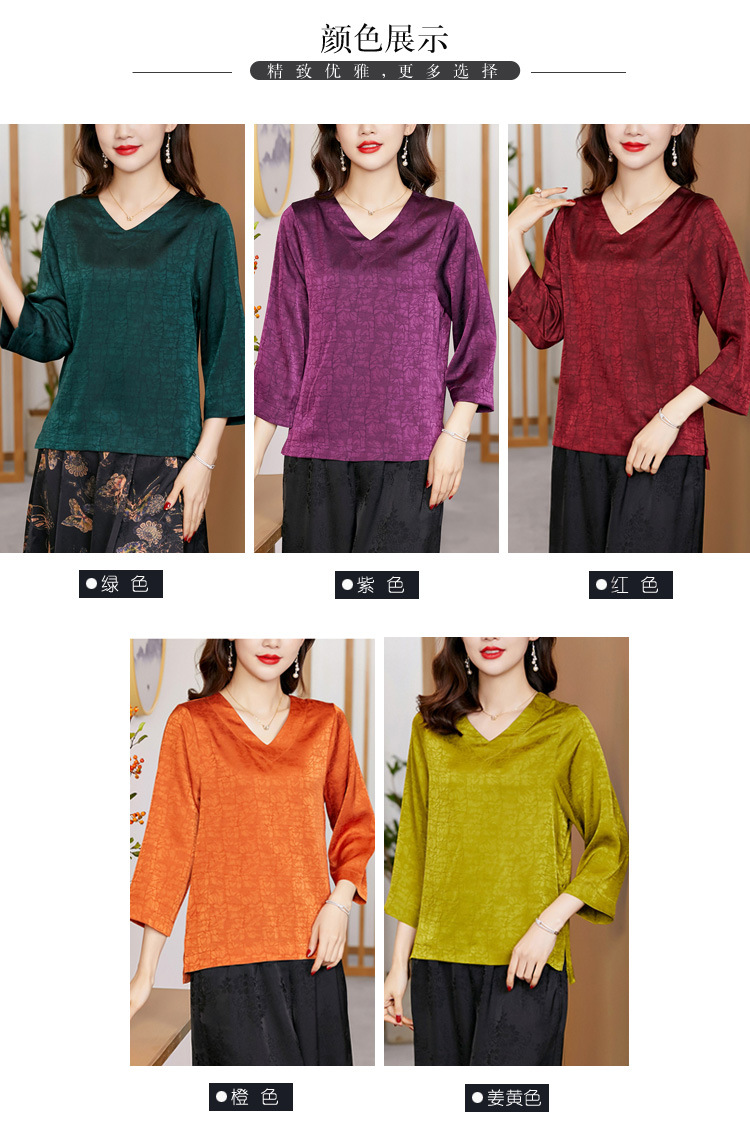 2022春夏新款V领宽松套头大码纯色中袖打底衫上衣纯色T恤 KQL2253