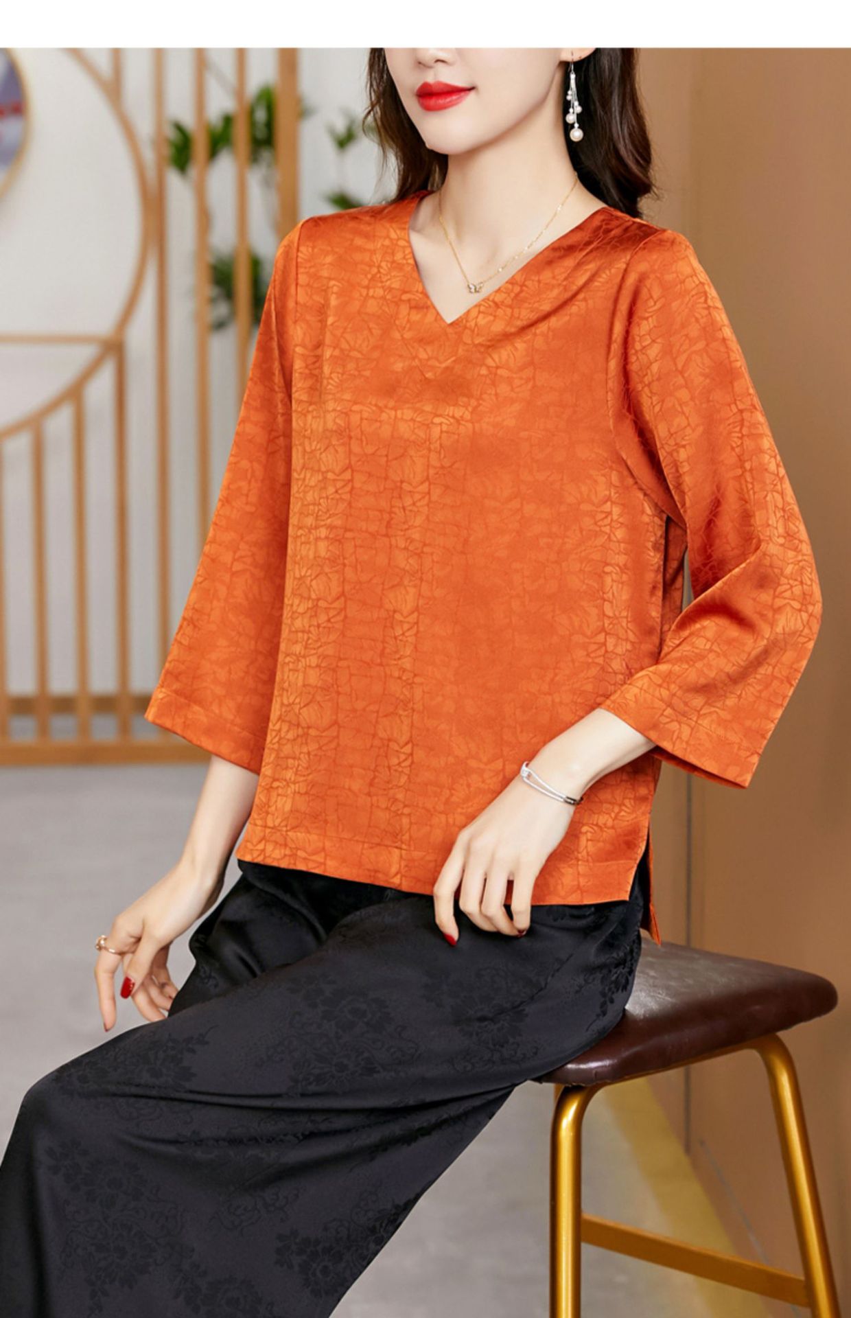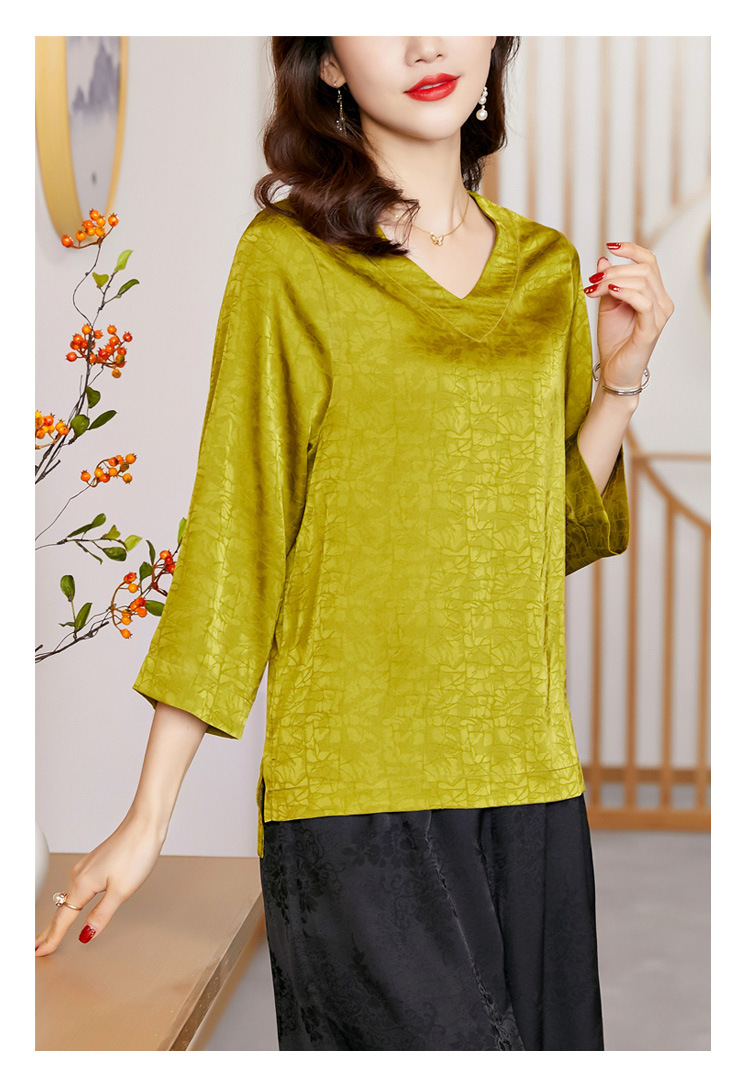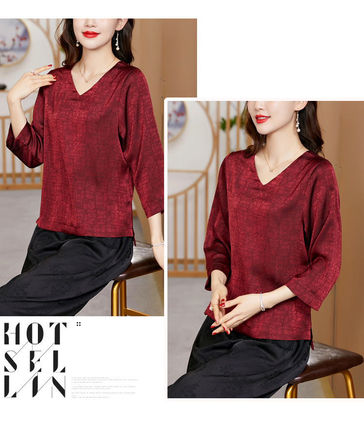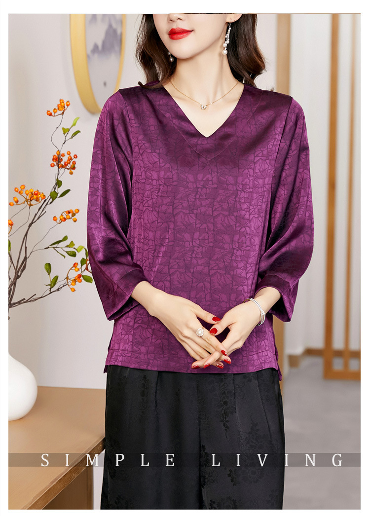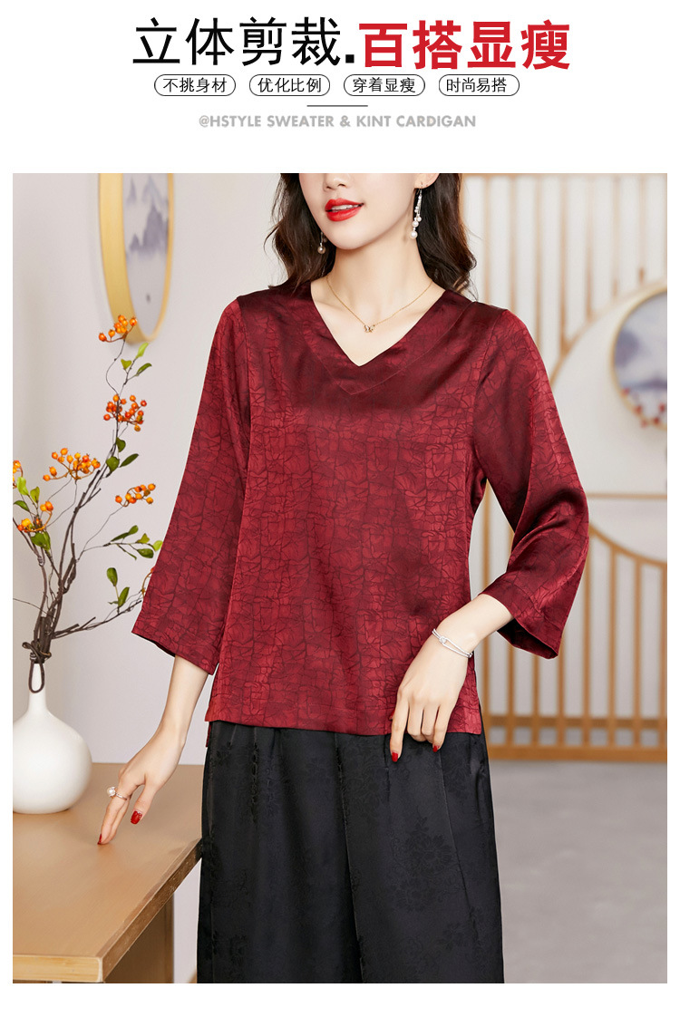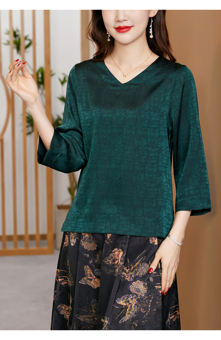 2022春夏新款V领宽松套头大码纯色中袖打底衫上衣纯色T恤 KQL2253