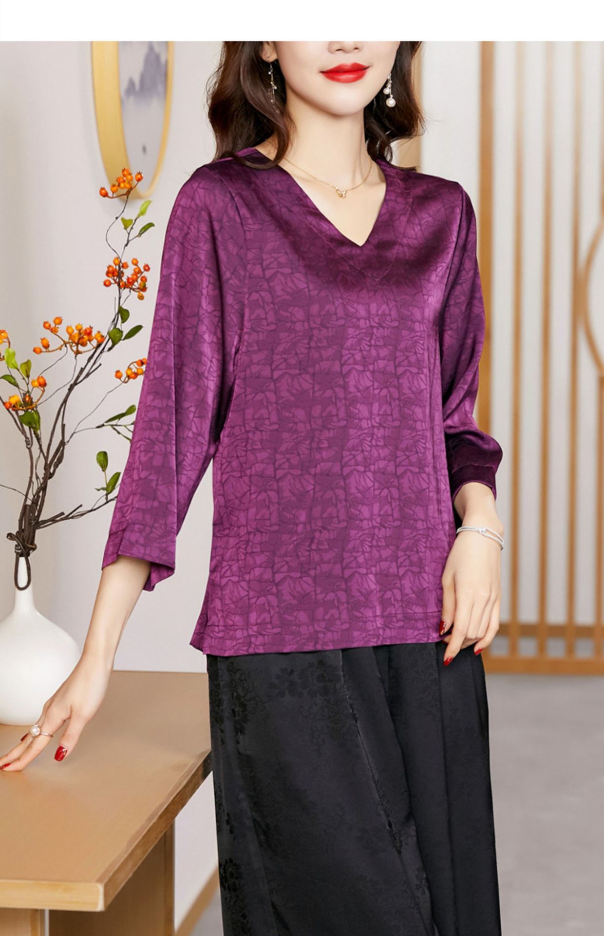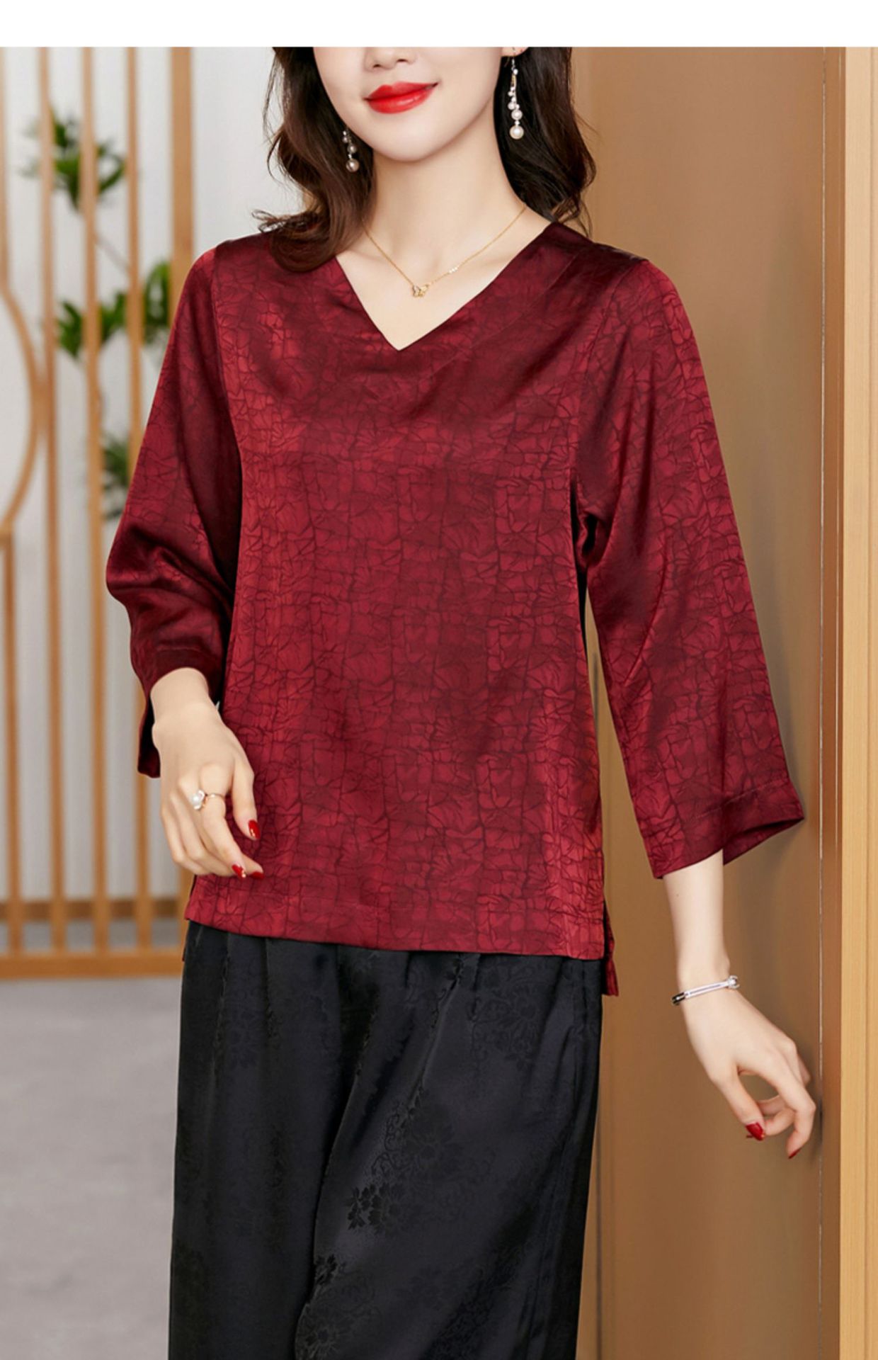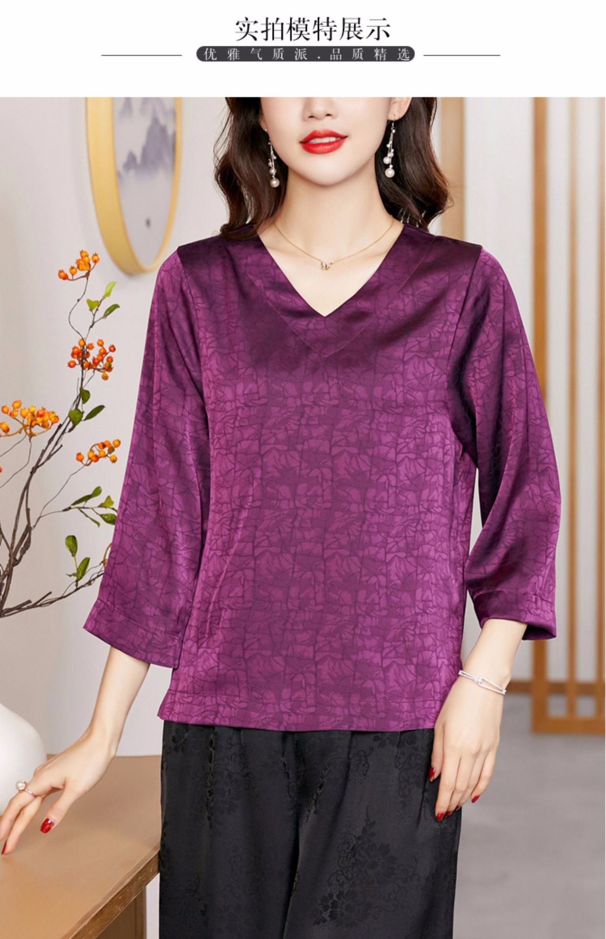 2022春夏新款V领宽松套头大码纯色中袖打底衫上衣纯色T恤 KQL2253