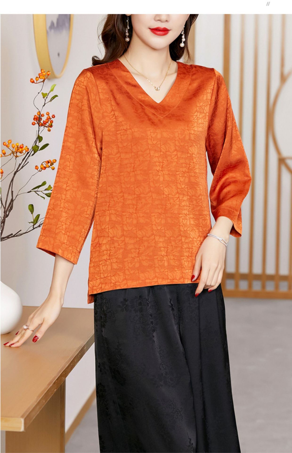 老上海复古改良新中式长款七分袖旗袍大摆裙2023冬新款旗袍GX-21804